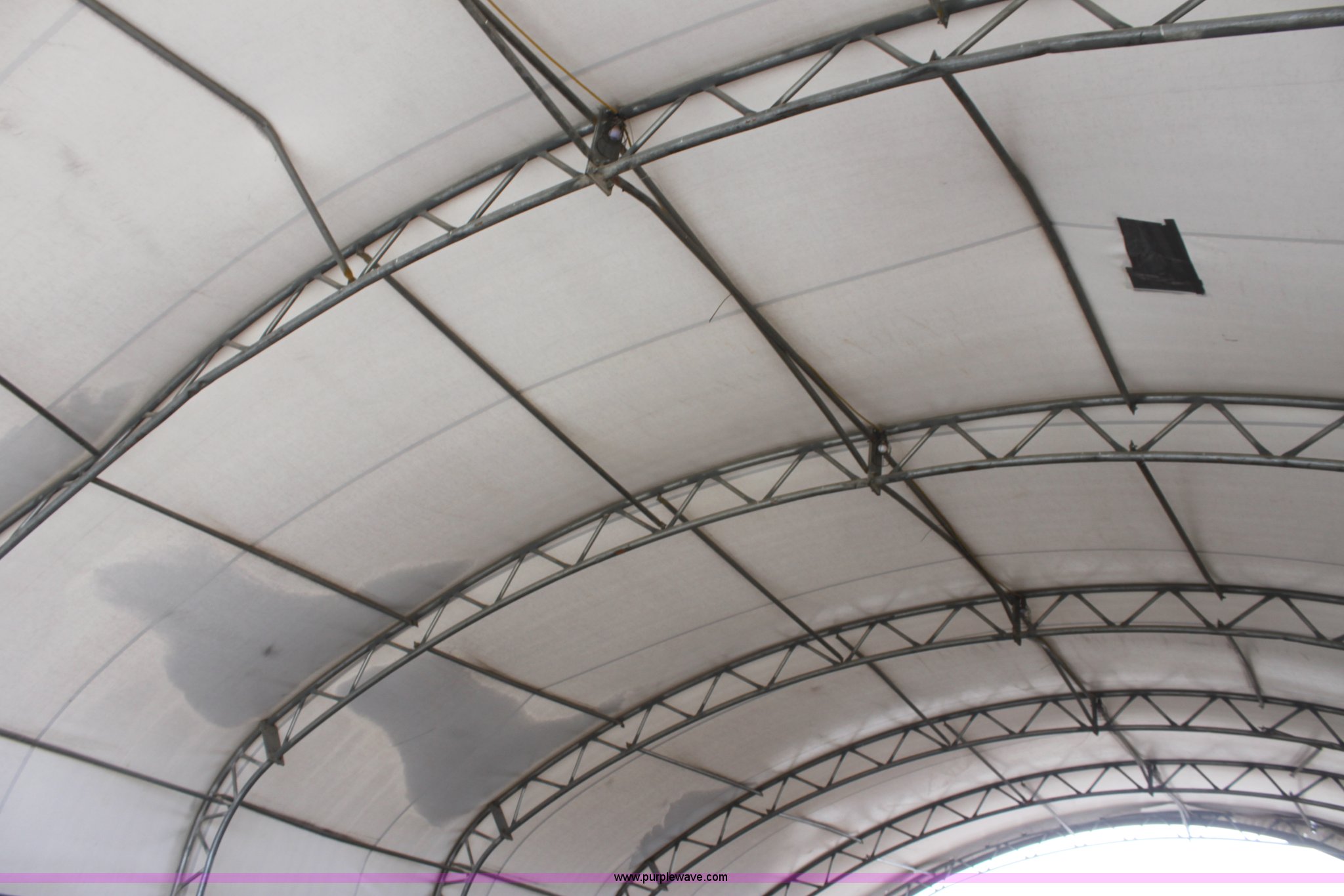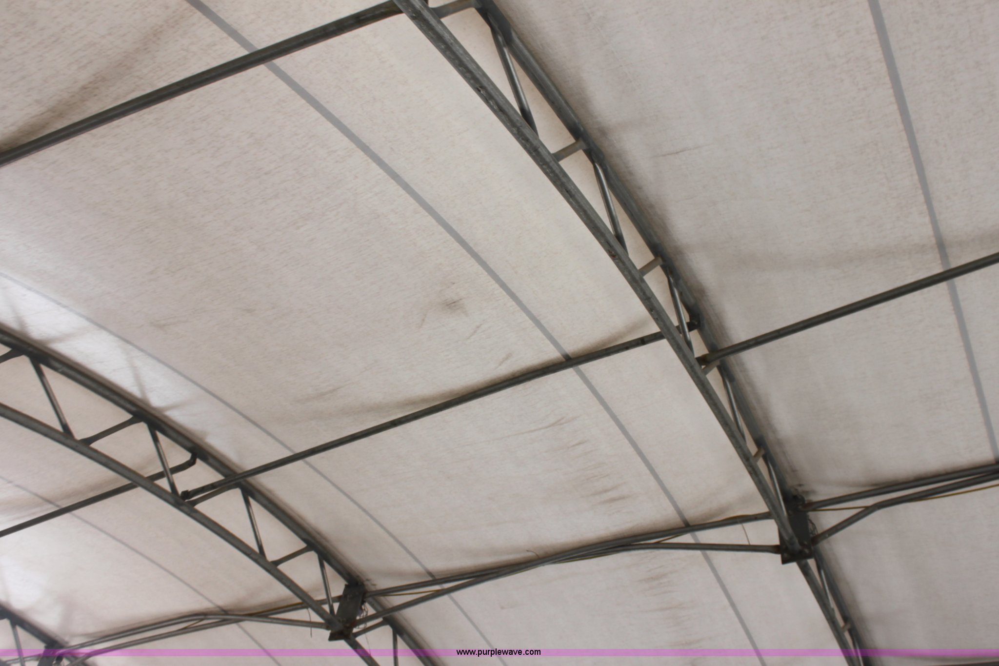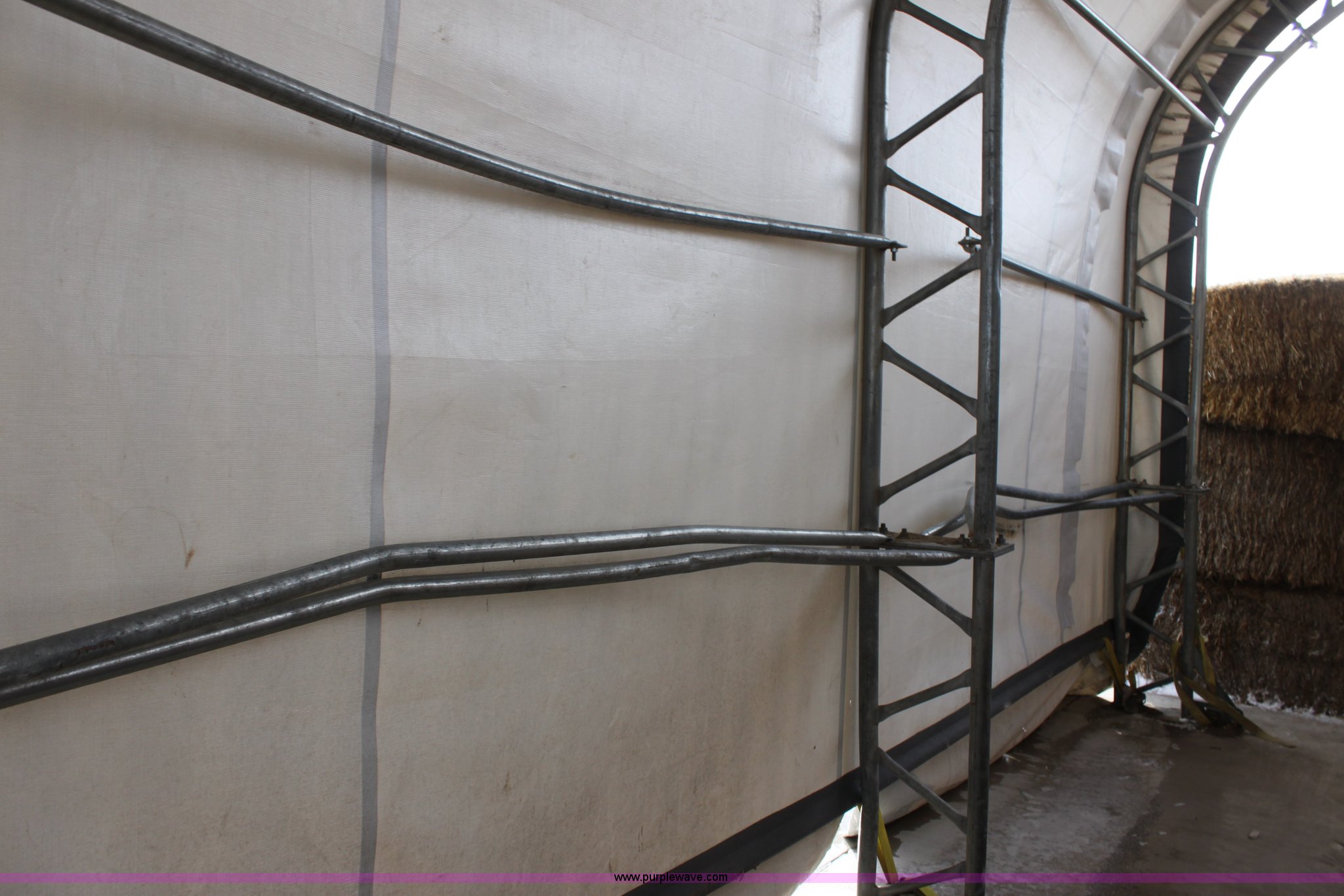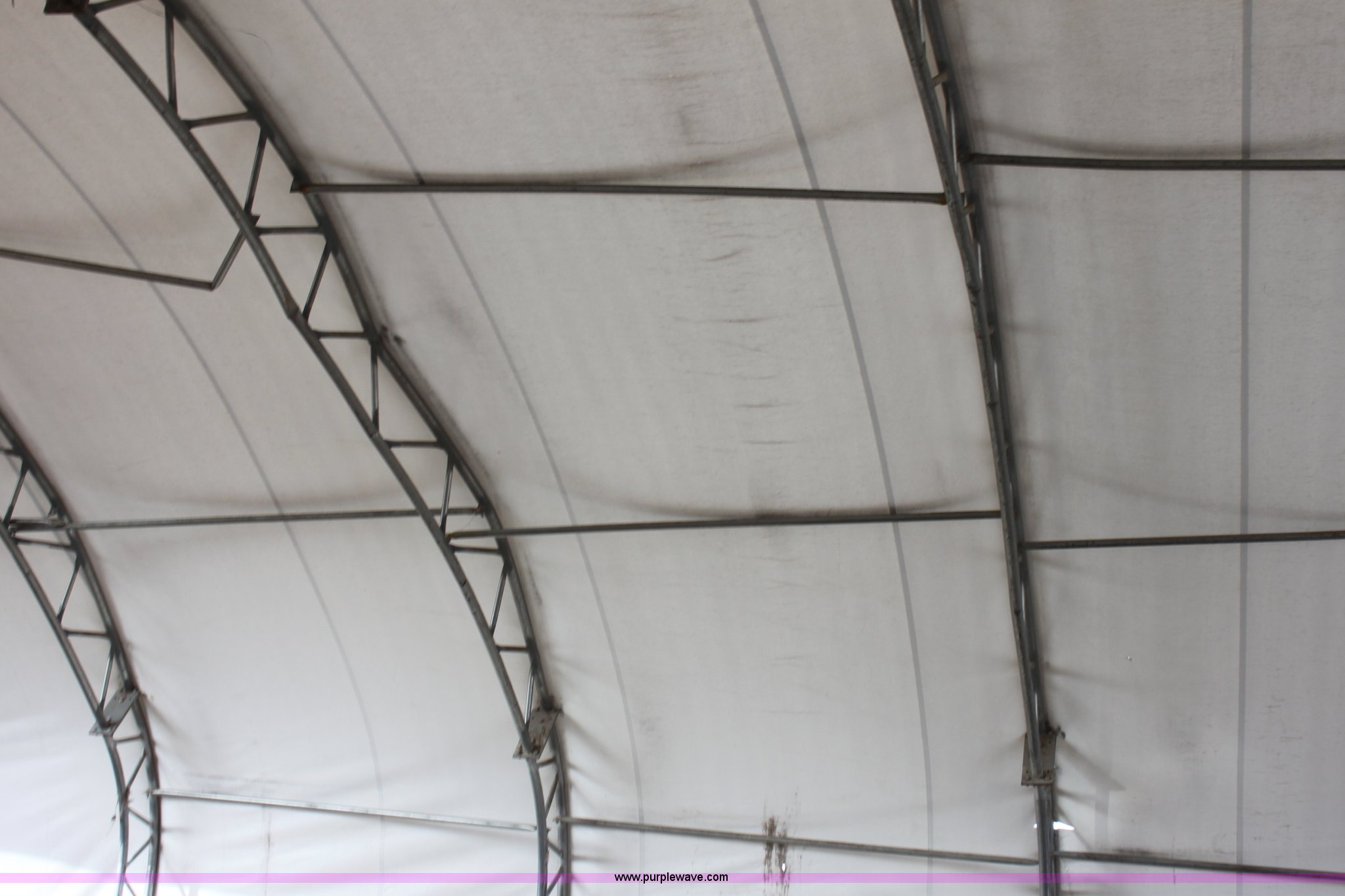 Shelter logic tent building. 40' x 60' x 18'H, 2010 canvas Has holes, Bolt together frame Some bent, Contents not included. Buyer is responsible for removal must have proof of a $1,000,000 liability insurance. Must be removed within 30 days. Shipping quotes available. ICM. Colwich, KS 67030