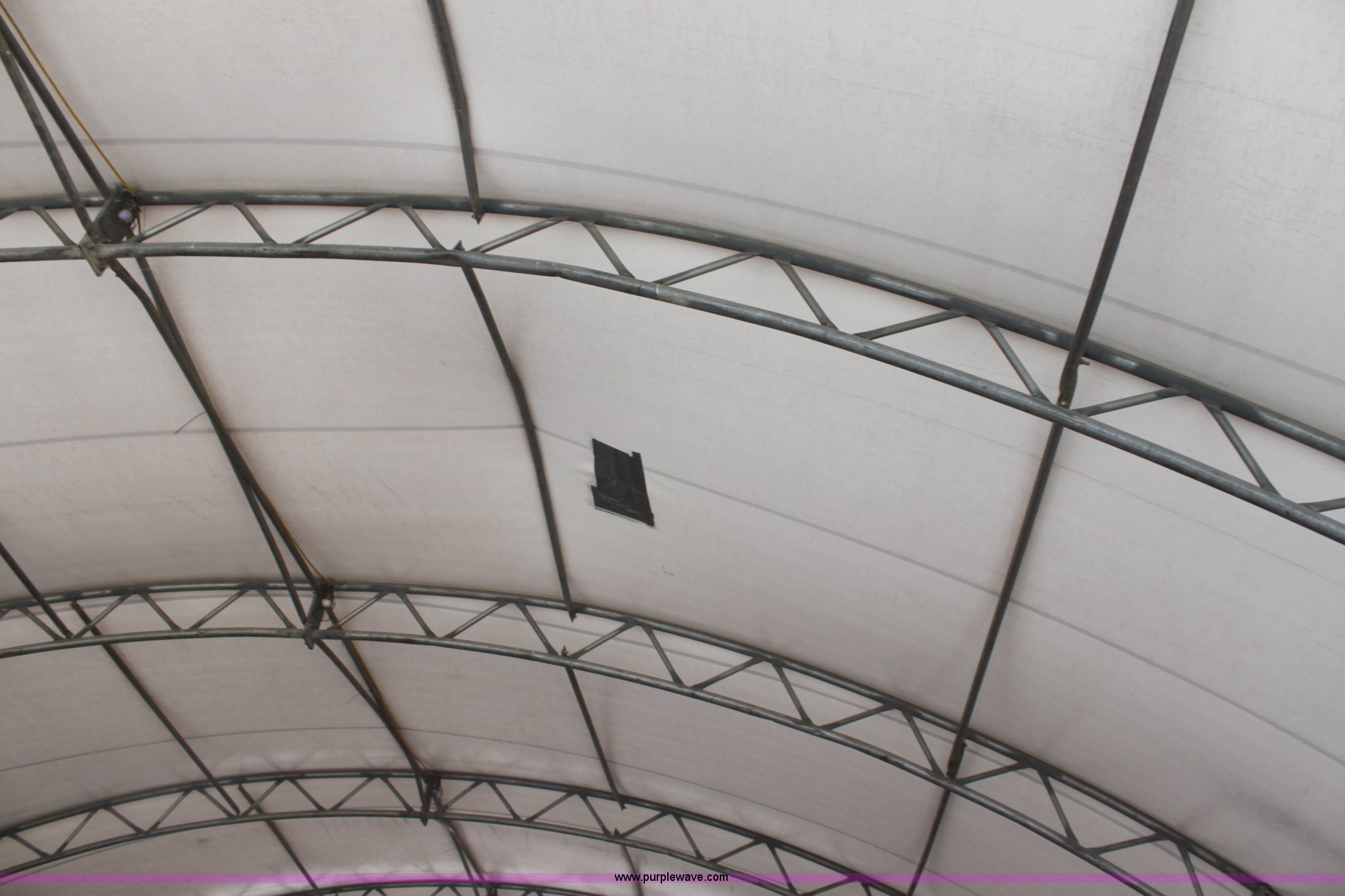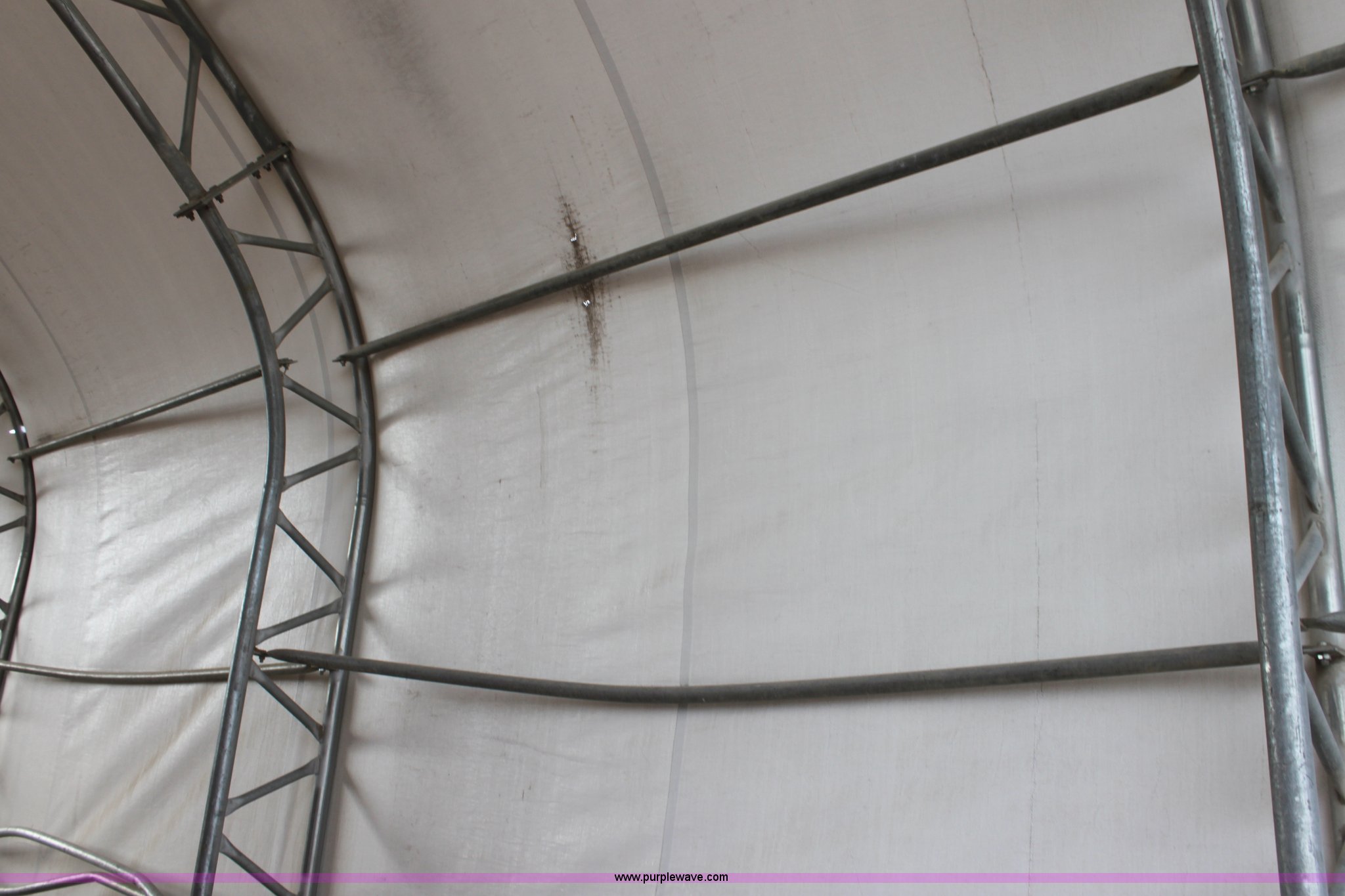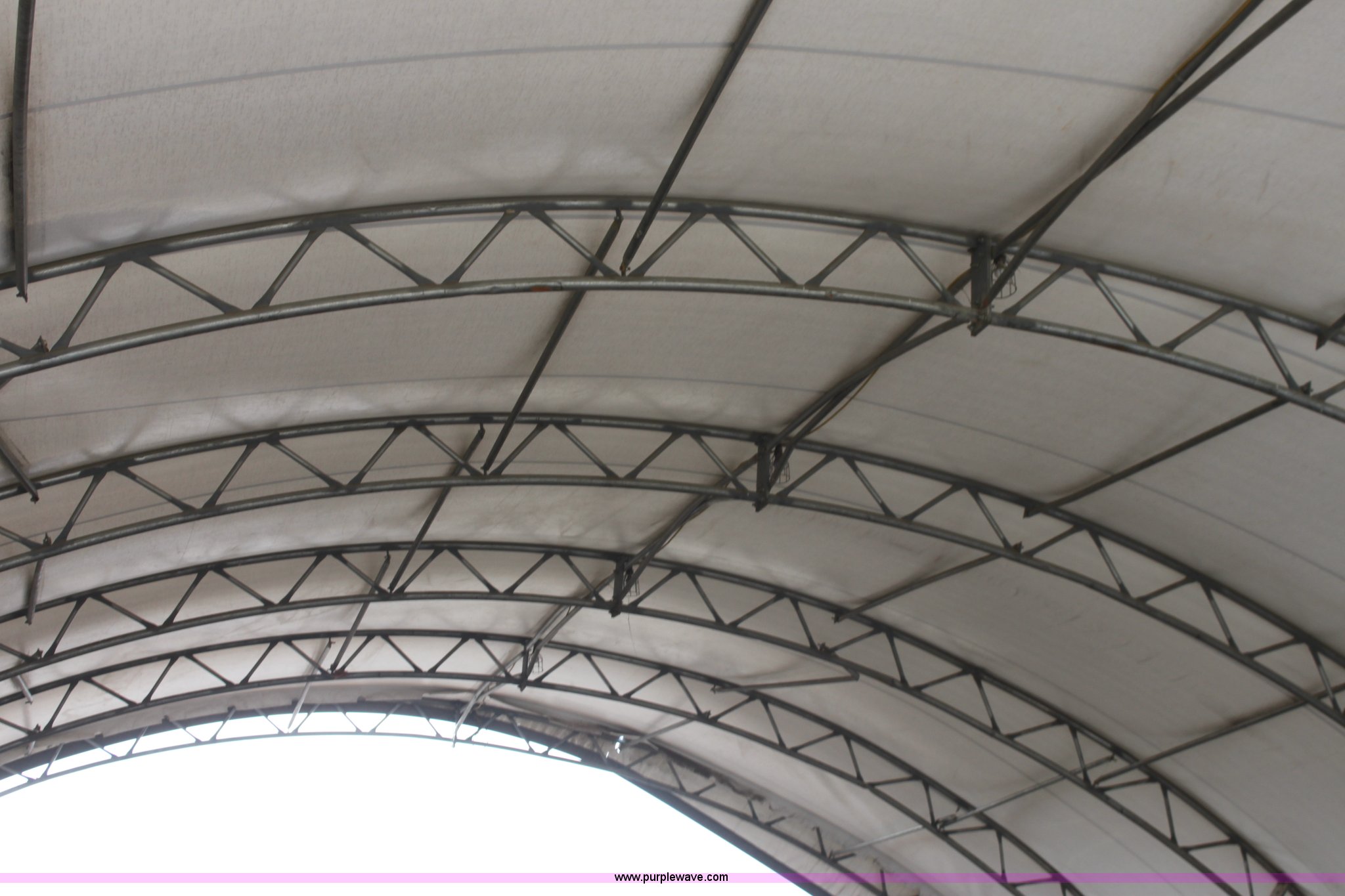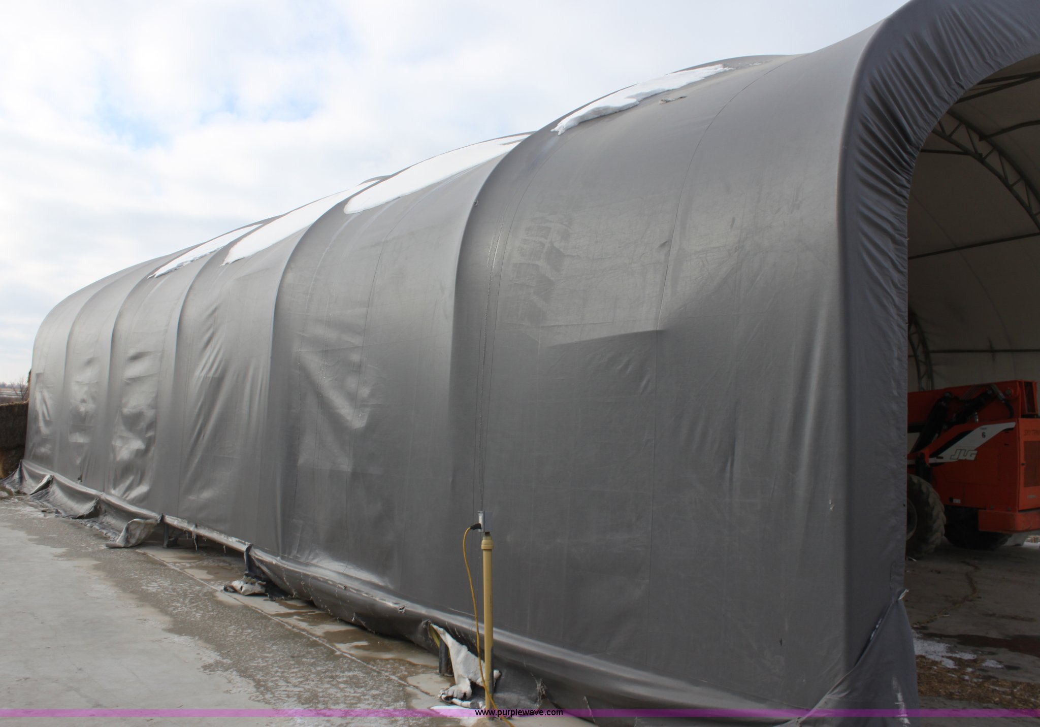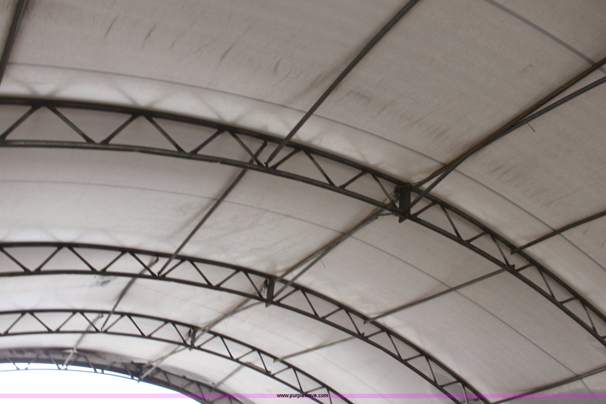 Shelter logic tent building. 40' x 60' x 18'H, 2010 canvas Has holes, Bolt together frame Some bent, Contents not included. Buyer is responsible for removal must have proof of a $1,000,000 liability insurance. Must be removed within 30 days. Shipping quotes available. ICM. Colwich, KS 67030