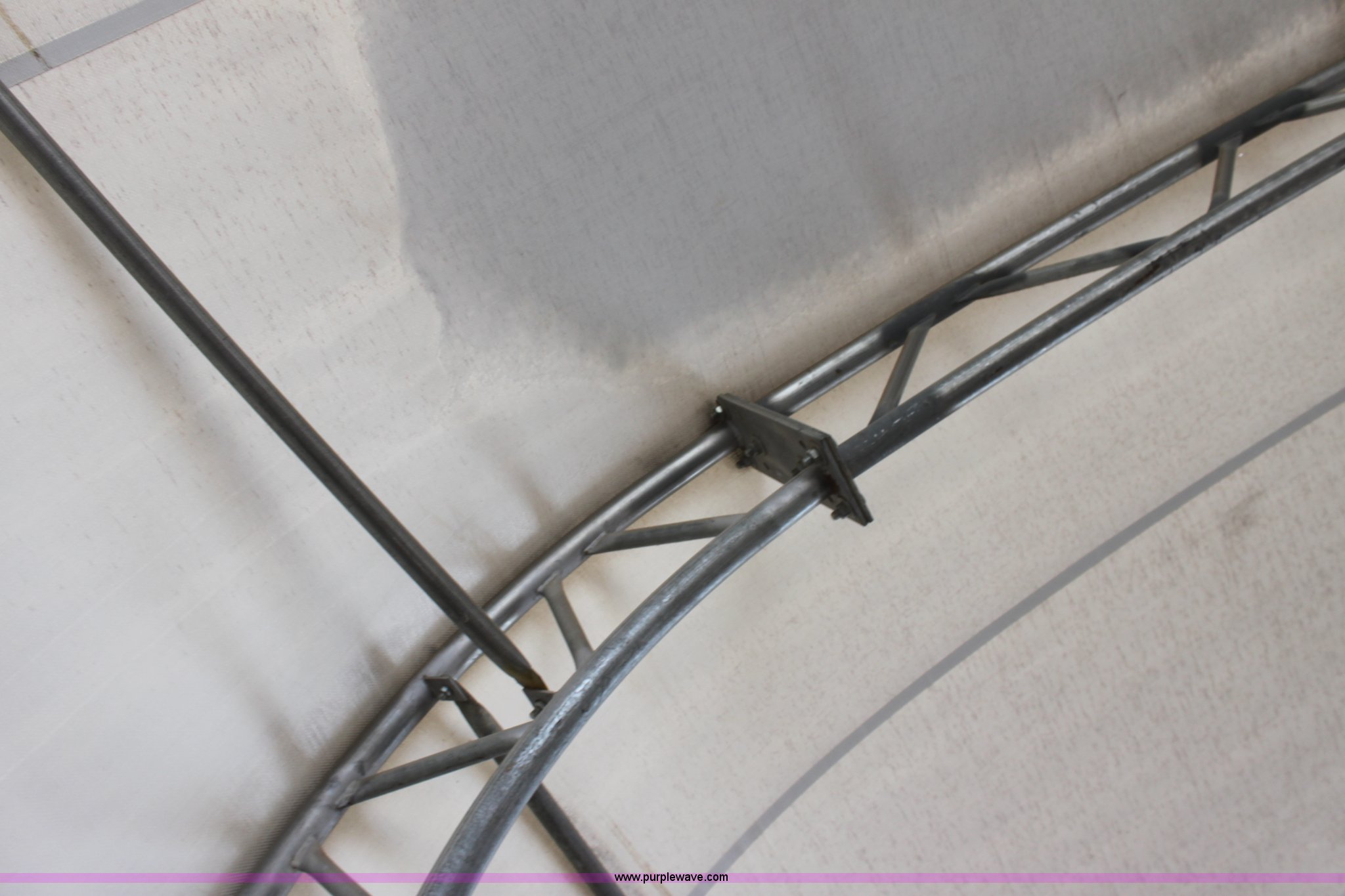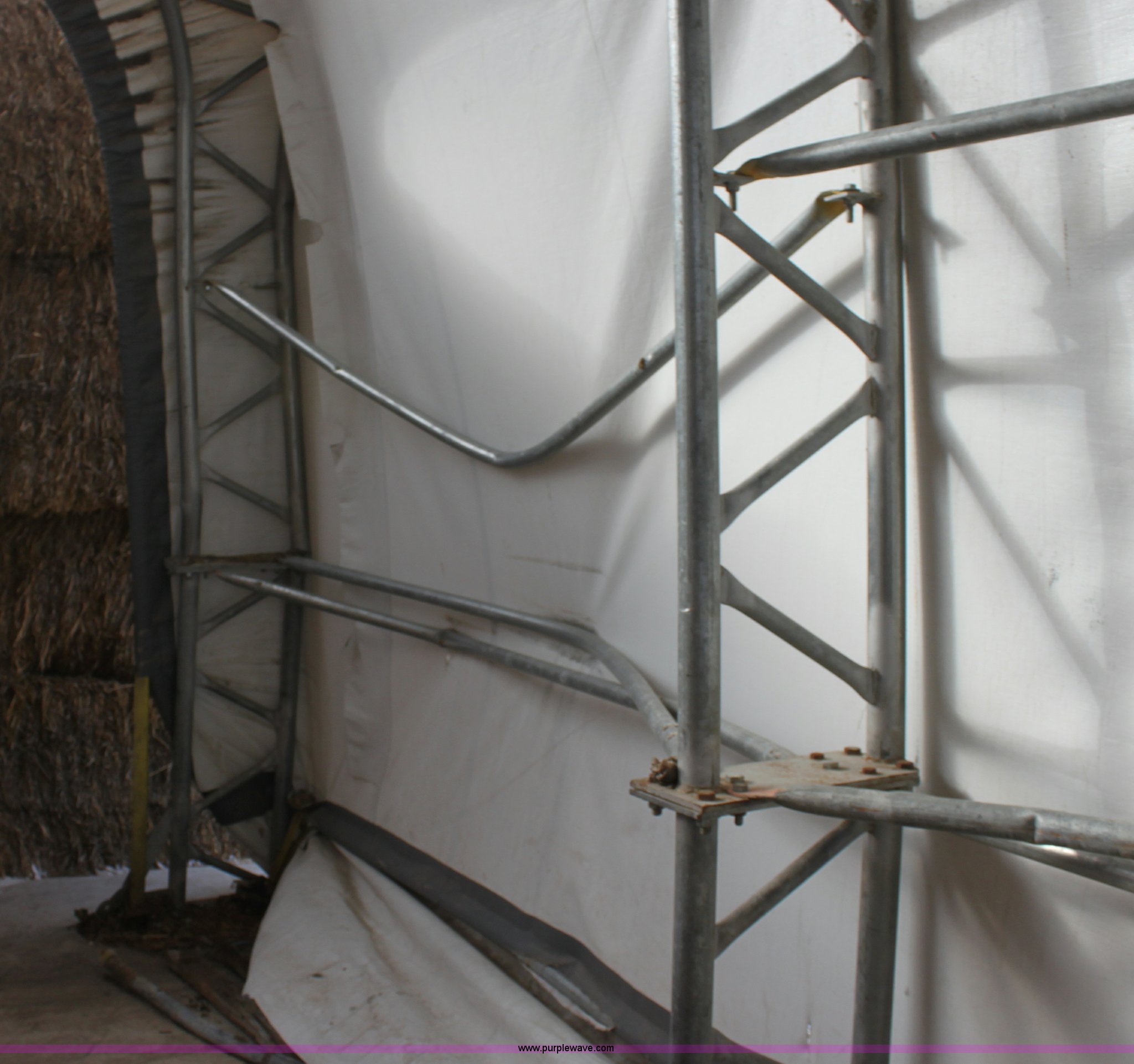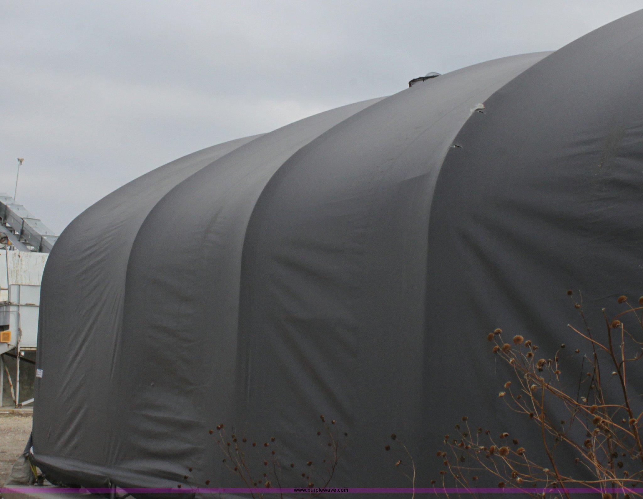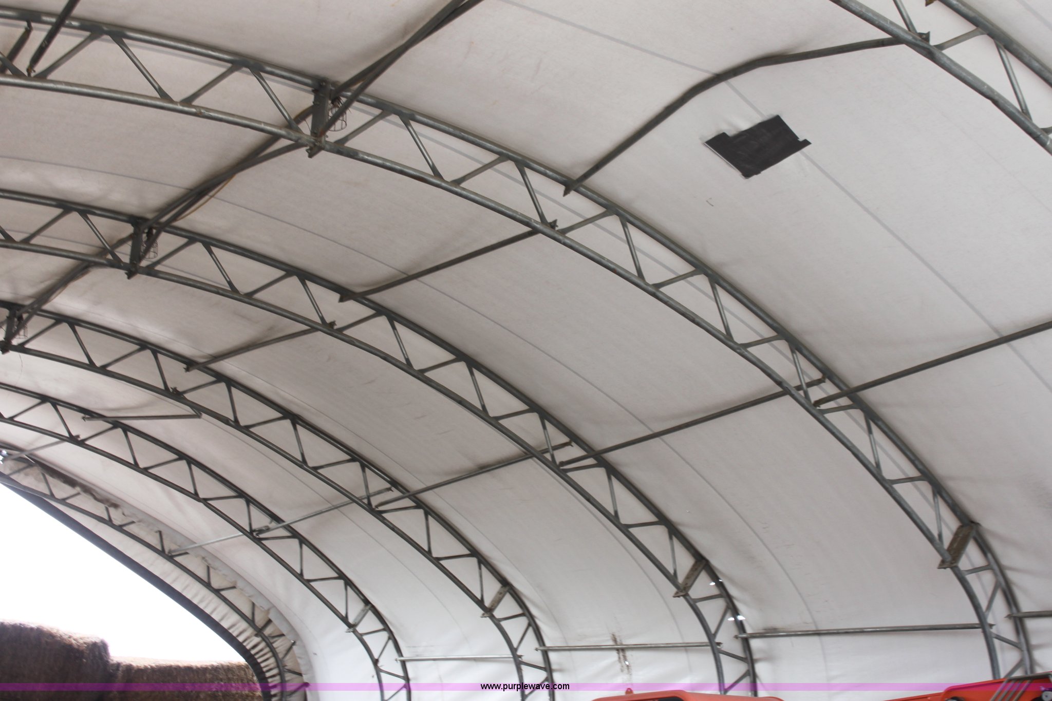 Shelter logic tent building. 40' x 60' x 18'H, 2010 canvas Has holes, Bolt together frame Some bent, Contents not included. Buyer is responsible for removal must have proof of a $1,000,000 liability insurance. Must be removed within 30 days. Shipping quotes available. ICM. Colwich, KS 67030