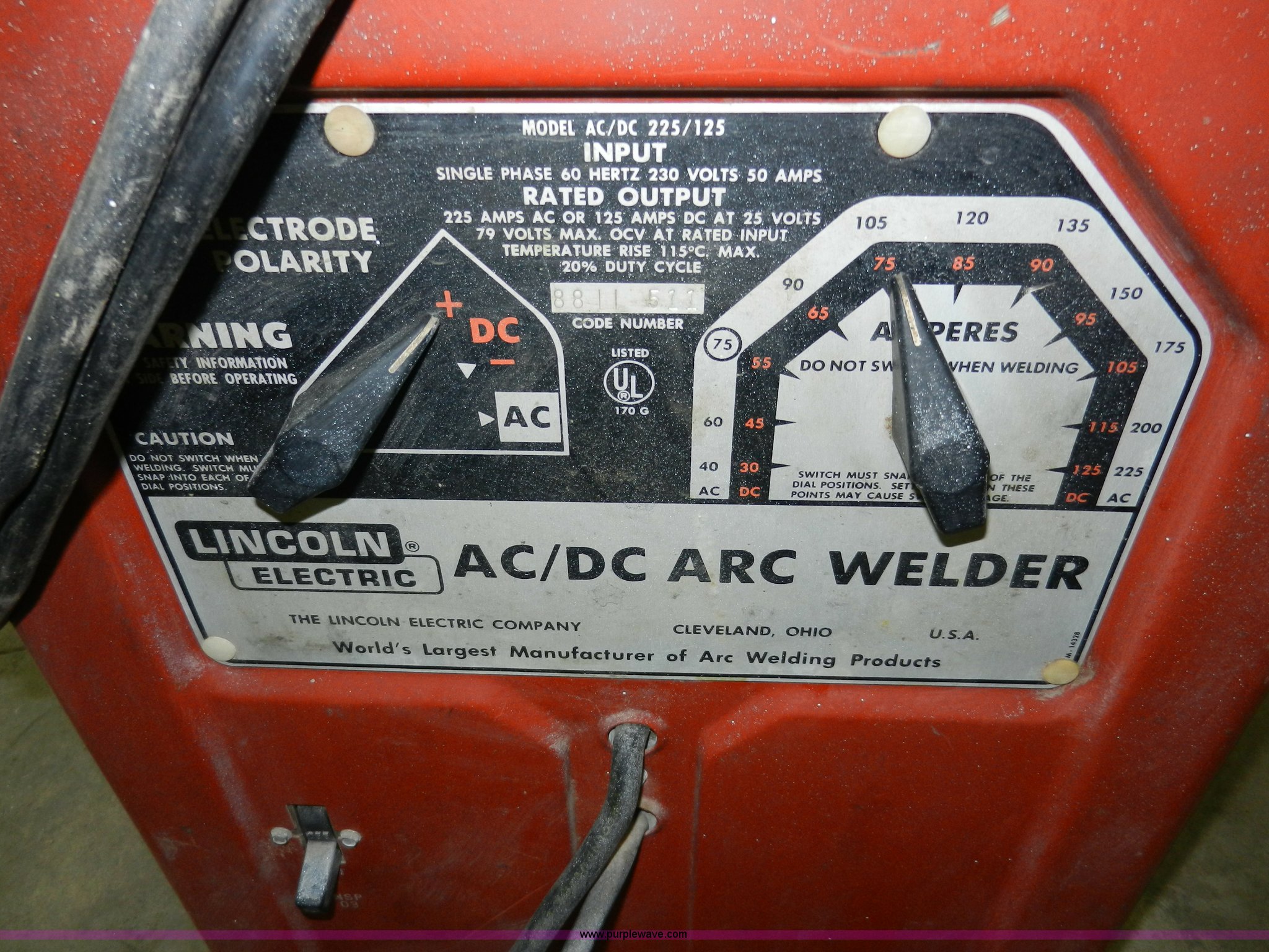 Lincoln AC/DC arc welder. Model 225/125, Single phase, Clamp, tip and cords. Shipping quotes available. 102 Alcove Drive. Blue Rapids, KS 66411