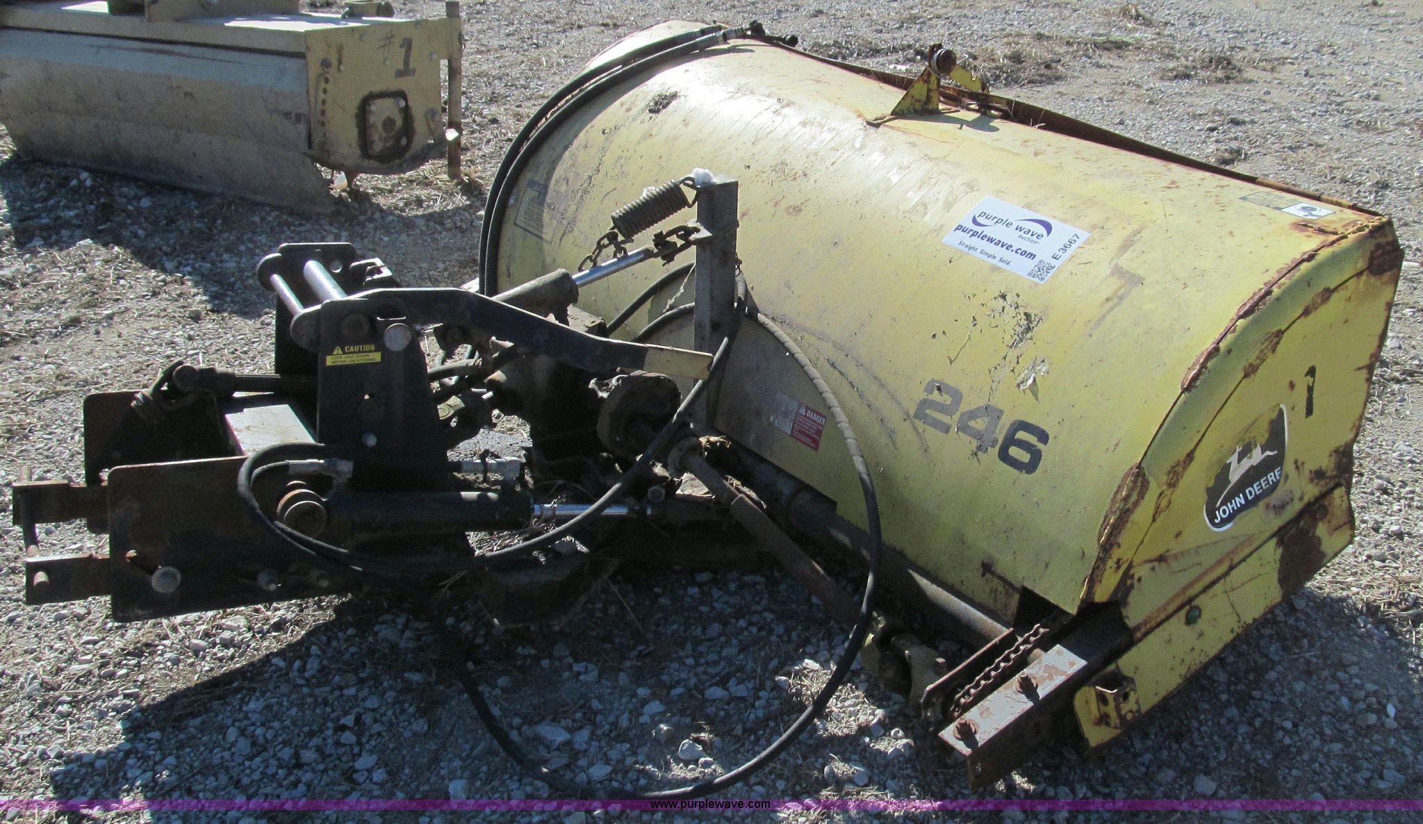 Purple Wave is selling a used Broom in Missouri. This item is a John Deere 246 sweeper attachment with the following: Hydraulic drive, Hydraulic lift, Fits John Deere 955 utility tractor, Serial M00246C110307