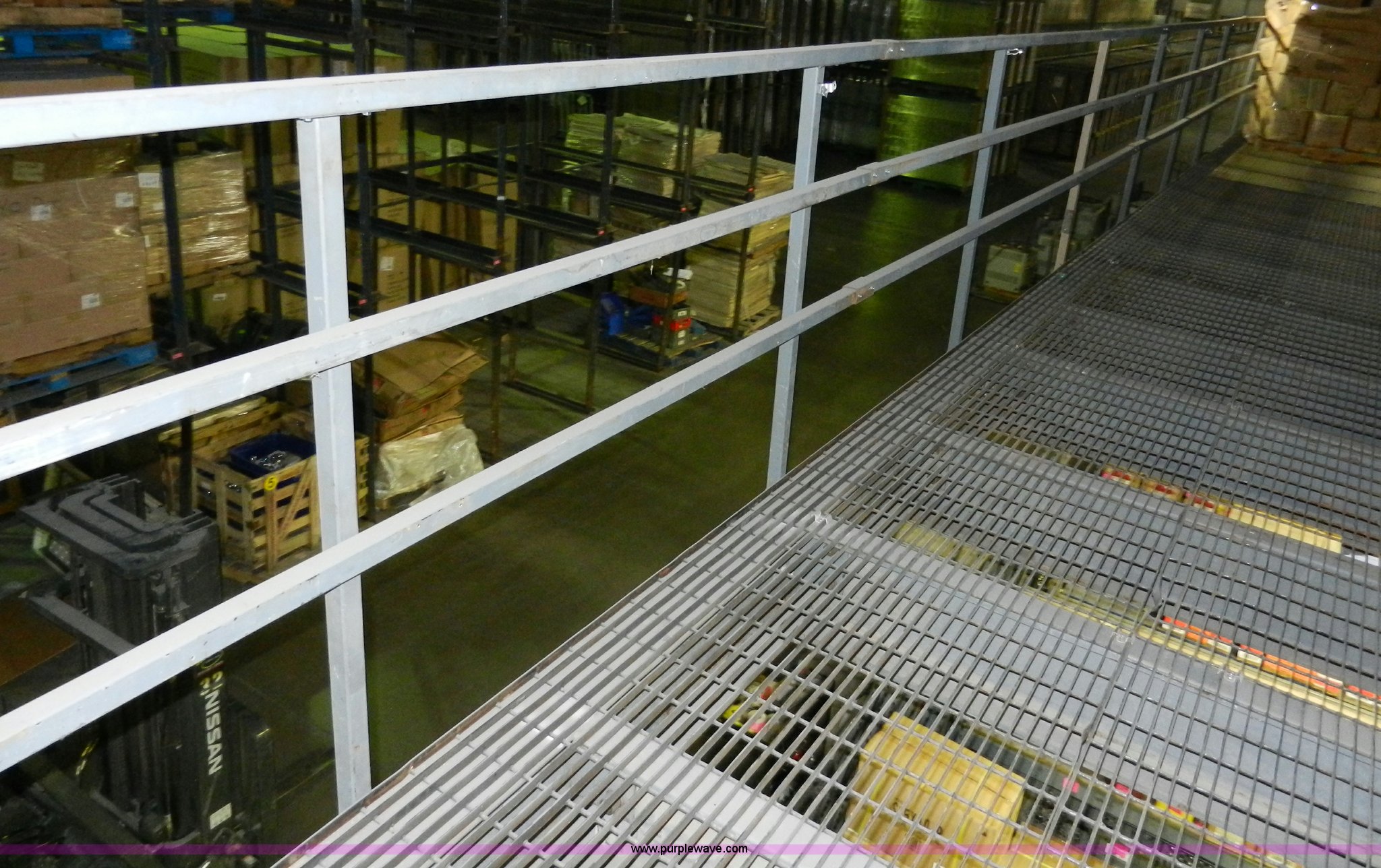 Mezzanine structure. 60' x 20', 10' legs, Lights included, Upper walkway with staircase, Shelving at underside not included, Unit will be disassembled by auction date. Shipping quotes available. TAP Enterprises, Inc.. 650 N Lincoln St. Spring Hill, KS 66083