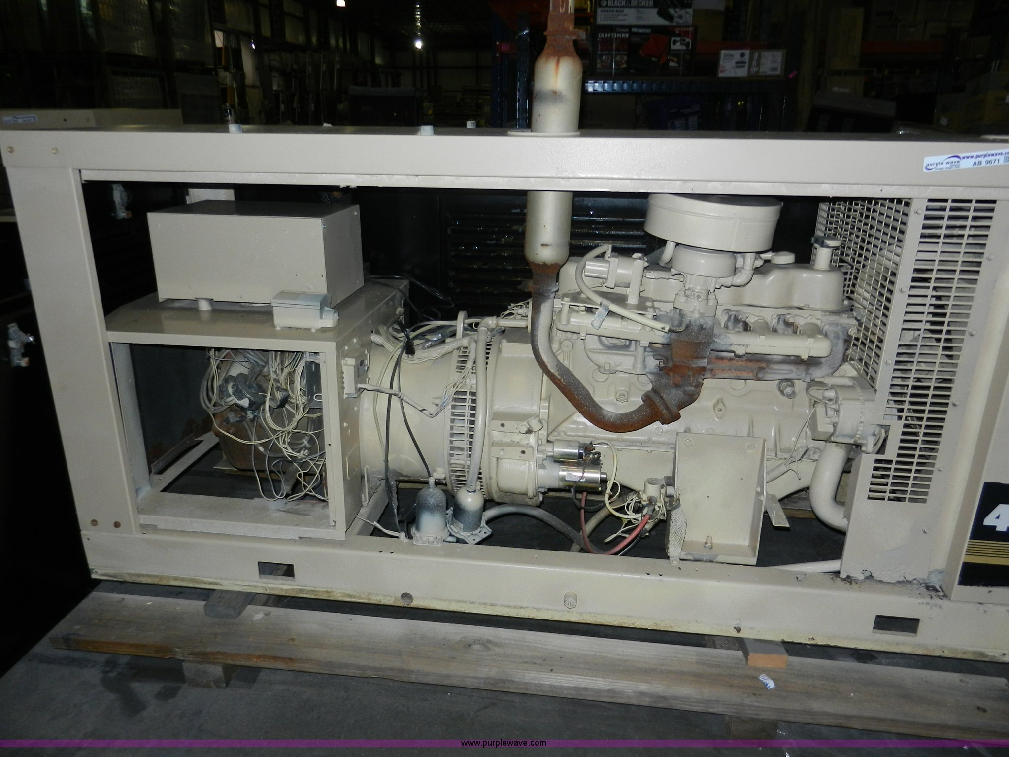 Purple Wave is selling a used Generator Set in Kansas. This item is a Kohler 45 Fast Response II generator with the following: Model 45RZ62, 704 hours on meter, Ford six cylinder propane engine, Model VSG-41116005-A, Serial 06562K-26-RB, Three phase, 45 kW, Radiator cooled, Skid mounted, Serial 317645
