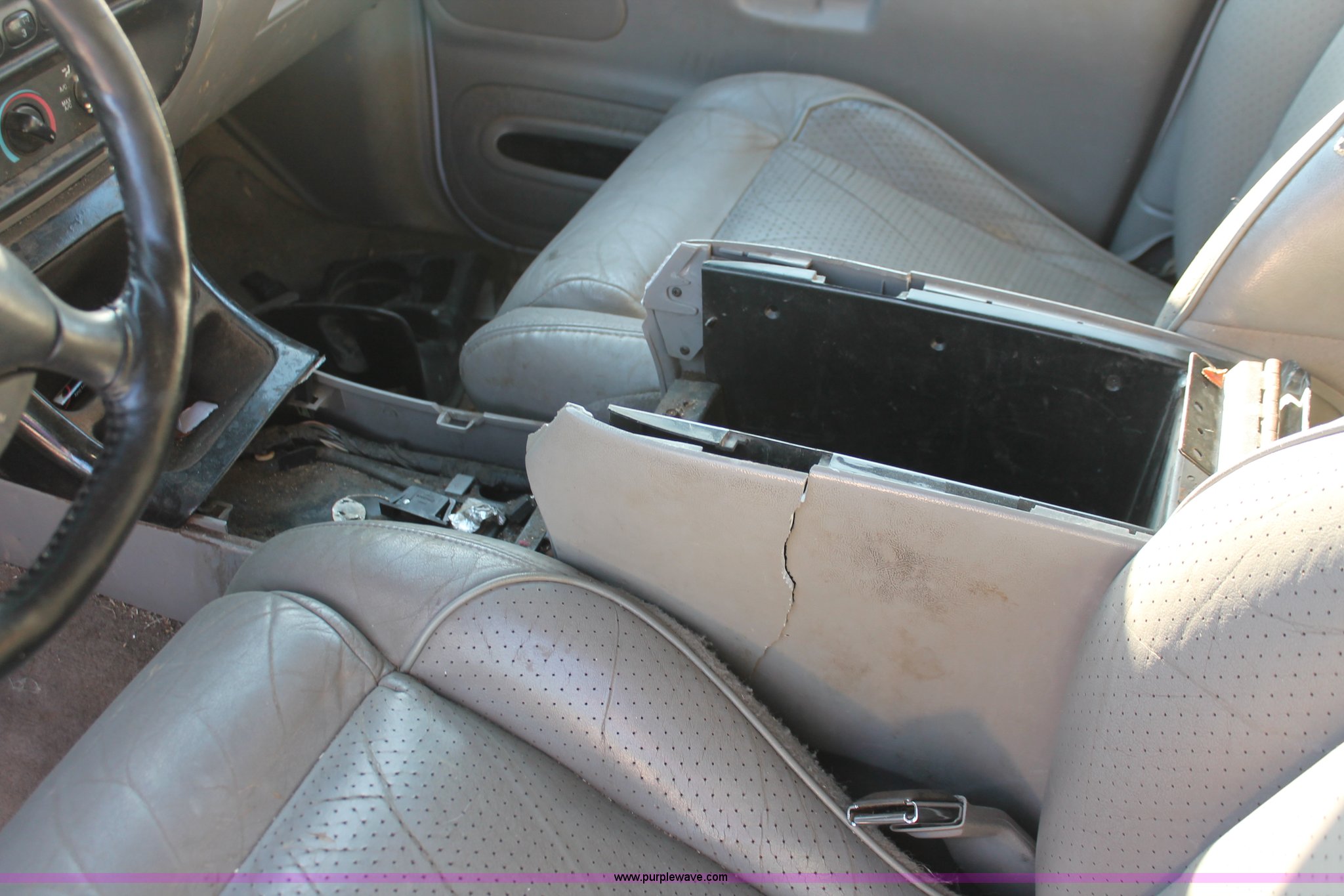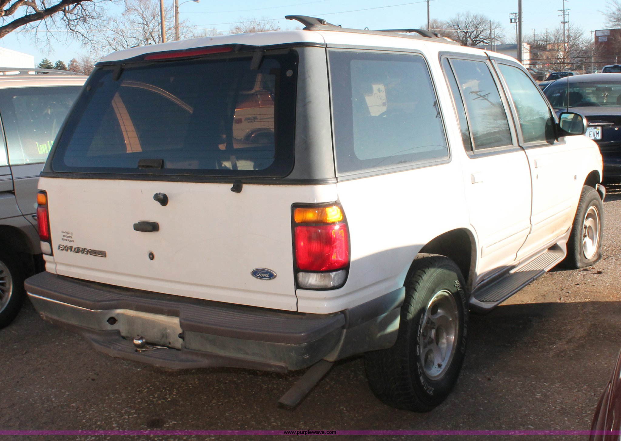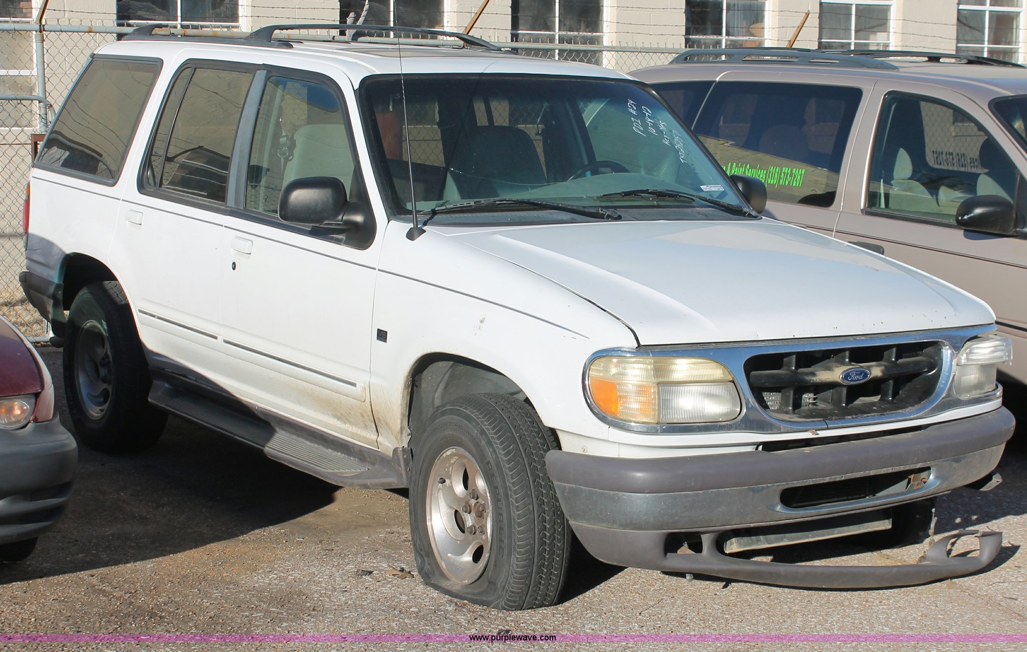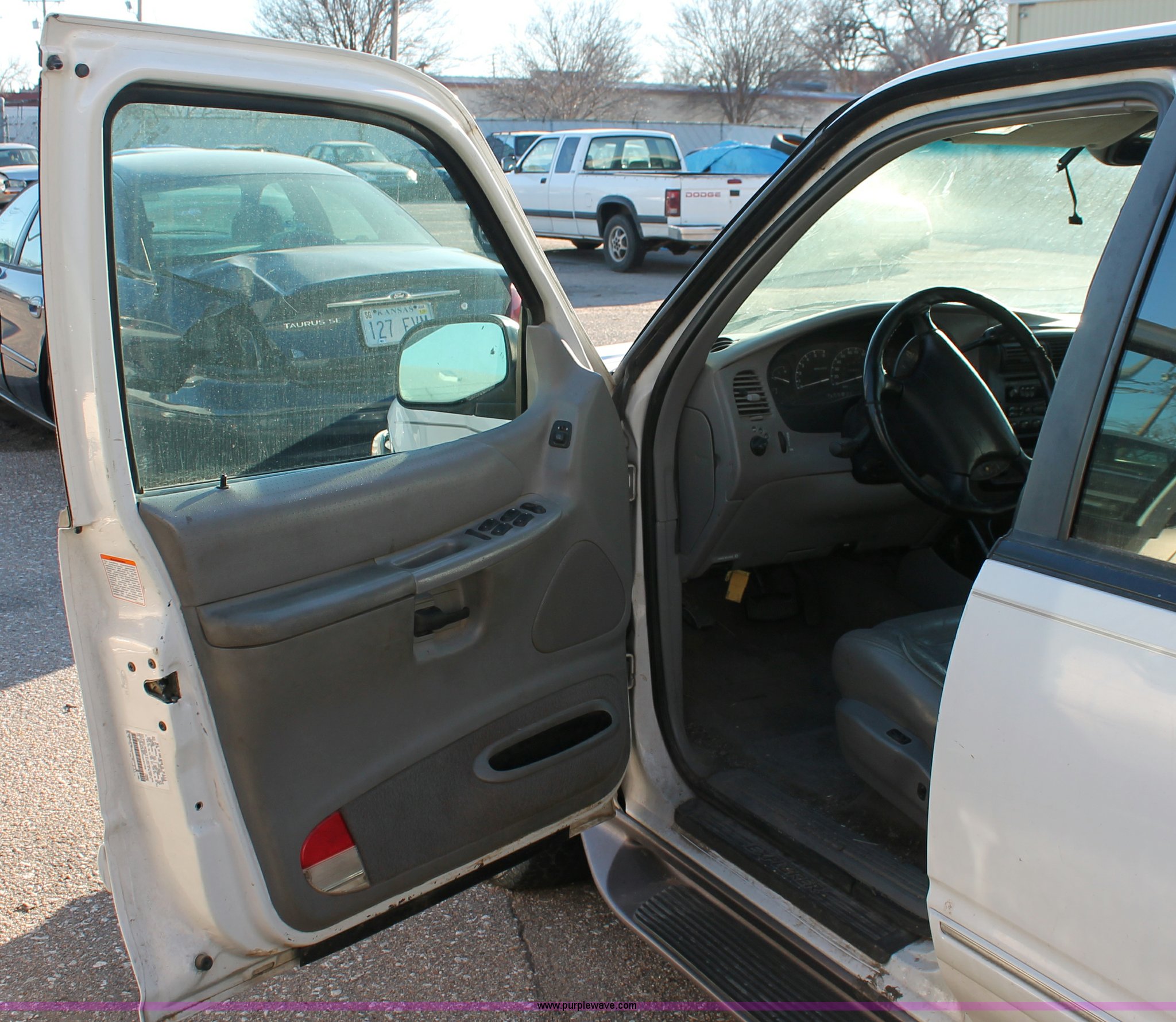Purple Wave is selling a used Passenger Vehicle in Kansas. This item is a 1997 Ford Explorer SUV with the following: 209,073 miles on odometer, 4.9L V8 OHV 16V gas engine, Automatic transmission, AC and heat, Tilt, Cruise, AM/FM/cassette, Power windows, locks, mirrors, and seats, Leather interior, Keyless entry, Running boards, Keys, 2" ball, P235/75R15 tires, Front bumper damage, Flat tires, Collision damage, Console damage, Windshield cracked, Unknown running condition, Case# 12C72148