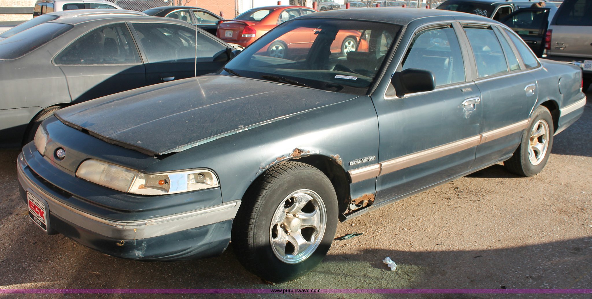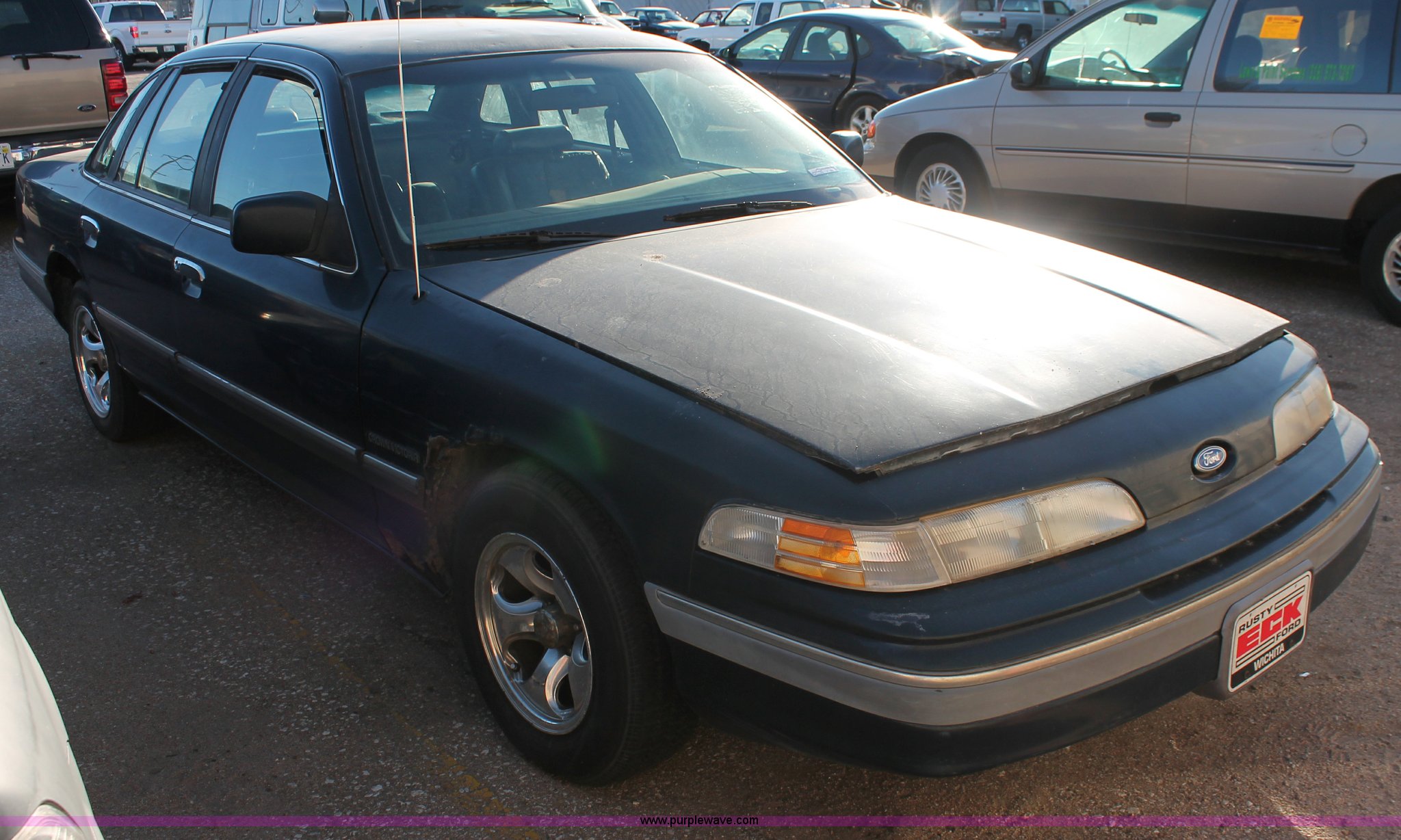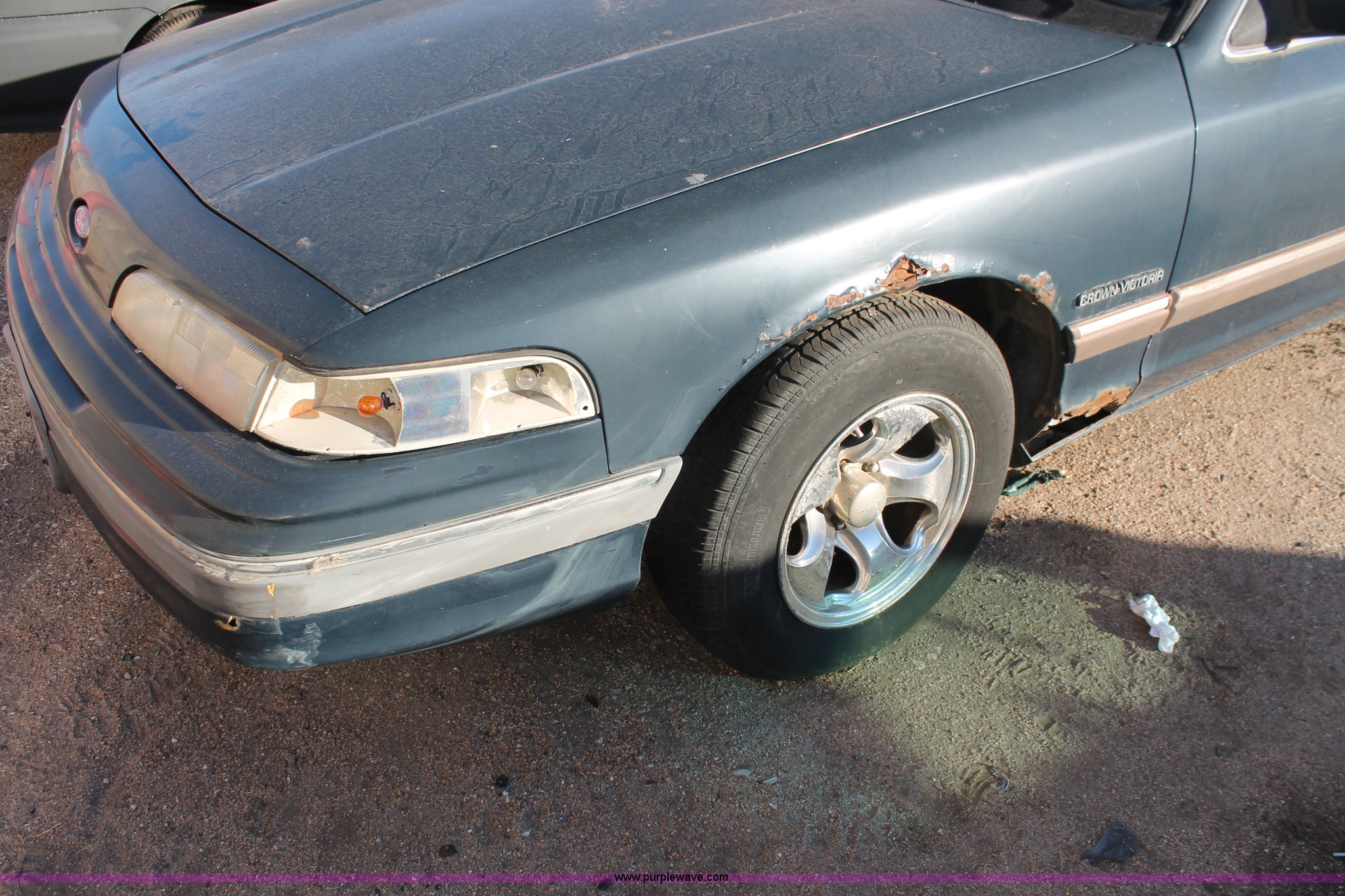 Purple Wave is selling a used Wrecked and Abandoned in Kansas. This item is a 1992 Ford Crown Victoria LX with the following: Unknown miles on odometer, 4.6L V8 SOHC 16V gas engine, Automatic transmission, AC and heat, AM/FM/cassette, Power windows, locks, mirrors, and seats, Leather interior, P195/65R15 tires, Interior/exterior cosmetic damage, Rust, Trunk key hole damage, Steering column damage, Rear seat missing, Driver's headlight broken, Driver's side mirror cracked, Unknown running condition, Case# 12C070240