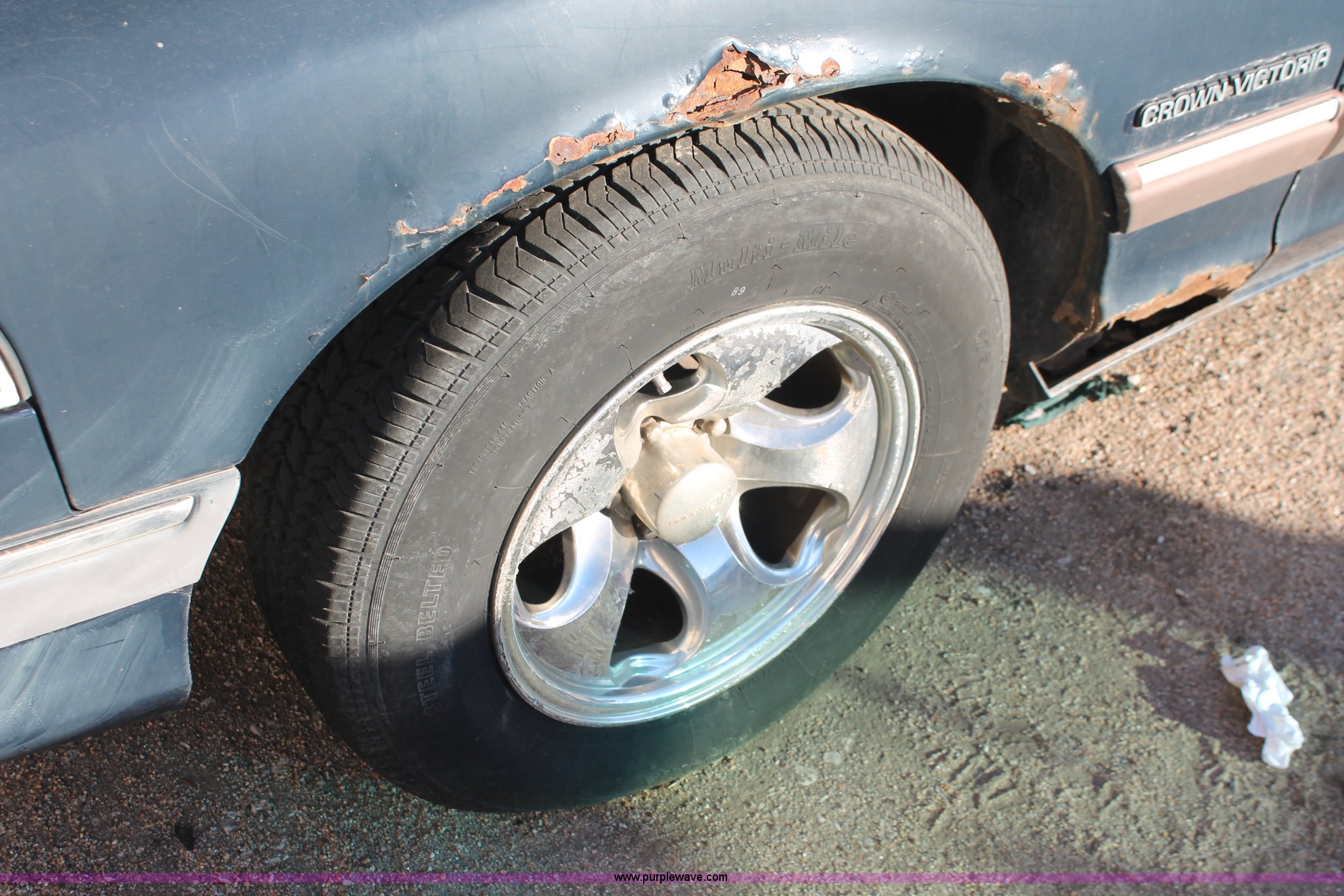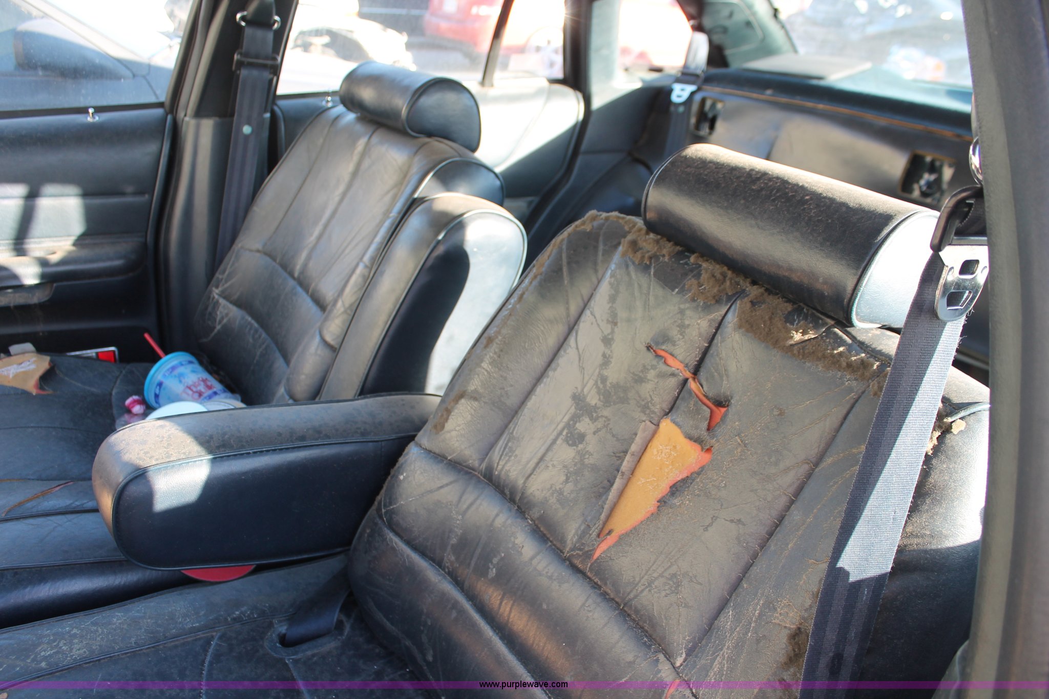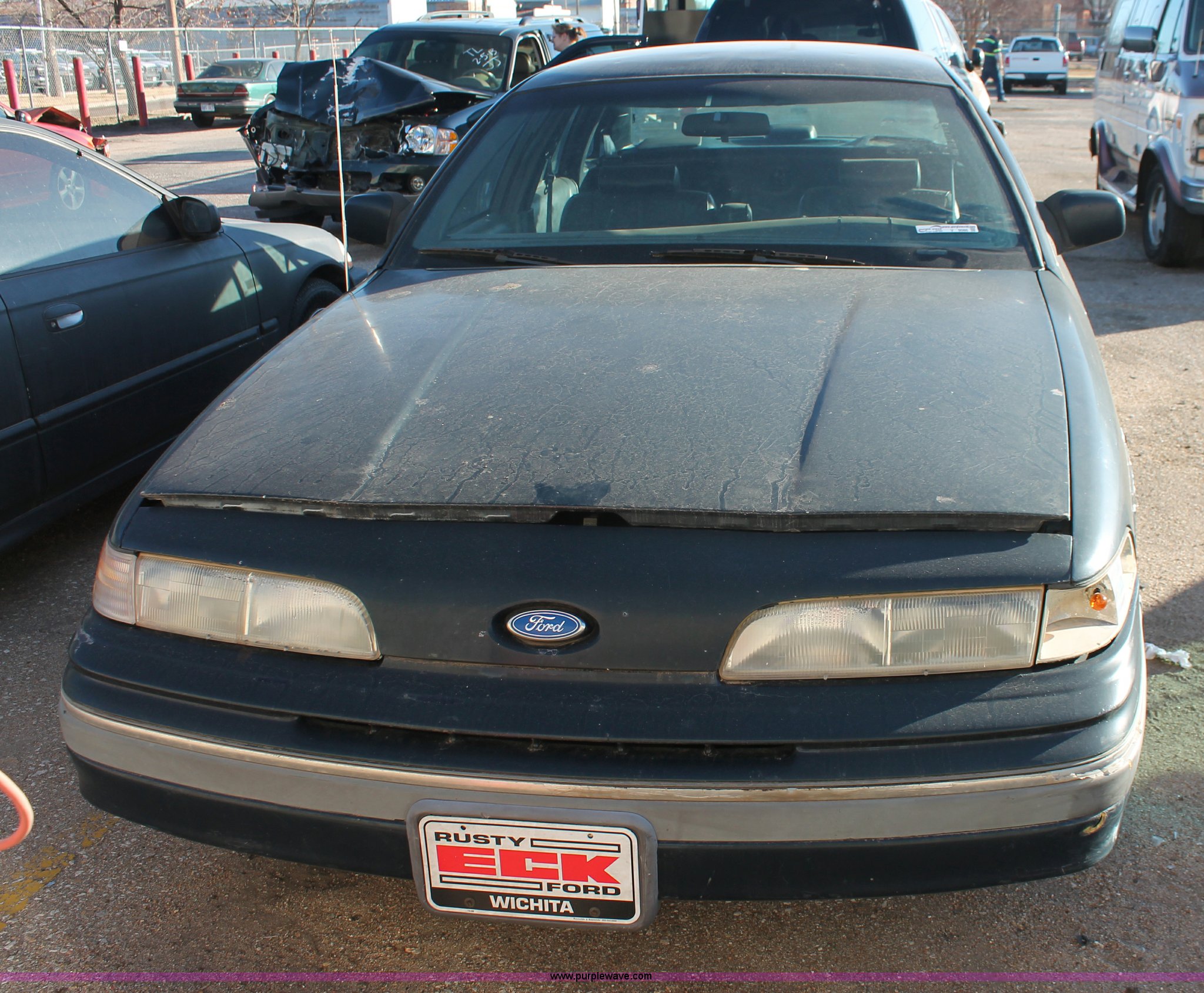 Purple Wave is selling a used Wrecked and Abandoned in Kansas. This item is a 1992 Ford Crown Victoria LX with the following: Unknown miles on odometer, 4.6L V8 SOHC 16V gas engine, Automatic transmission, AC and heat, AM/FM/cassette, Power windows, locks, mirrors, and seats, Leather interior, P195/65R15 tires, Interior/exterior cosmetic damage, Rust, Trunk key hole damage, Steering column damage, Rear seat missing, Driver's headlight broken, Driver's side mirror cracked, Unknown running condition, Case# 12C070240