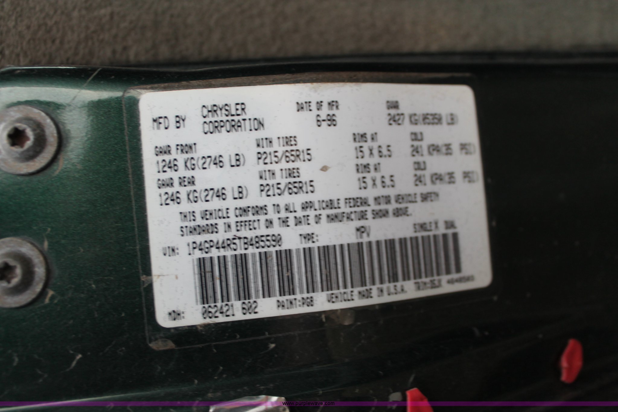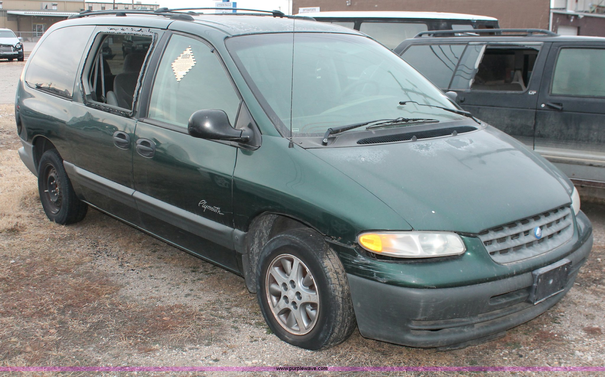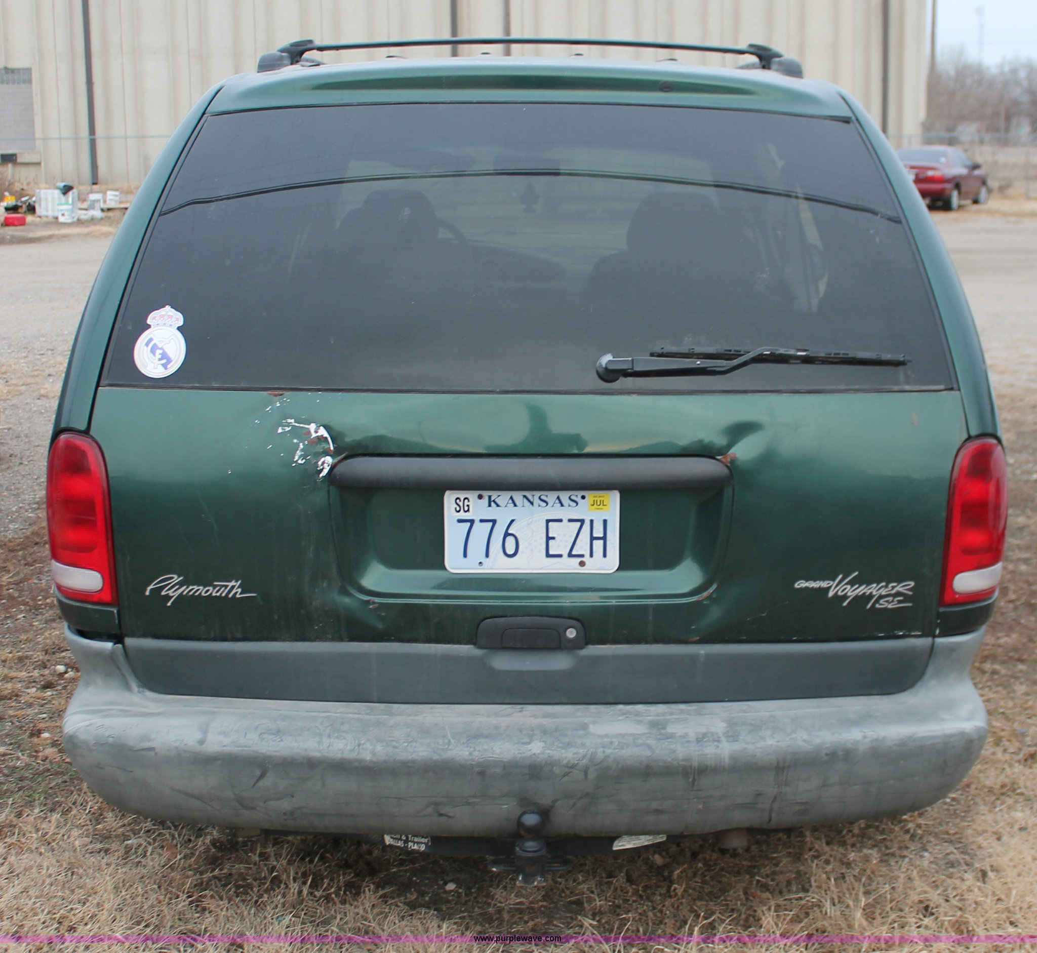 Purple Wave is selling a used Wrecked and Abandoned in Kansas. This item is a 1996 Plymouth Grand Voyager SE van with the following: Unknown miles on odometer, 3.3L V6 OHV 12V gas engine, Automatic transmission, AC and heat, Tilt, Cruise, AM/FM/cassette, Power windows, locks, and mirrors, Cloth interior, Receiver hitch, 1 7/8" ball, P205/65R15 tires, Interior/exterior cosmetic damage, Windshield cracked, Passenger middle window missing, Front bumper damage, Flat tire, Paint faded, Unknown running condition, Case# 12C65397