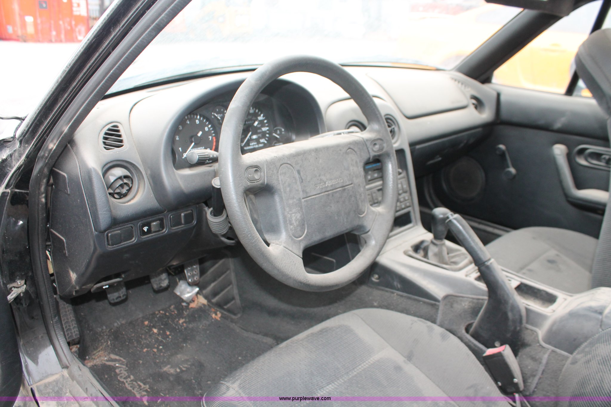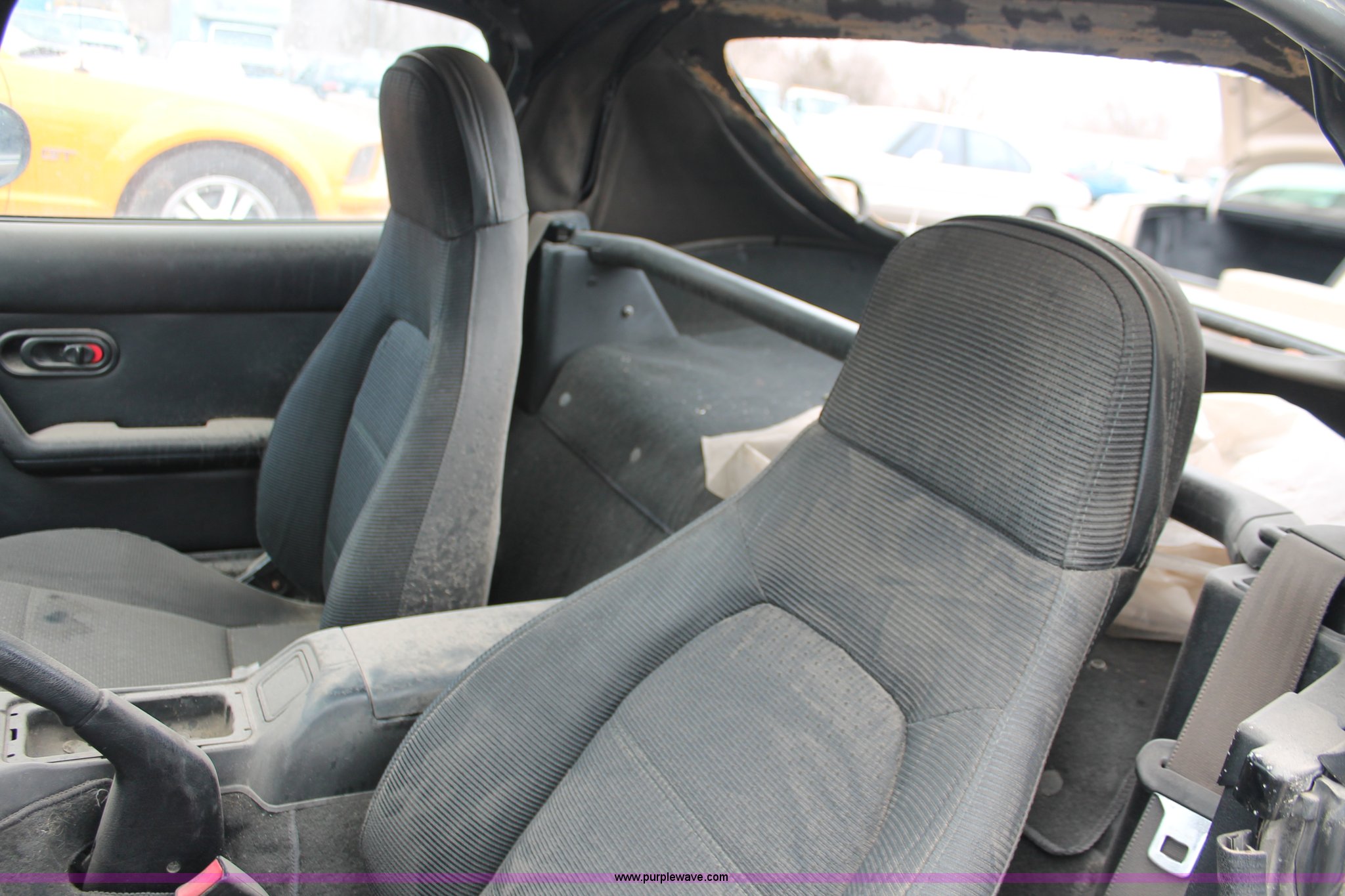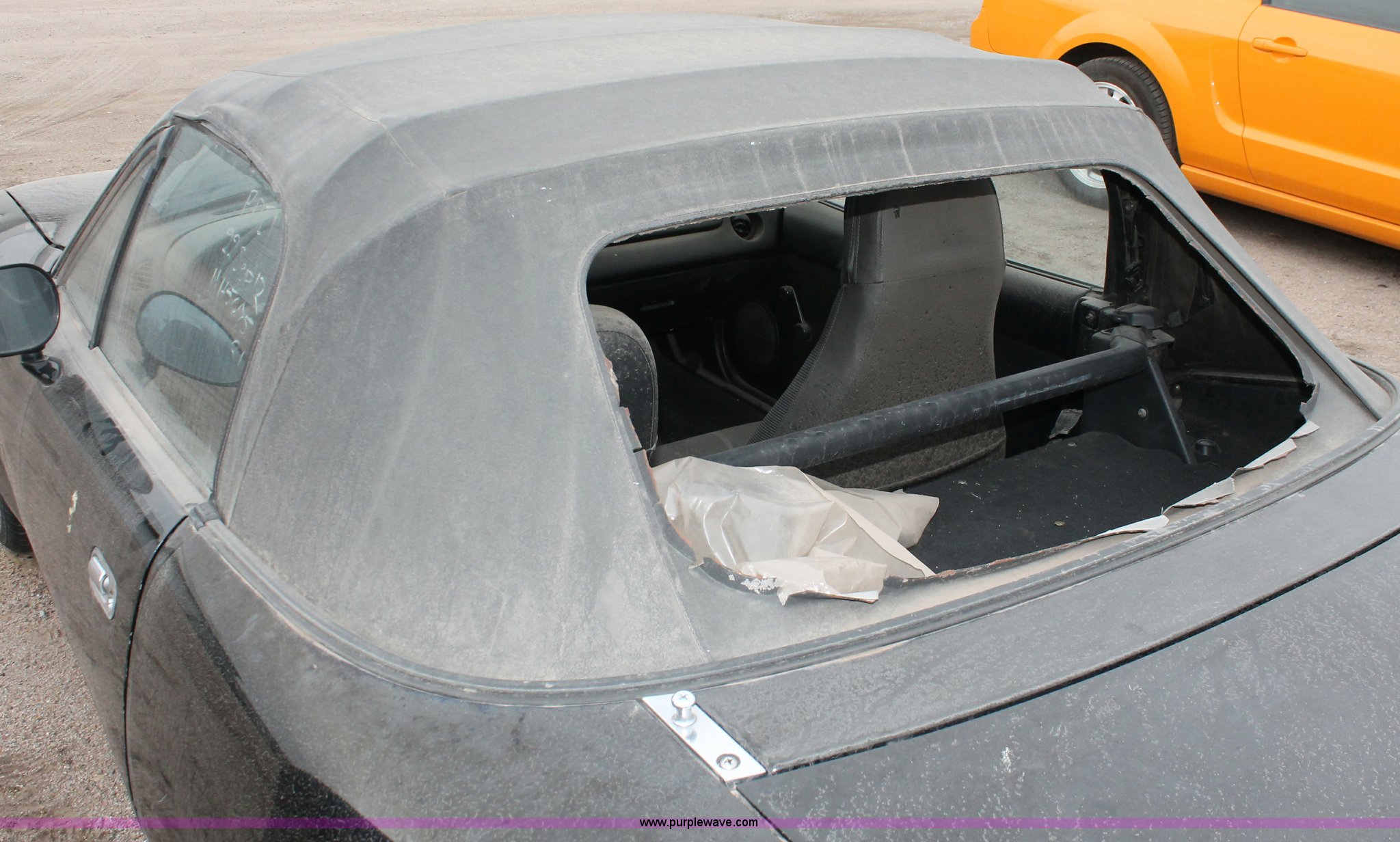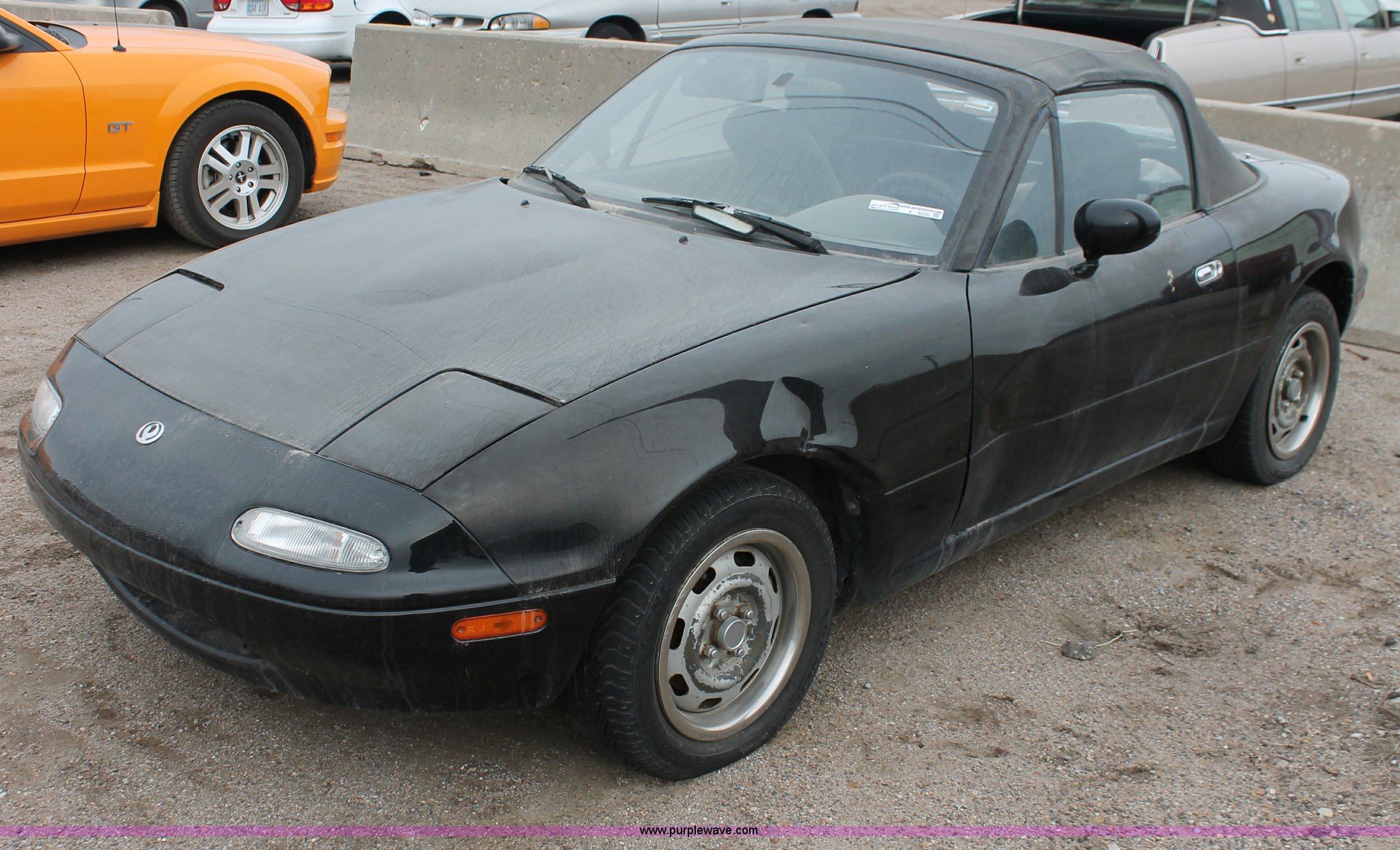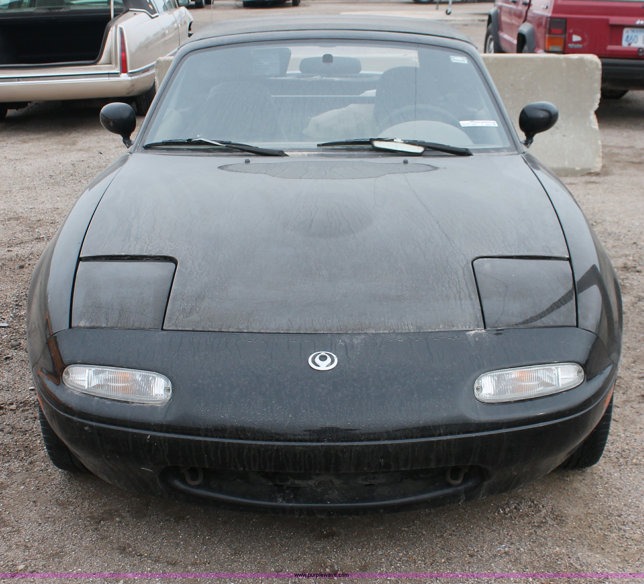 Purple Wave is selling a used Wrecked and Abandoned in Kansas. This item is a 1996 Mazda MX-5 Miata convertible with the following: 118,407 miles on odometer, 1.8L L4 DOHC 16V gas engine, Five speed manual transmission, AC and heat, Tilt, Cruise, AM/FM/cassette, Manual windows and locks, Cloth interior, Manual soft top, 185/60R14 tires, Vehicle starts, Rear window missing, Driver's side dents, Unknown driving condition, Keys, Case # 12C066095