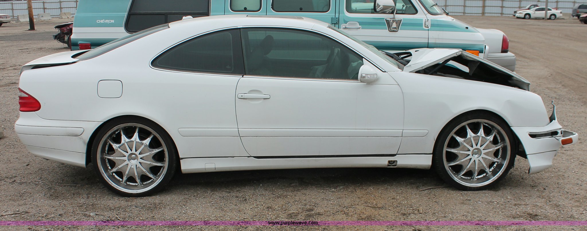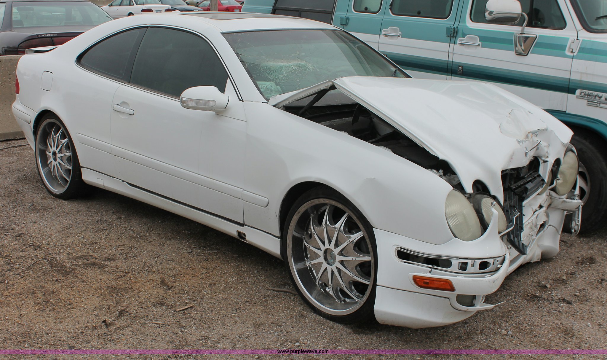 Purple Wave is selling a used Wrecked and Abandoned in Kansas. This item is a 2000 Mercedes Benz CLK320 with the following: Unknown miles on odometer, 3.2L V6 SOHC 18V gas engine, Automatic transmission, AC and heat, Tilt, Cruise, Kenwood AM/FM/CD, Power windows, locks, and mirrors, Leather interior, Sunroof, 225/35ZR2090Y, Tirado Design 20" wheels, Front collision damage, Windshield cracked, Trunk damage, Interior cosmetic damage, Air bag deployed, Unknown running condition, Case # 12C061146