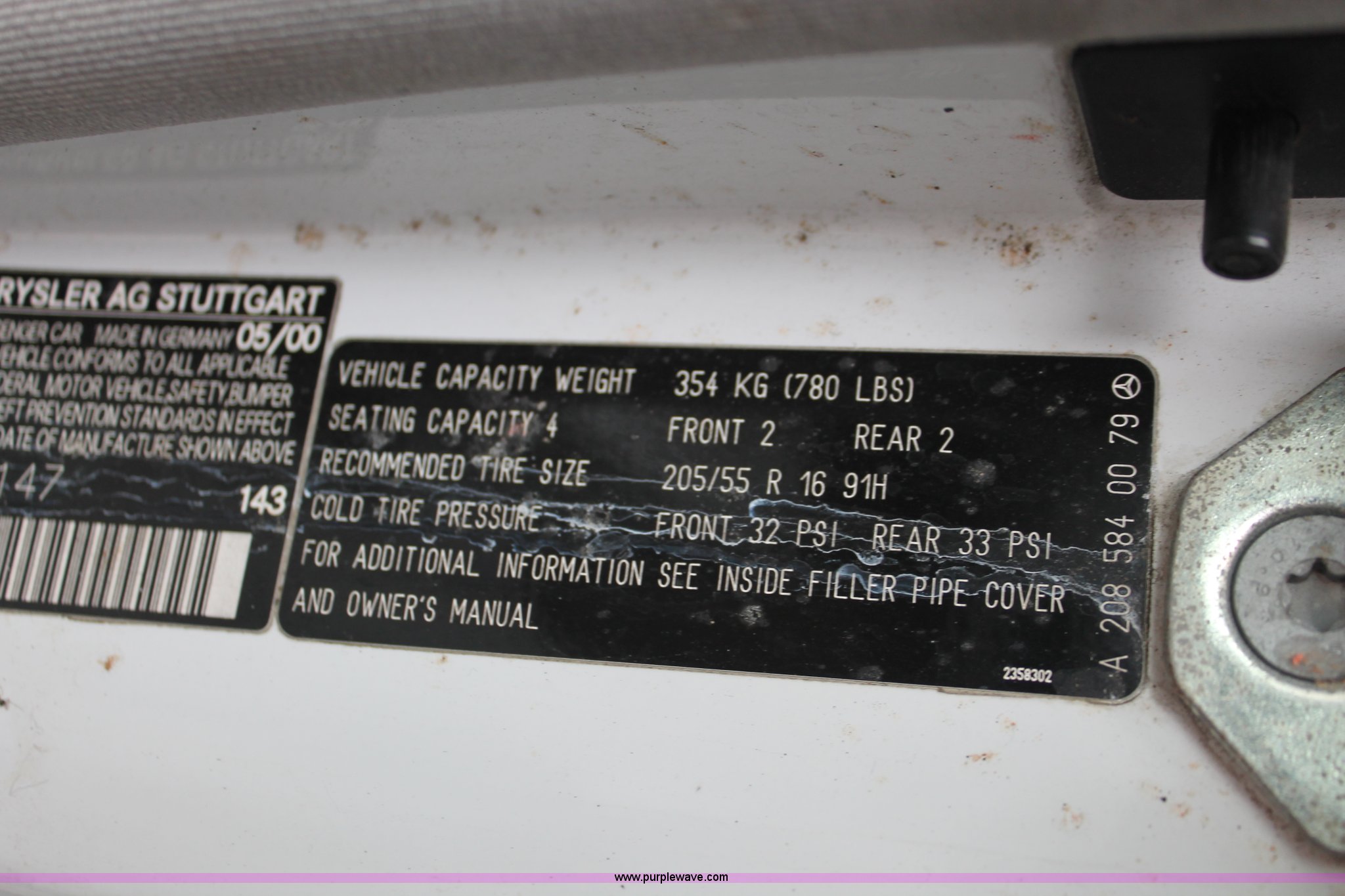 2000 Mercedes Benz CLK320 has sold in Wichita, Kansas for $1017.50. Item V9222 sold on February 25th, 2013.