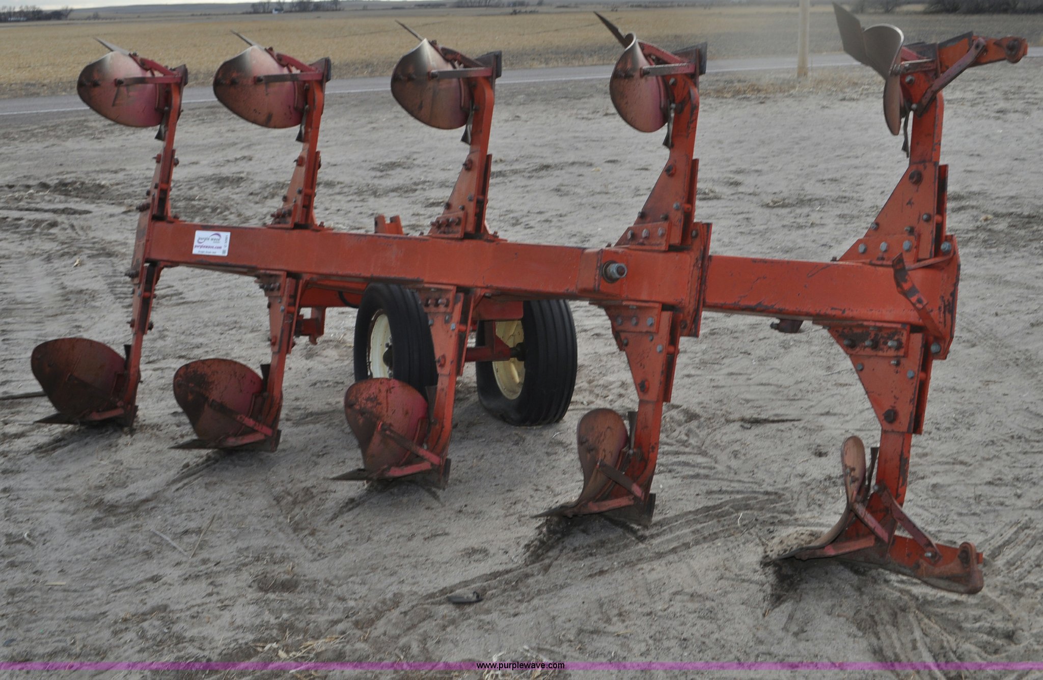 Purple Wave is selling a used Plow in Nebraska. This item is a Massey Fergusen 570 five bottom rollover plow with the following: 18" plow shares, Shear bolt bottoms, Three point, Adjustable onland dual gauge wheels, 9.5L-15 tires, Serial 2162000209