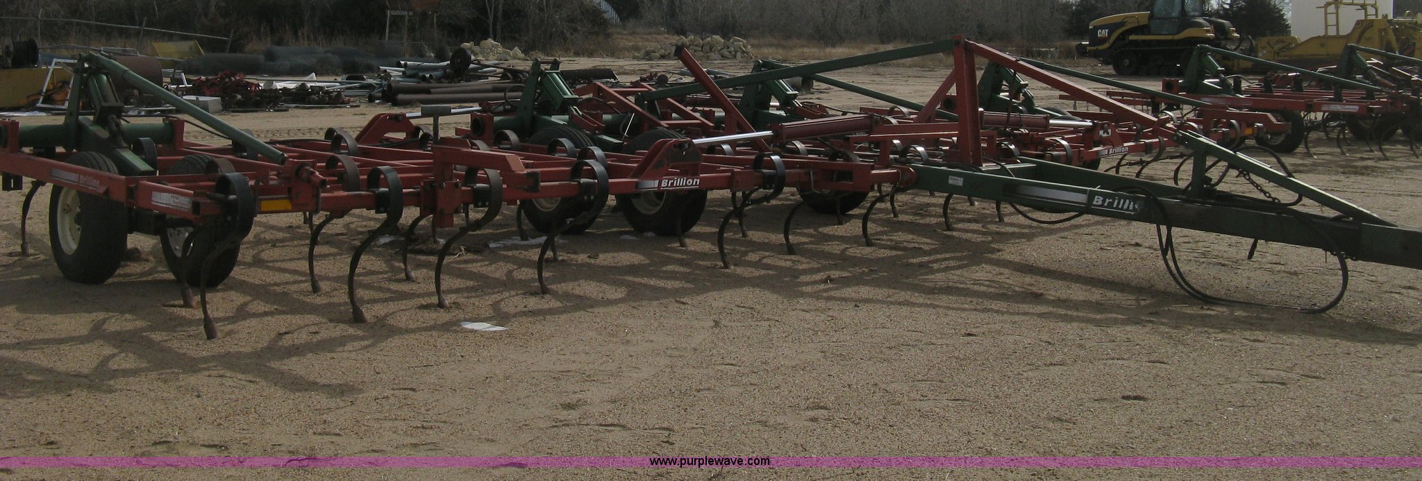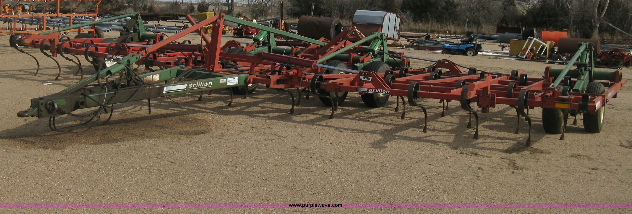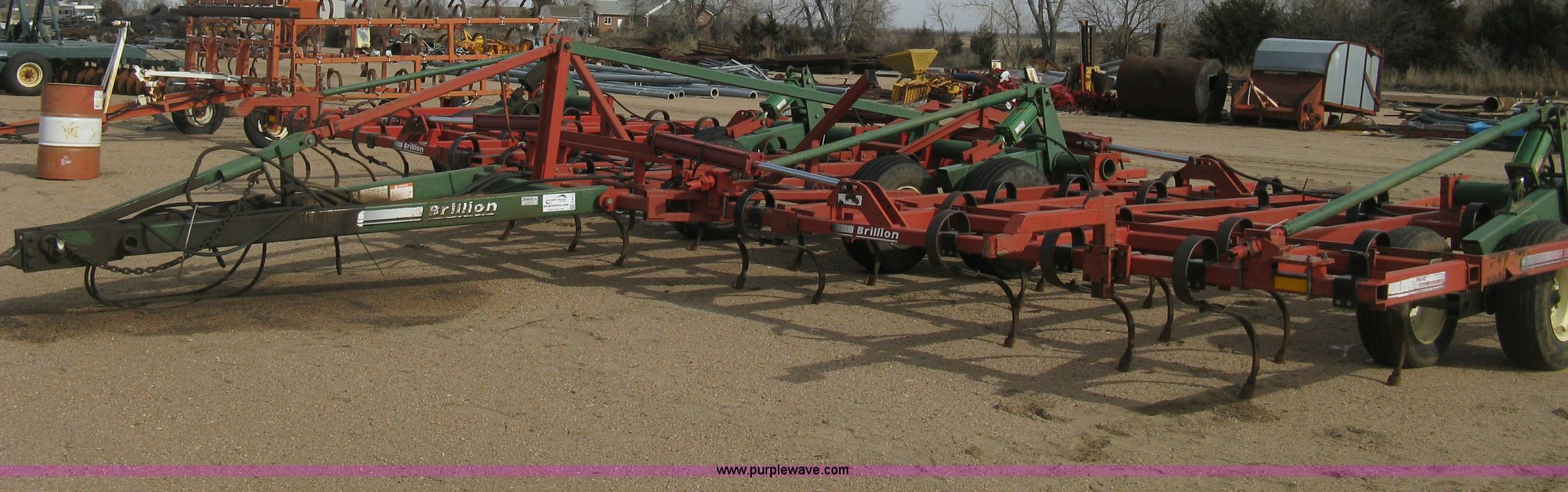 Purple Wave is selling a used Field Cultivator or Sweep Plow in Kansas. This item is a Brillion HFCT Field Commander 34' field cultivator with the following: (2) fold-down wings, Hydraulic twin cylinder per wing, (6) dolly wheels, Rear smoothing harrow mounting bars, No harrow, Rear hitch assembly, Adjustable height pin hitch, 9.5L-15 tires, Most sweeps are in place, Serial 178022
