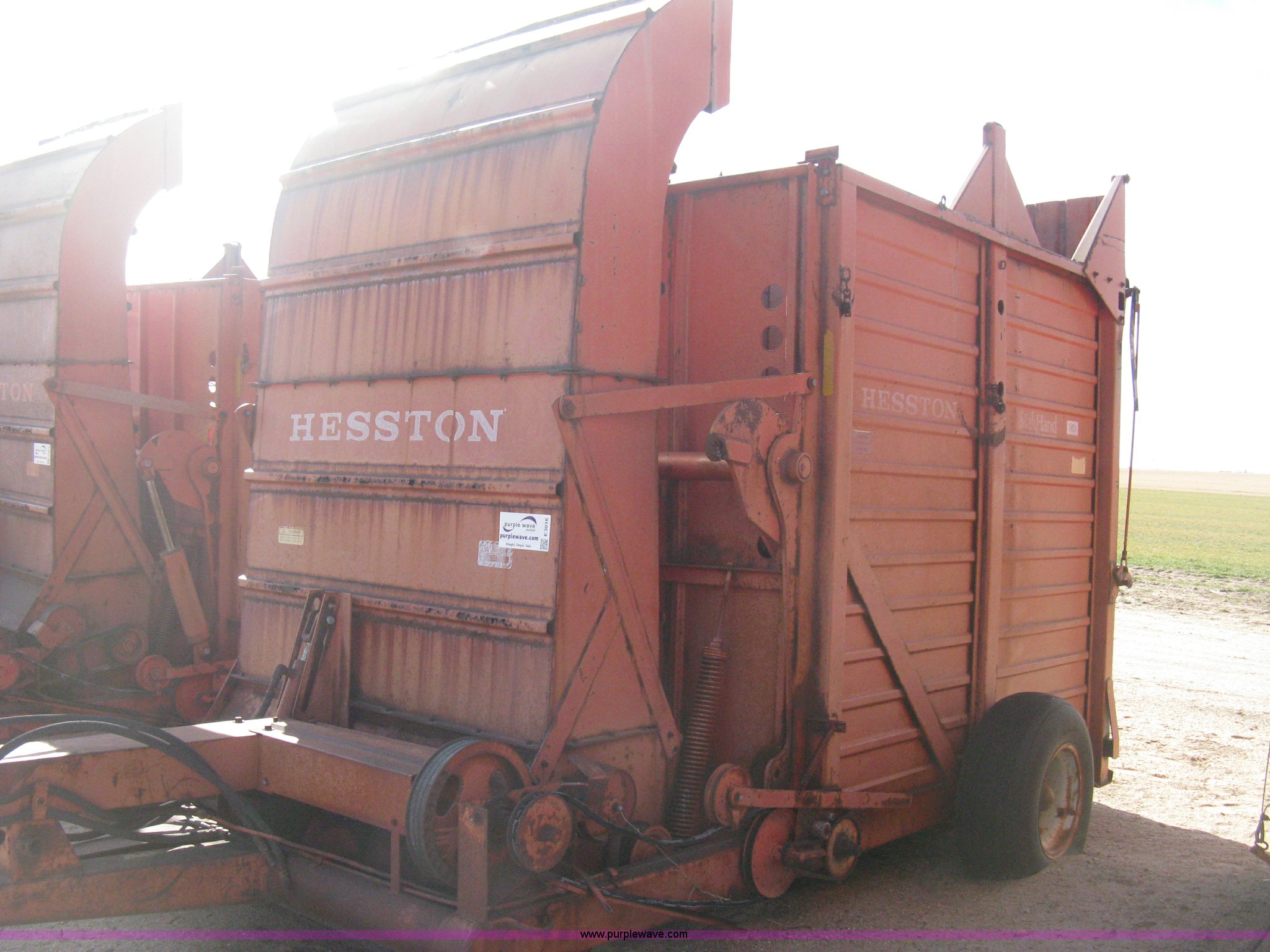 Purple Wave is selling a used Hay Equip. Attach. in Kansas. This item is a Hesston Stakhand 10 with the following: 3,000 lb max load, 60"W pickup chute, Hydraulic and PTO driven, 15" tires, Flat/damaged, Damaged hydraulic hoses, No PTO end shaft, Drive belts damaged, Rust damage to floor, Operating condition unknown