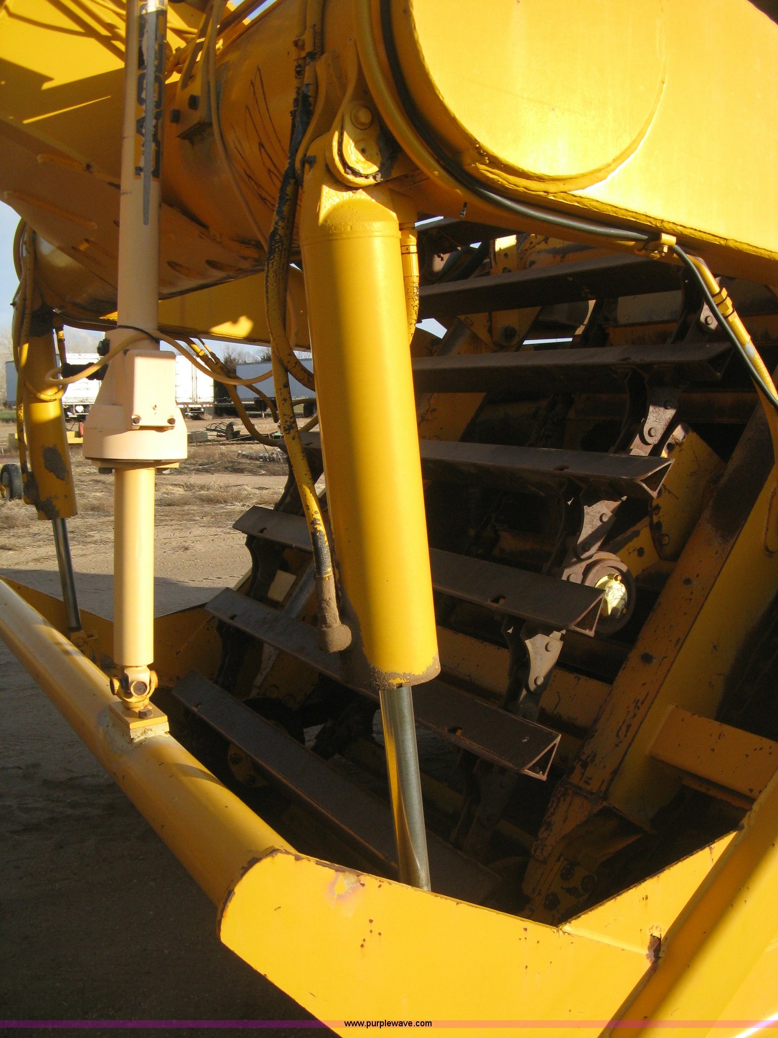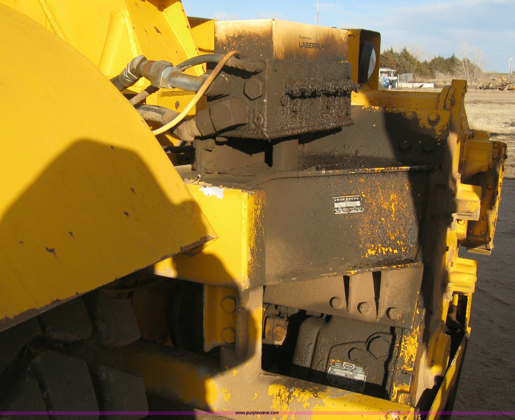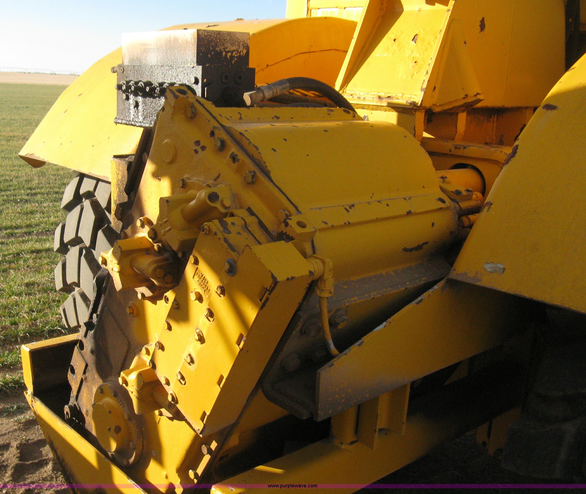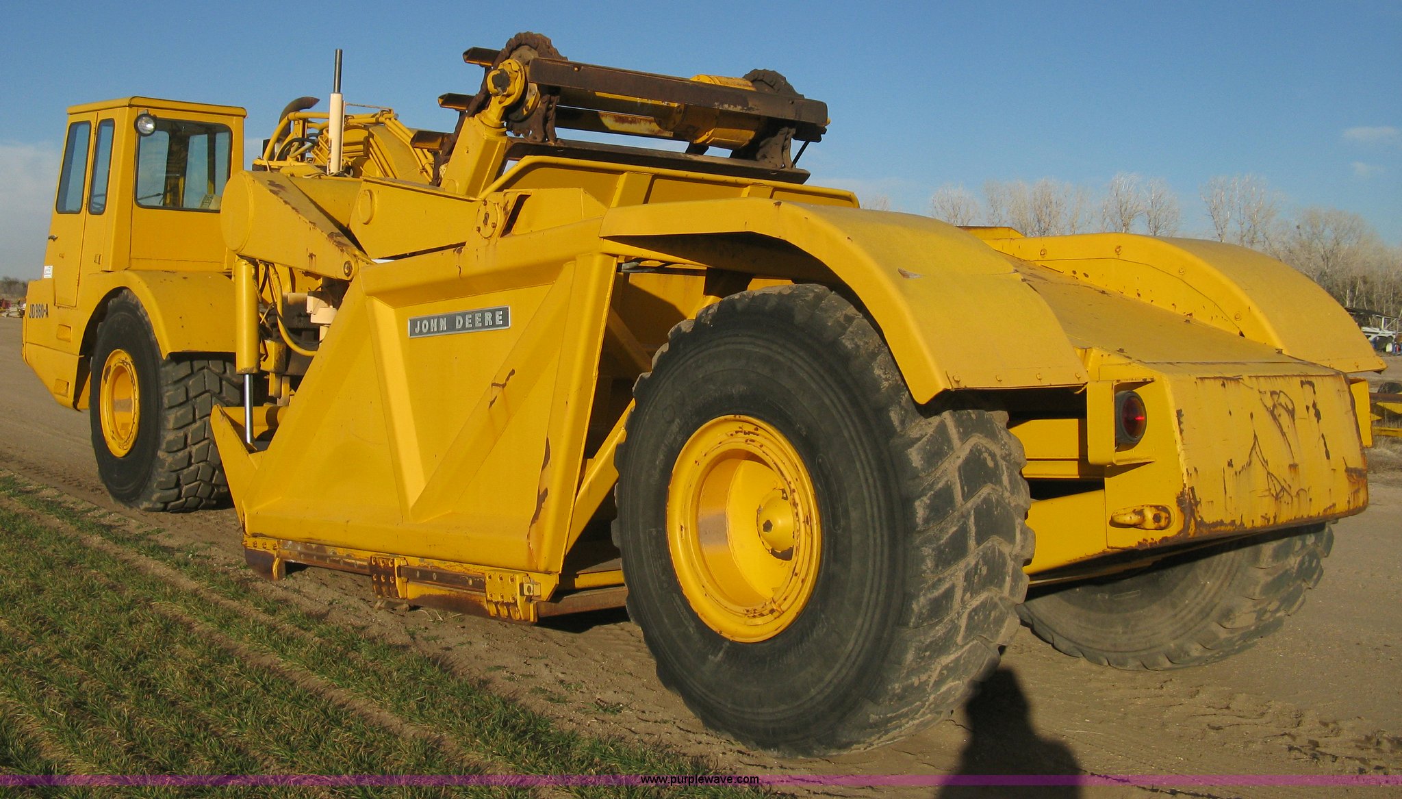 Purple Wave is selling a used Conventional Scraper in Kansas. This item is a 1974 John Deere 860A scraper with the following: Hours unknown, Detroit Diesel six cylinder diesel engine, 215 HP, Five speed powershift transmission, One speed reverse, Differential lock, Torque converter with lockup, Power steering, 15 cu. yd. bowl, Heavy duty reversing elevator, Hydraulic load ejection, Bridgestone V-steel K-traction radial, 26.5R25 tires, Cracked windshield, 45,535 lbs. base operating weight, Serial 001400T