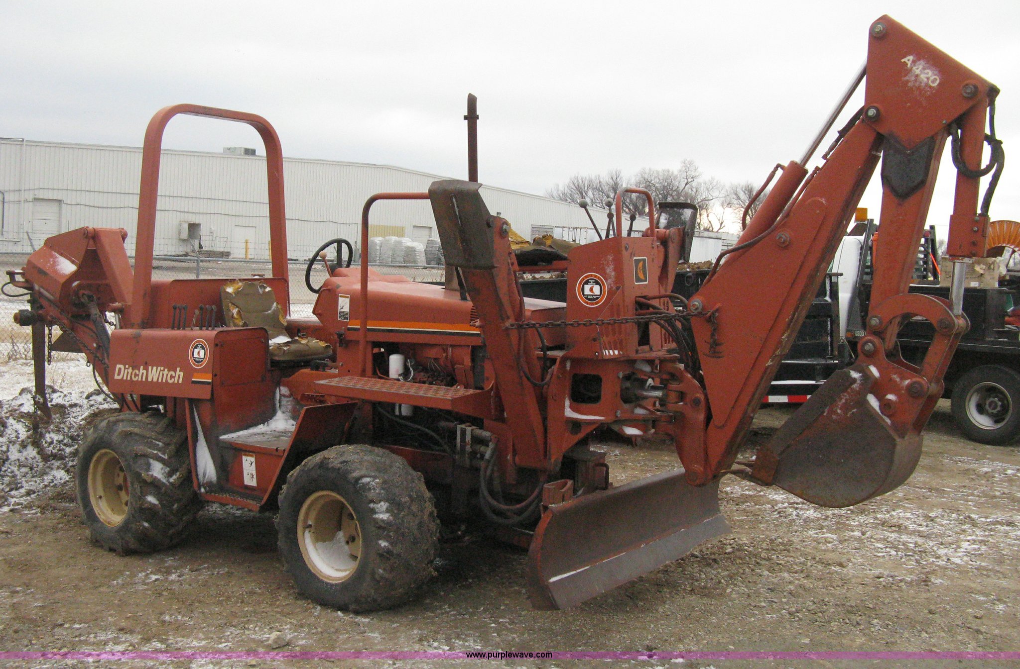 1992 Ditch Witch 5110 trencher. 6,884 hours on meter, Model 5110DD, Three cylinder diesel engine, Four speed transmission, Four wheel drive, Right angle drive, Ditch Witch A420 backhoe attachment 18" toothed bucket, Hydraulic outriggers with dirt pads, 6' push blade, Serial 1J1208, Ditch Witch A430 vibratory plow 24" feed blade, 31x15.50-15NHS tires, Serial 5J0318. View equipment video. Shipping quotes available. Becker Construction. 100 W 61st St N. Wichita, KS 67204
