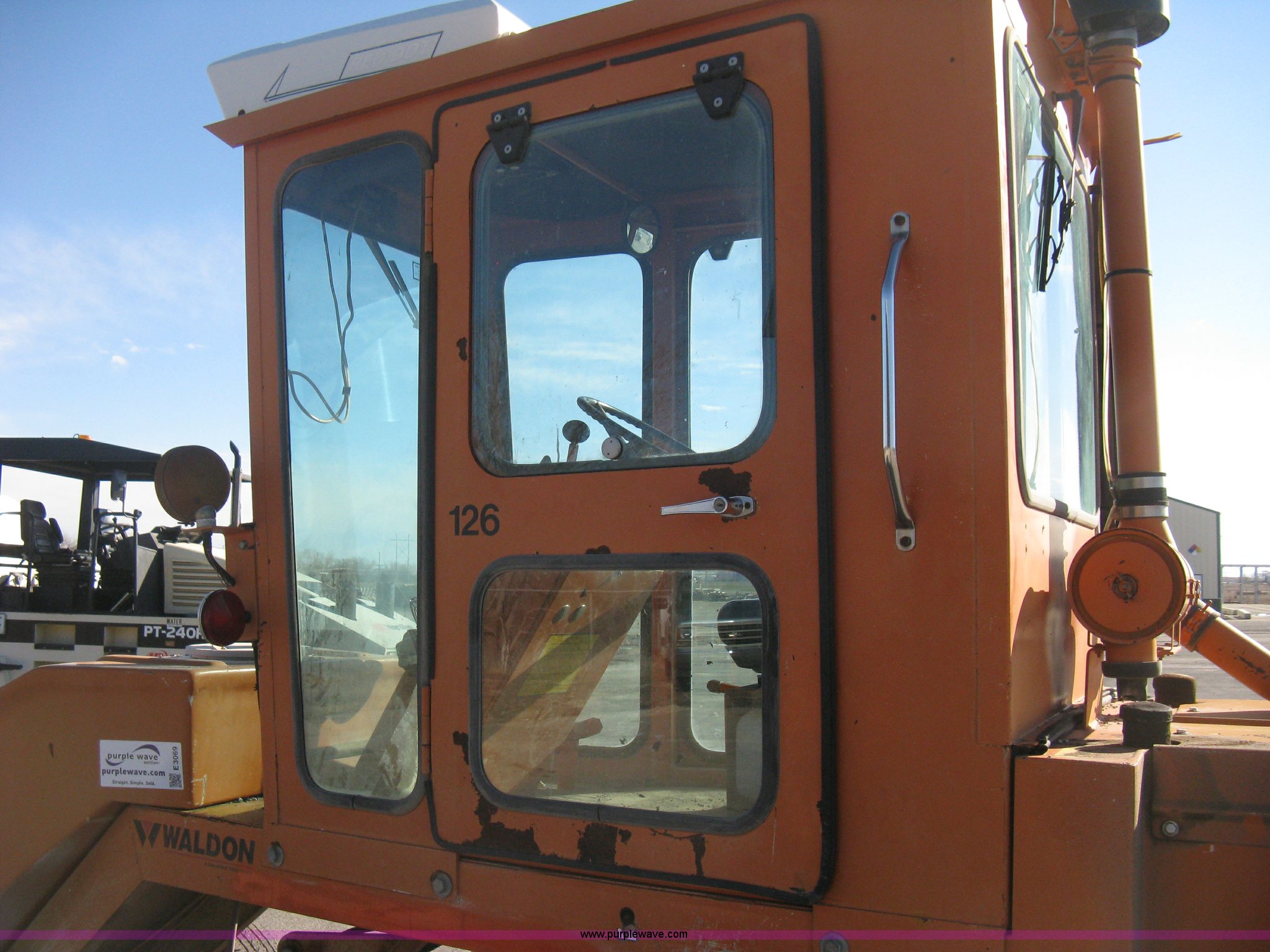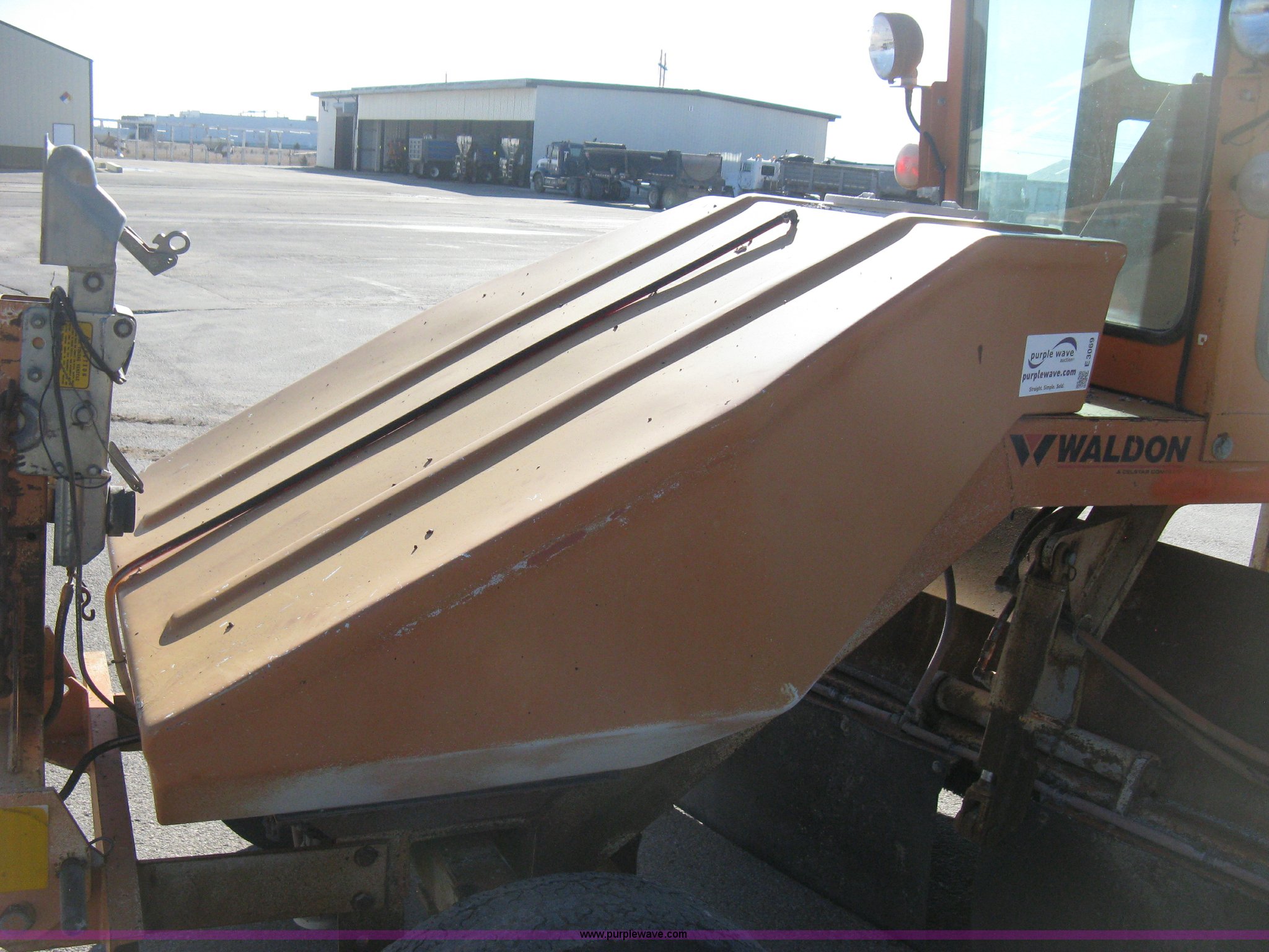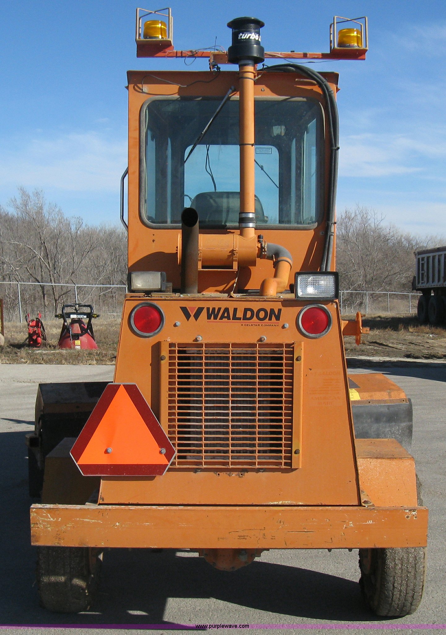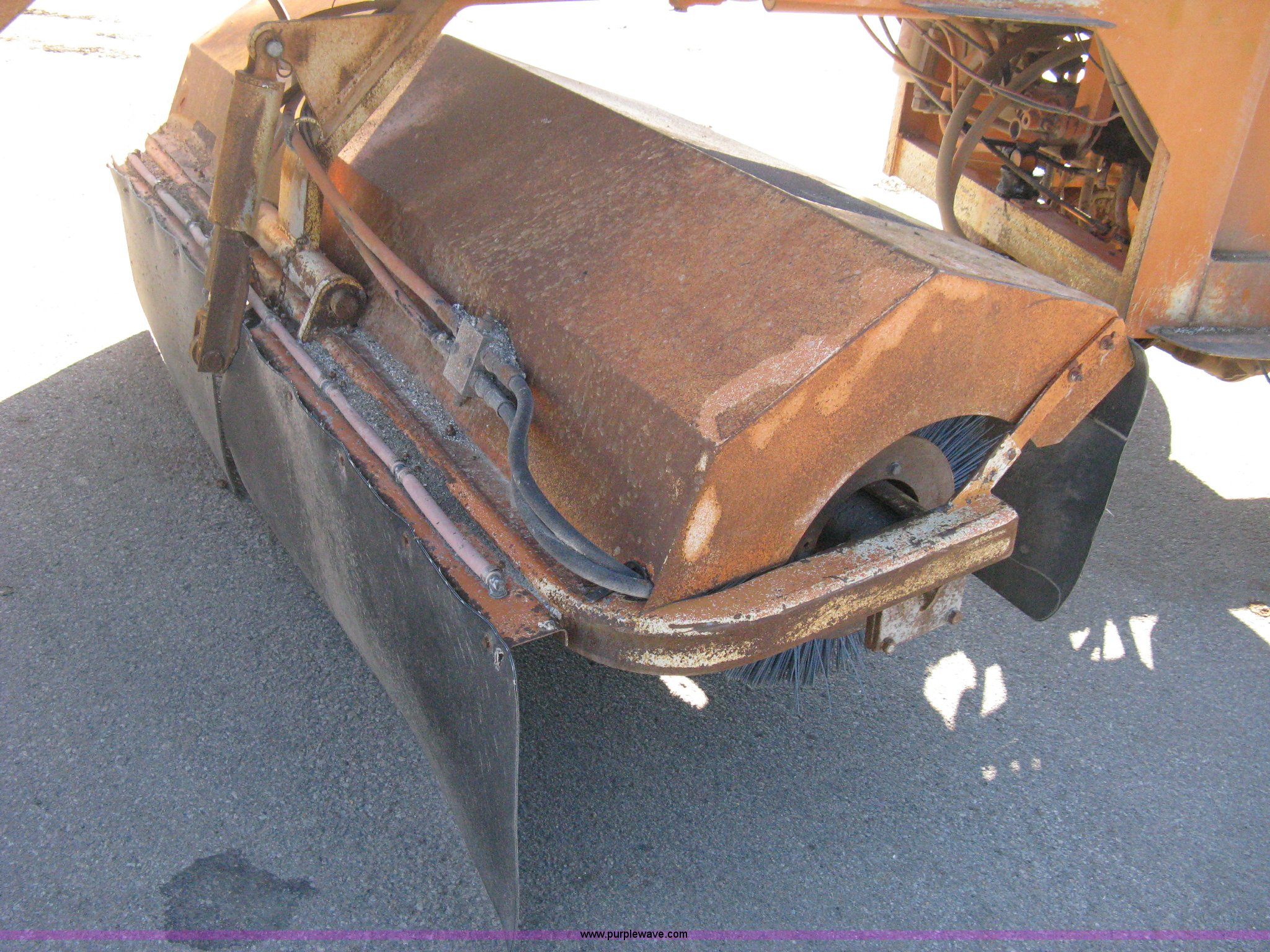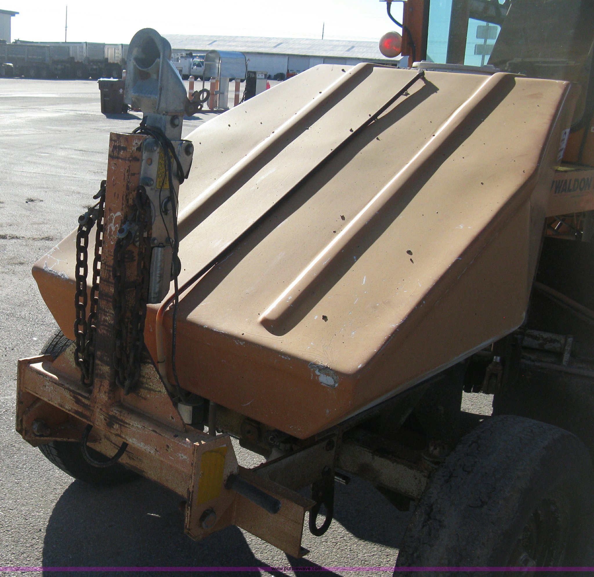 Purple Wave is selling a used Broom in Kansas. This item is a 1996 Waldon Sweep Master II broom with the following: 2,666 hours on meter, Cummins 3.9L four cylinder diesel engine, 76 HP, Hydrostatic transmission, Enclosed cab, AC and heat, Work lights, Windshield wipers, Water applicator, 94"W broom housing, Sug-O-Matic six tongue mount brake actuator, Amber caution light, Dive disengages for towing, Front mounted tow tongue, 2 5/16" ball hitch, P225/70R15 tires, Serial 24861-002