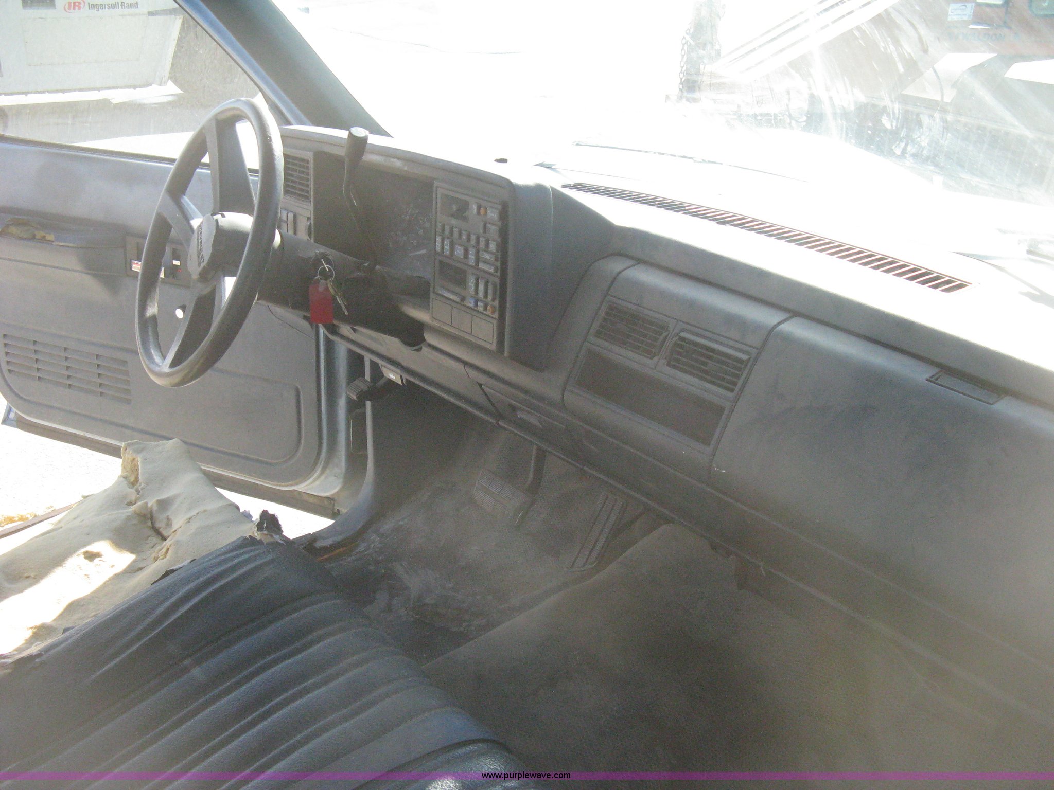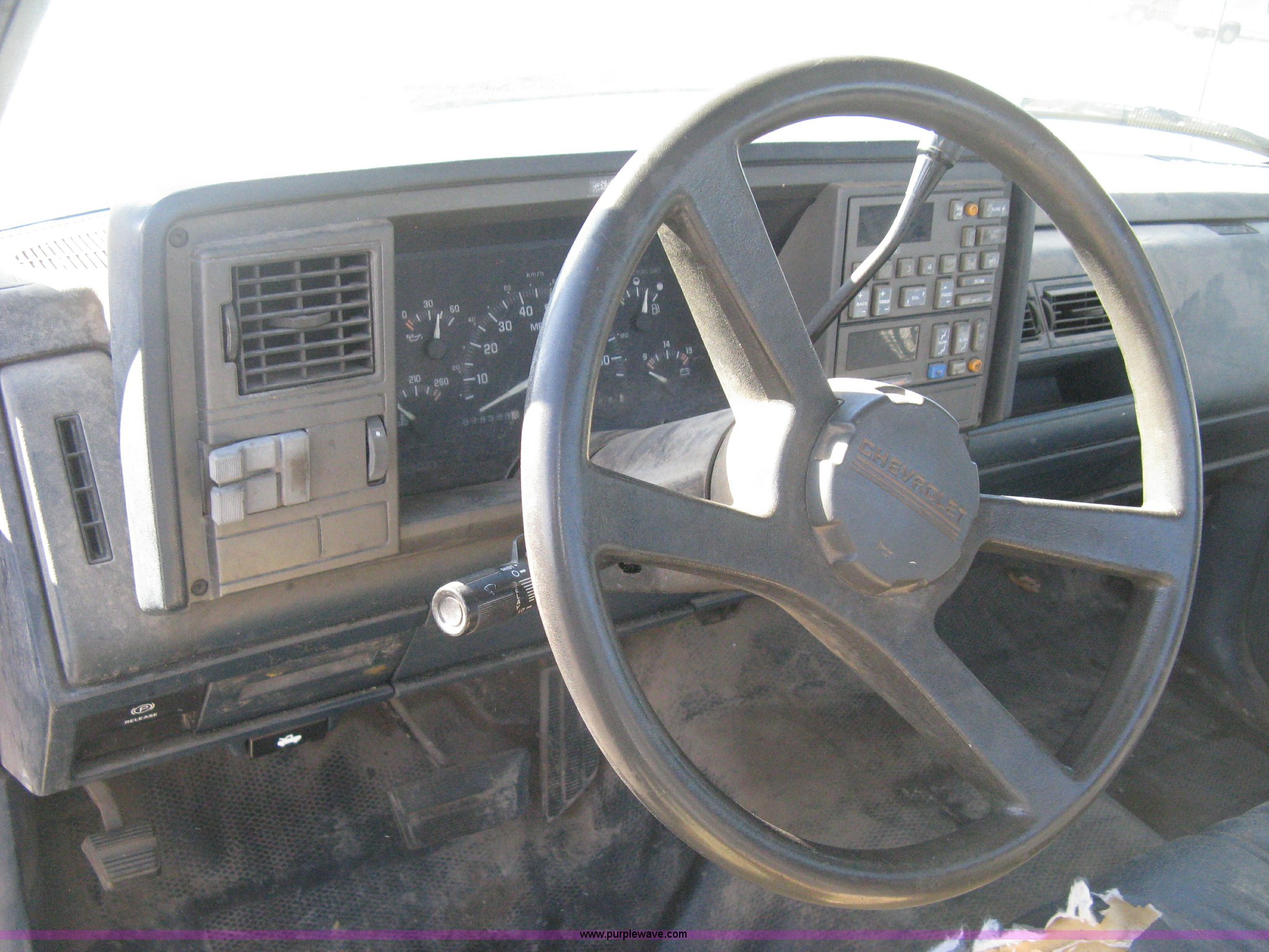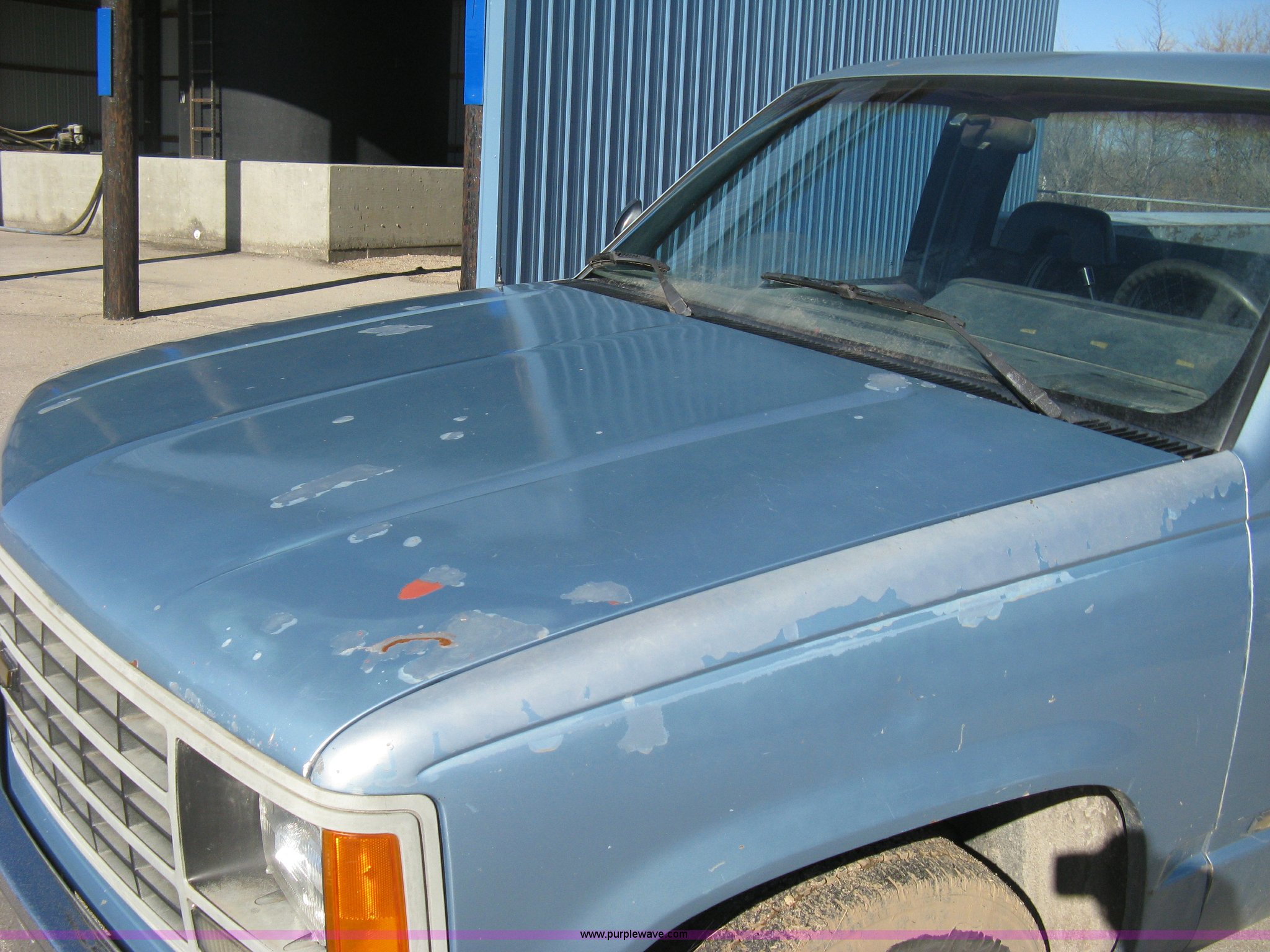 Purple Wave is selling a used Passenger Vehicle in Kansas. This item is a 1992 Chevrolet Cheyenne 2500 utility truck with the following: 78,383 actual miles, 5.0L V8 OHV 16V gas engine, Automatic transmission, AC and heat, AM/FM, Manual windows and locks, Vinyl interior, Stahl utility bed, 8'L x 78.5"W, (6) side tool cabinets, Diamond plate bed, Some rust damage, Step up bumper, Receiver hitch, Trailer wiring, LT225/75R16 tires, Radiator leak, Intake gasket leak, Paint peeling, Rust, Hole in floor board, Interior cosmetic damage