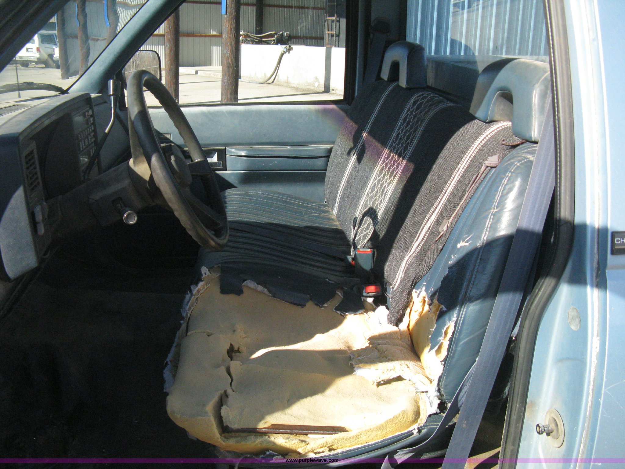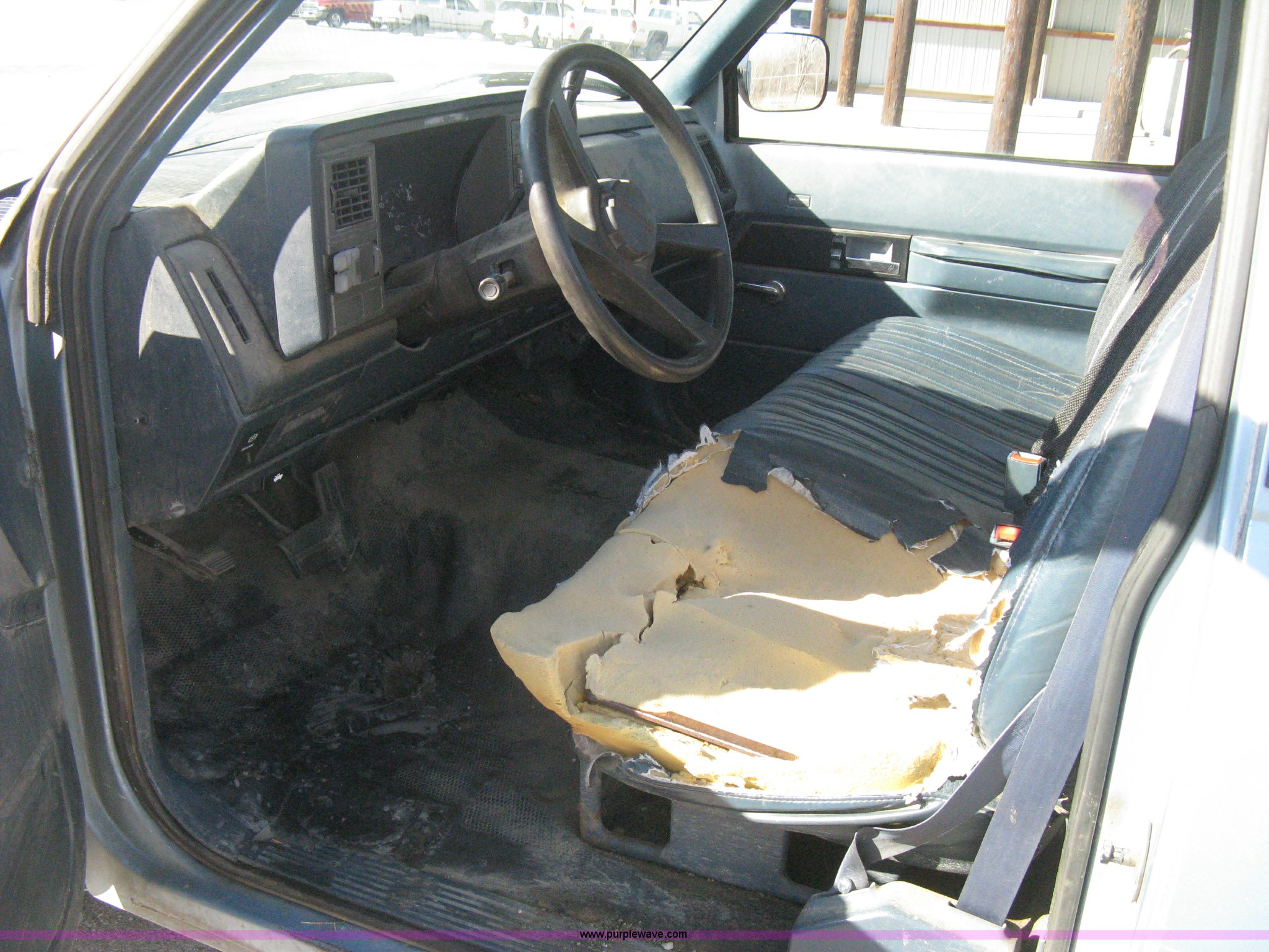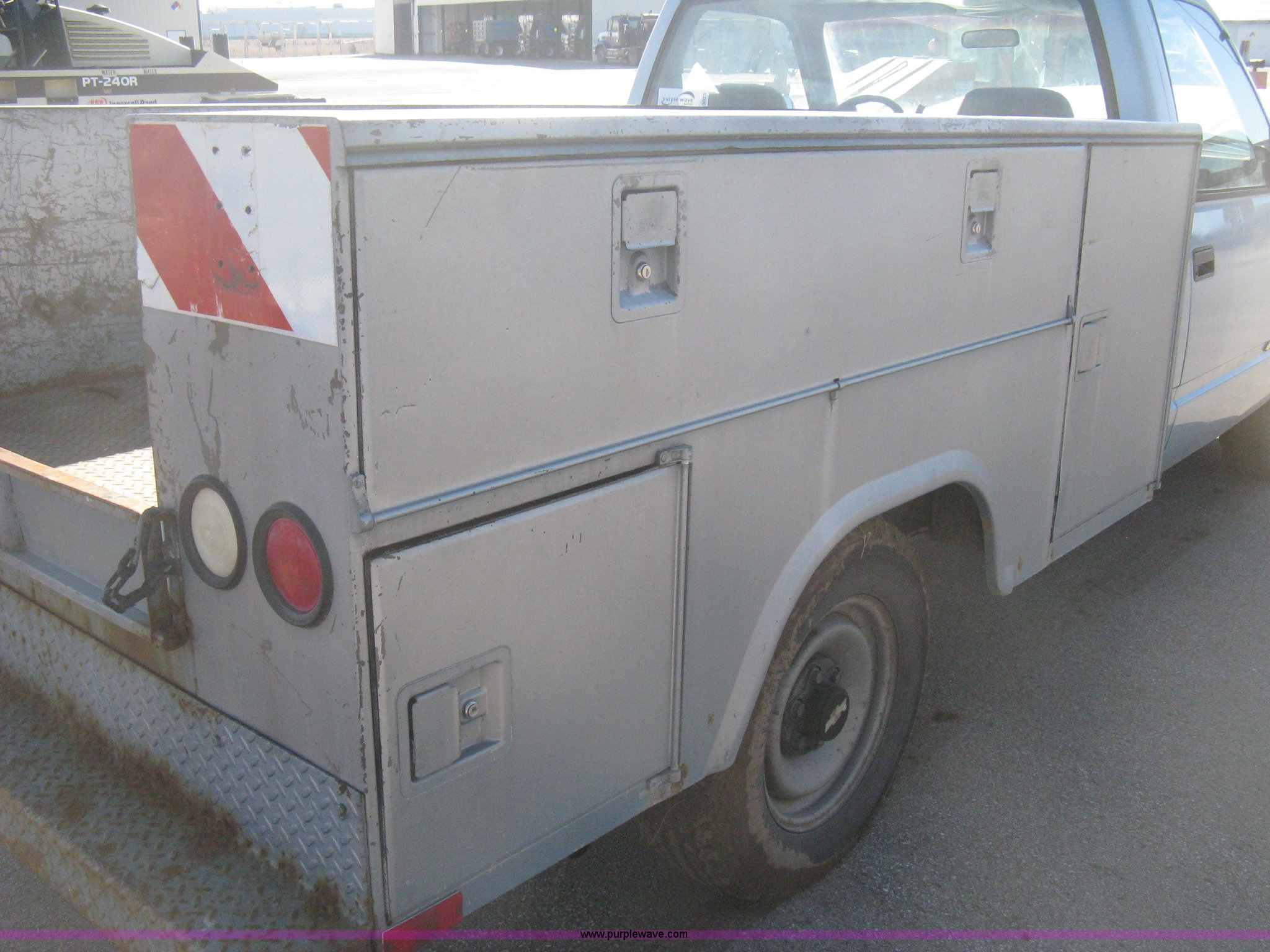 Purple Wave is selling a used Passenger Vehicle in Kansas. This item is a 1992 Chevrolet Cheyenne 2500 utility truck with the following: 78,383 actual miles, 5.0L V8 OHV 16V gas engine, Automatic transmission, AC and heat, AM/FM, Manual windows and locks, Vinyl interior, Stahl utility bed, 8'L x 78.5"W, (6) side tool cabinets, Diamond plate bed, Some rust damage, Step up bumper, Receiver hitch, Trailer wiring, LT225/75R16 tires, Radiator leak, Intake gasket leak, Paint peeling, Rust, Hole in floor board, Interior cosmetic damage