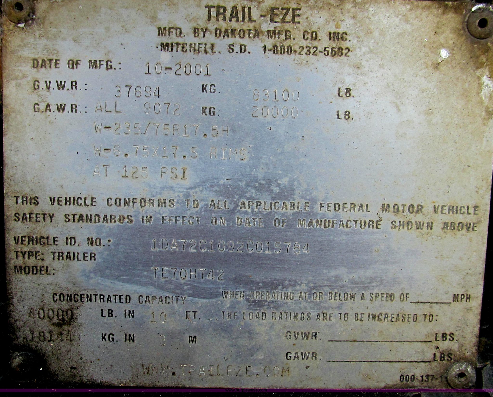 2002 Trail-Eze TE70HT42 trailer has sold in Jefferson City, Missouri for $19250. Item E3721 sold on February 28th, 2013.