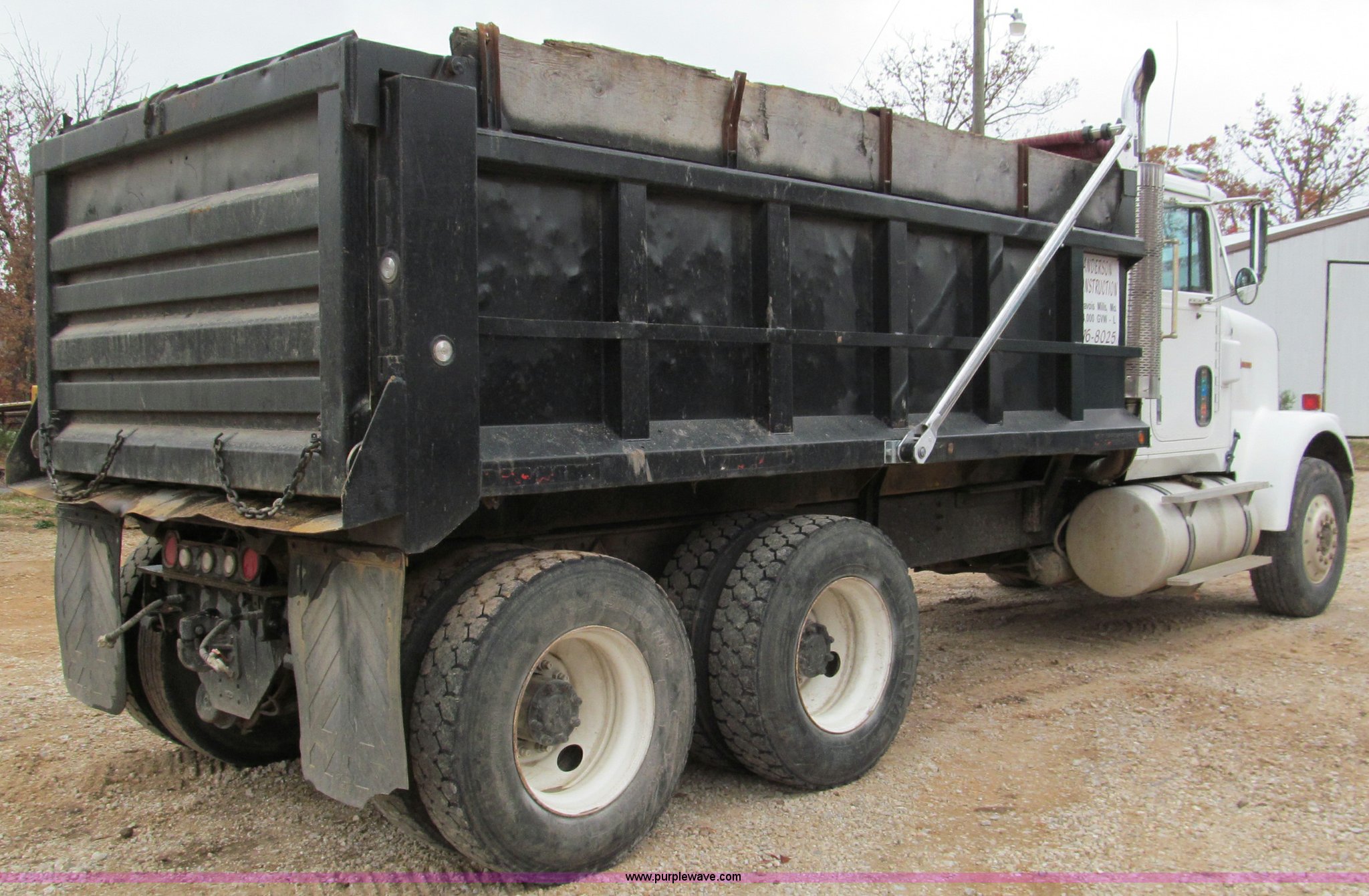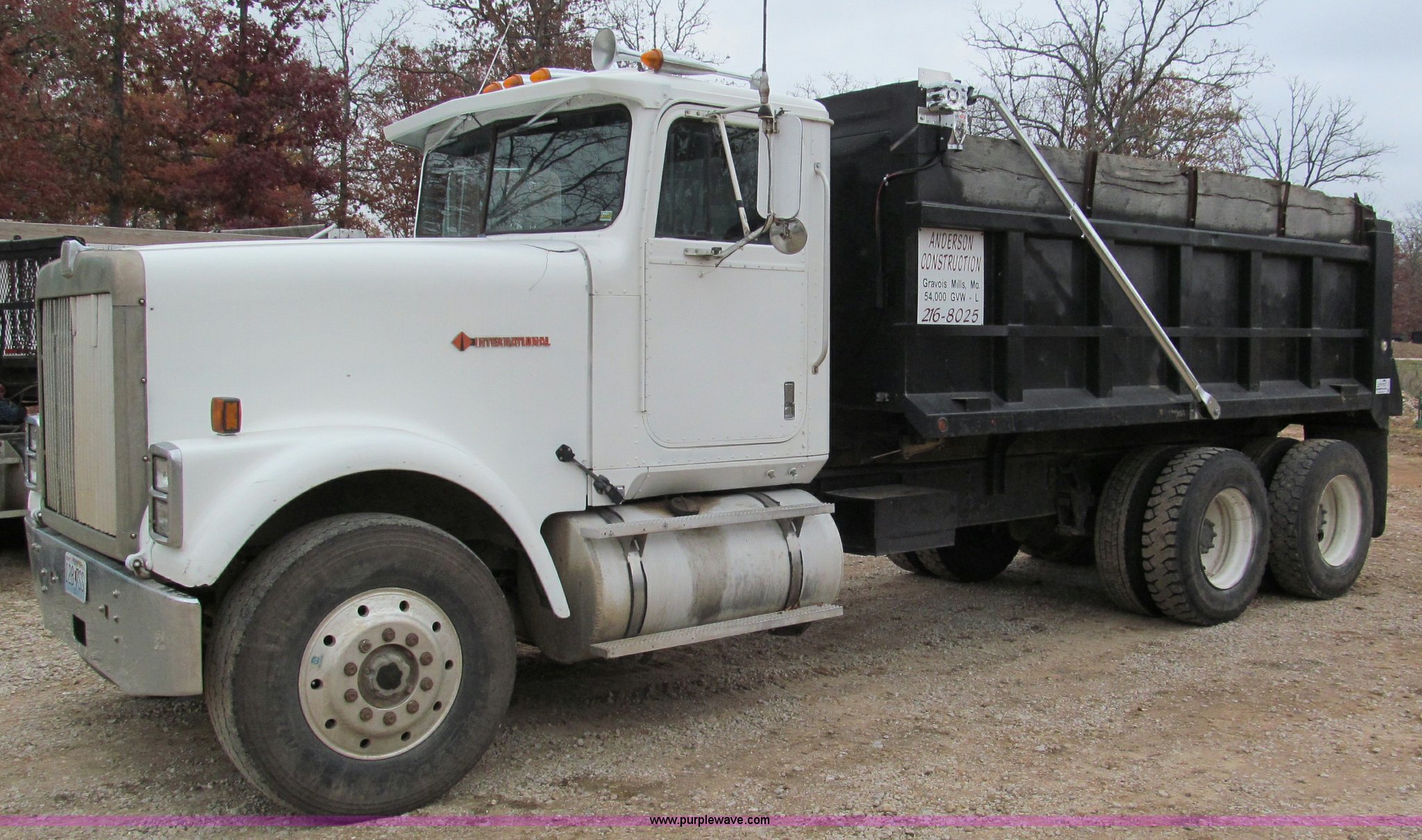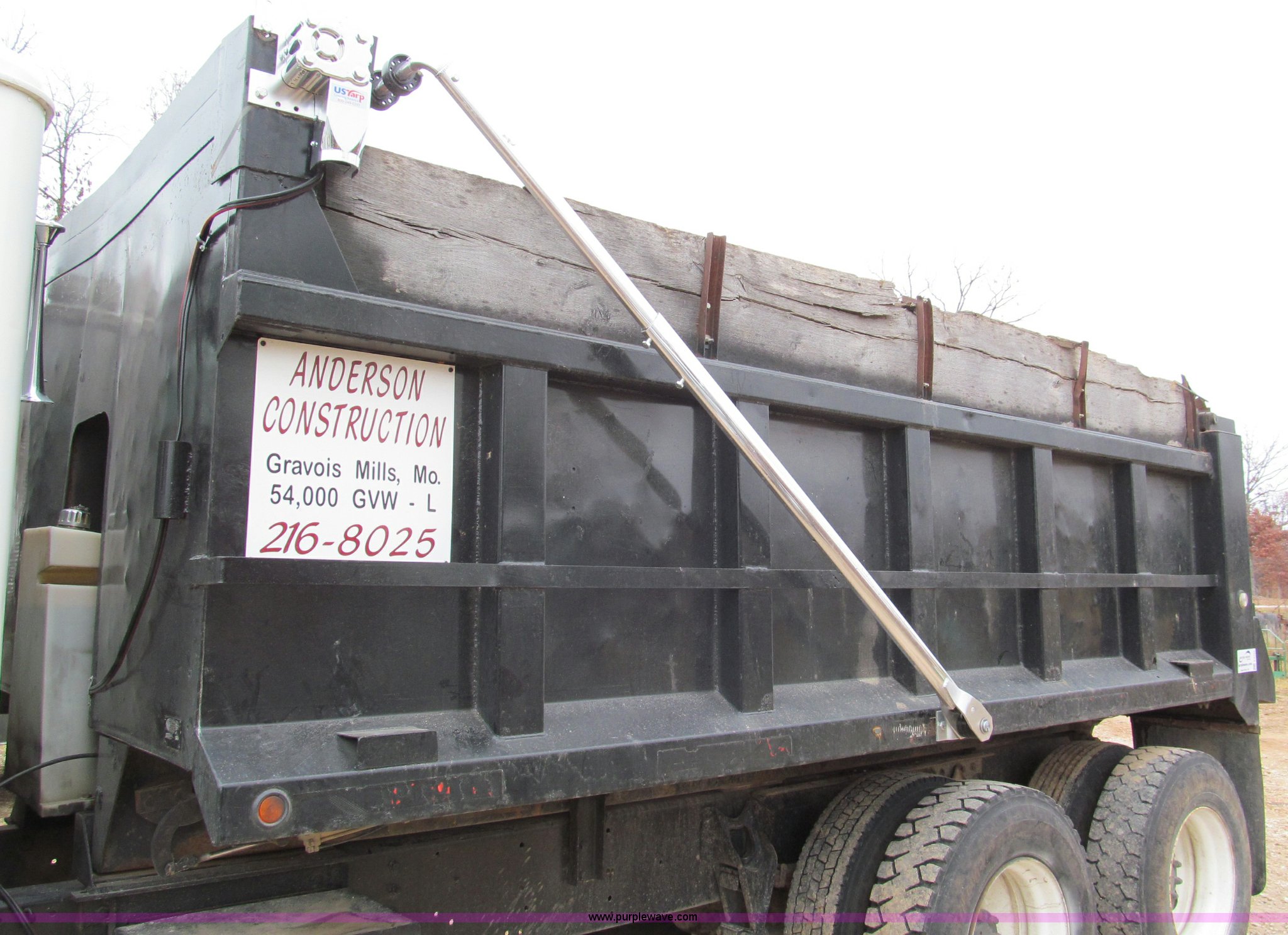 Purple Wave is selling a used Construction Dump Truck in Missouri. This item is a 1988 International 9300 SFA dump truck with the following: Cummins N14 14L L6 diesel engine, Nine speed manual transmission, Twin screw, AC and heat, AM/FM/cassette, Air suspension seat, Passenger daylight door, Exterior visor, Chrome bumper, Heil 15 yard 15'L dump bed, Single ram, Air operated end gate, Dual 75 gallon fuel tanks, Rear air brake hookups, PTO, Air brakes, Jake brake, 228" wheelbase, Aluminum front wheels, 315/80R22.5 front tires, 11R22.5 rear tires, GVWR 54,000 lbs, FAWR 14,000 lbs, IAWR 20,000 lbs, RAWR 20,000 lbs, Pintle hitch and roll over tarp will be removed