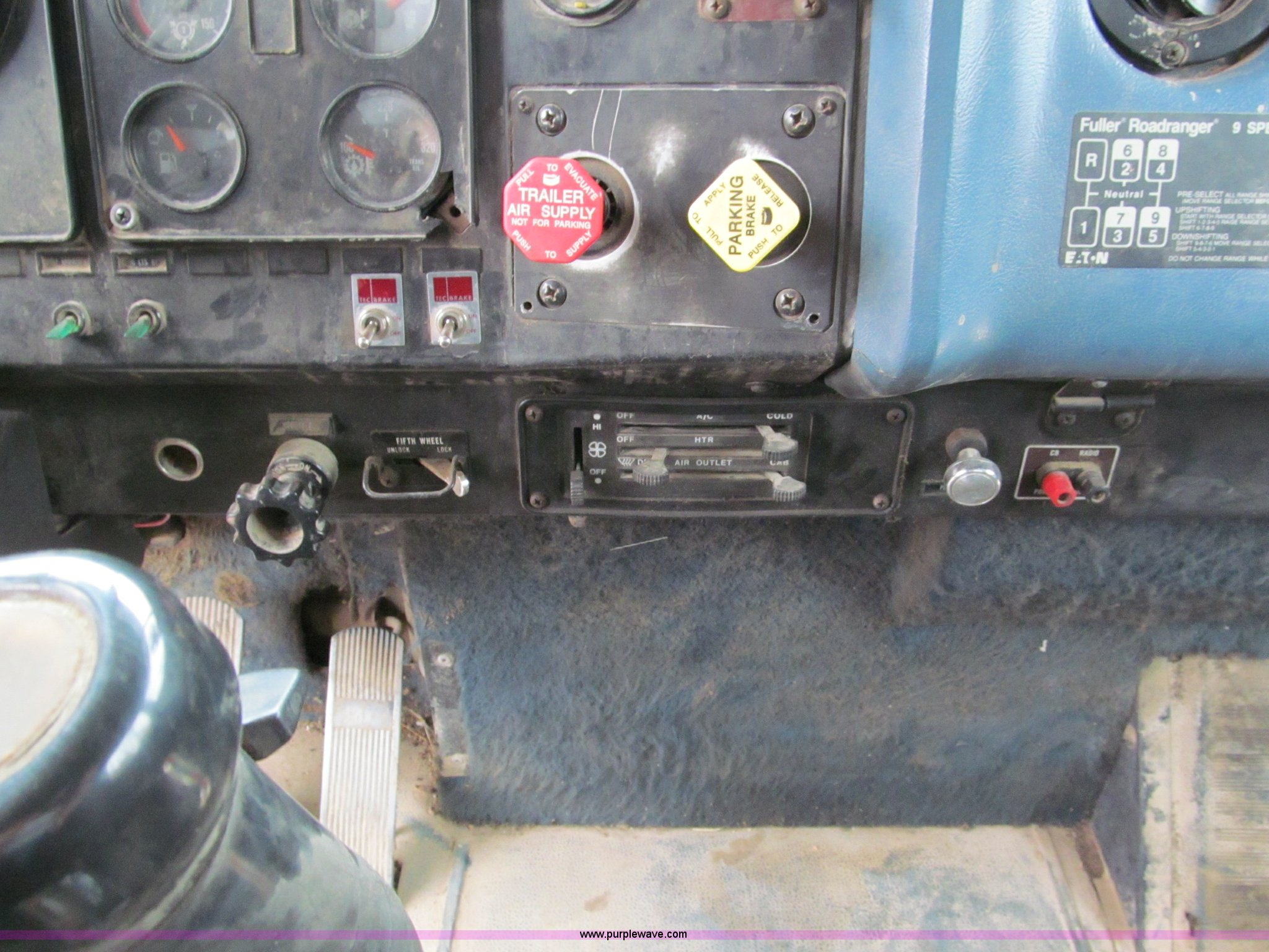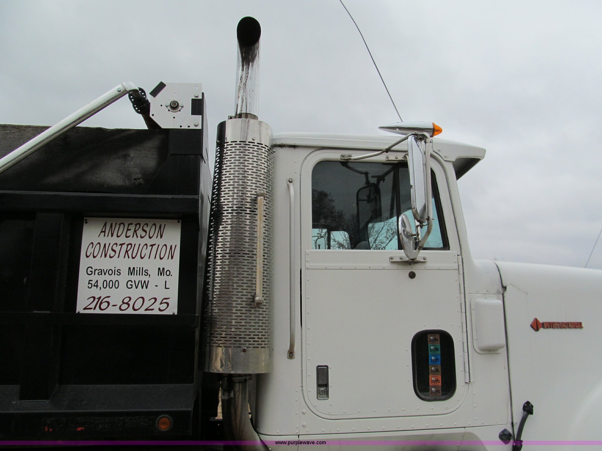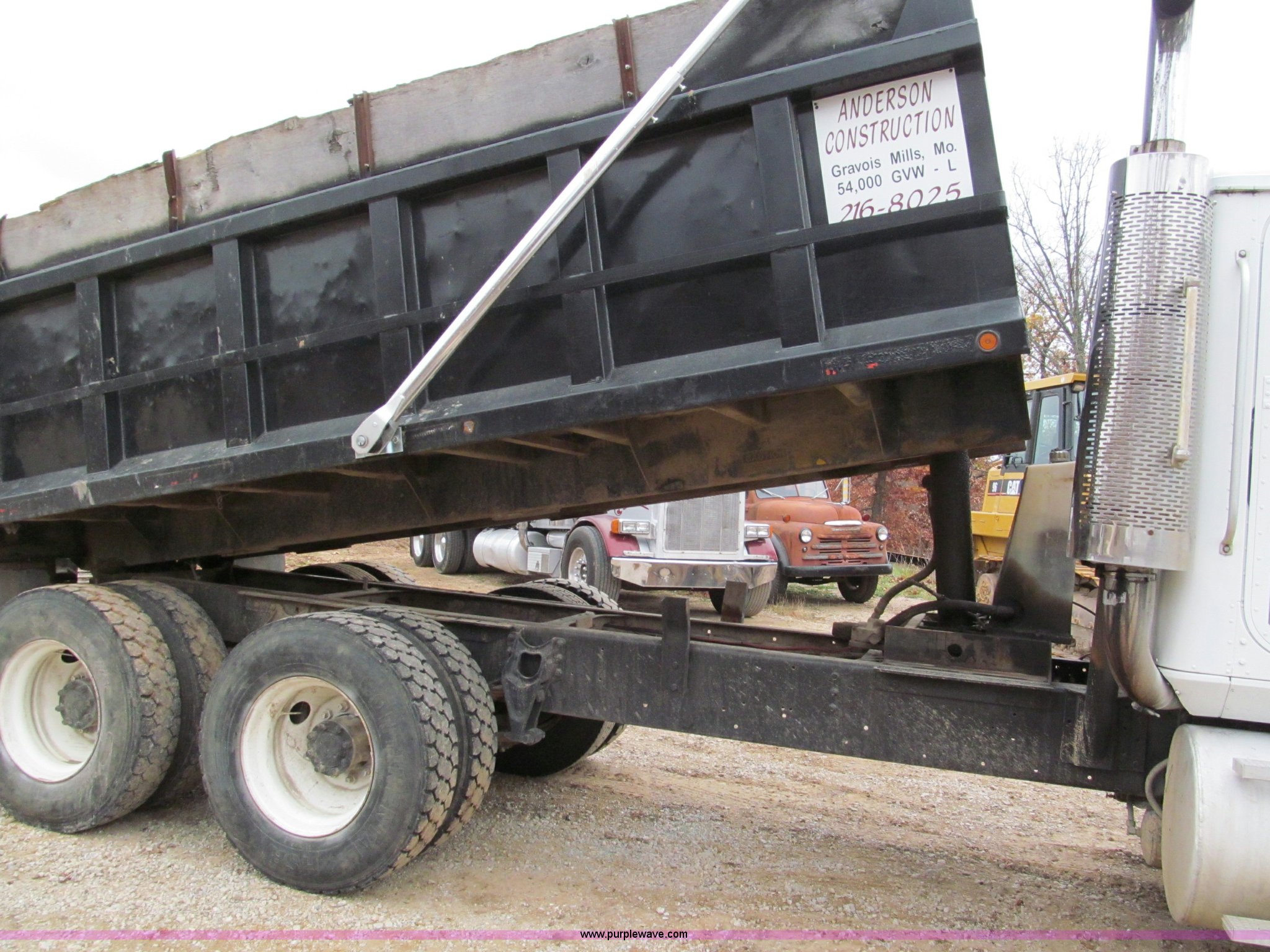 Purple Wave is selling a used Construction Dump Truck in Missouri. This item is a 1988 International 9300 SFA dump truck with the following: Cummins N14 14L L6 diesel engine, Nine speed manual transmission, Twin screw, AC and heat, AM/FM/cassette, Air suspension seat, Passenger daylight door, Exterior visor, Chrome bumper, Heil 15 yard 15'L dump bed, Single ram, Air operated end gate, Dual 75 gallon fuel tanks, Rear air brake hookups, PTO, Air brakes, Jake brake, 228" wheelbase, Aluminum front wheels, 315/80R22.5 front tires, 11R22.5 rear tires, GVWR 54,000 lbs, FAWR 14,000 lbs, IAWR 20,000 lbs, RAWR 20,000 lbs, Pintle hitch and roll over tarp will be removed