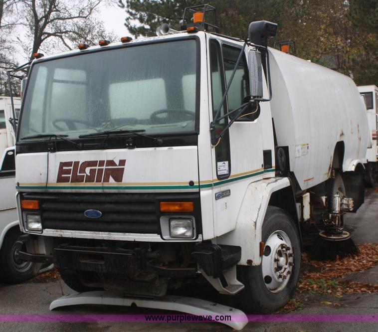 Purple Wave is selling a used Street Sweeper Truck in Kansas. This item is a 1993 Ford Cargo 700 Elgin street sweeper with the following: 50,696 miles on odometer, 9,083 hours on meter, Six cylinder diesel engine, Automatic transmission, Air brakes, 11R22.5 tires, Parts only, Has not ran in four years