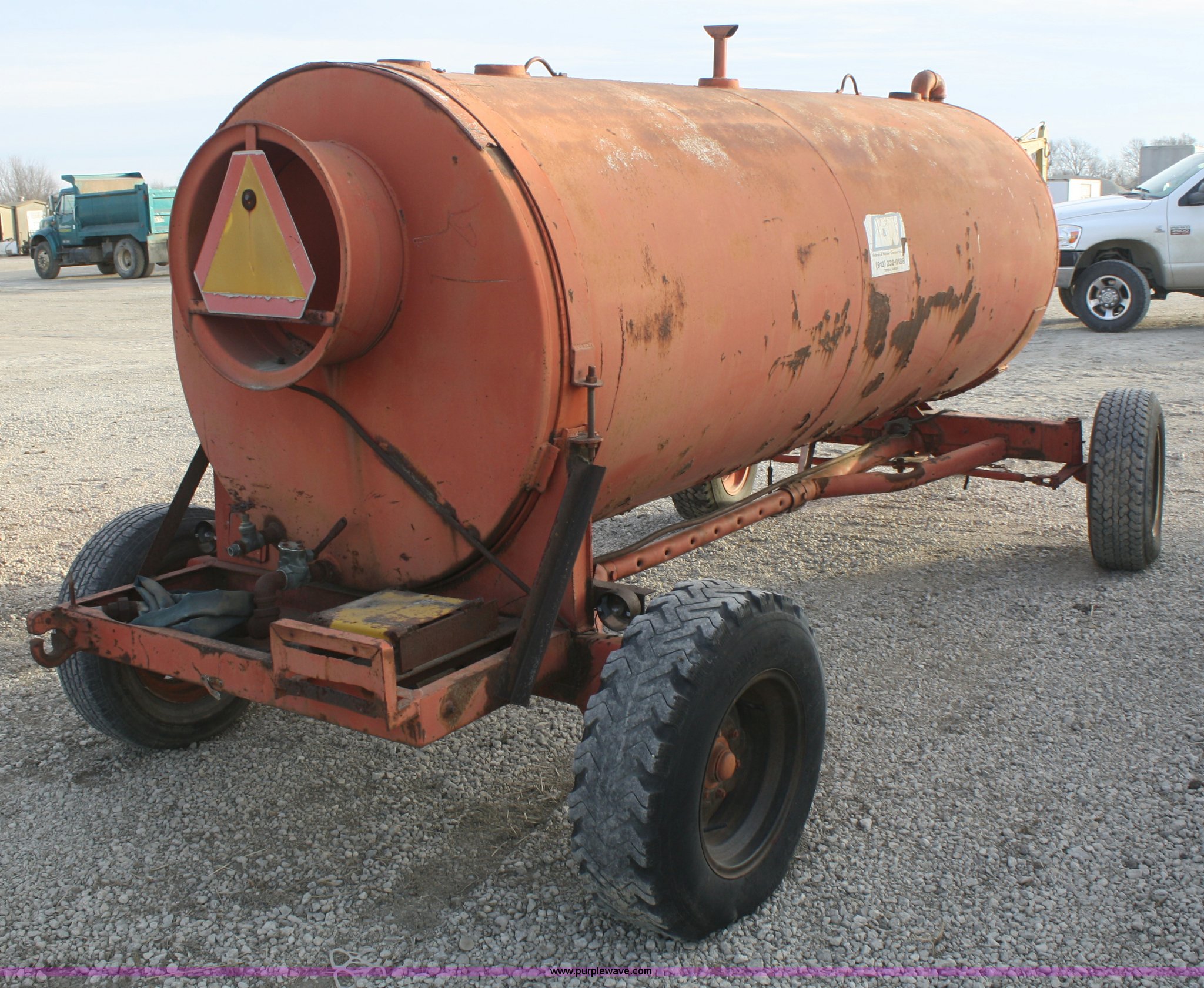 1,000 gallon water tank on running gear has sold in Topeka, Kansas for $522.50. Item F2847 sold on February 28th, 2013.