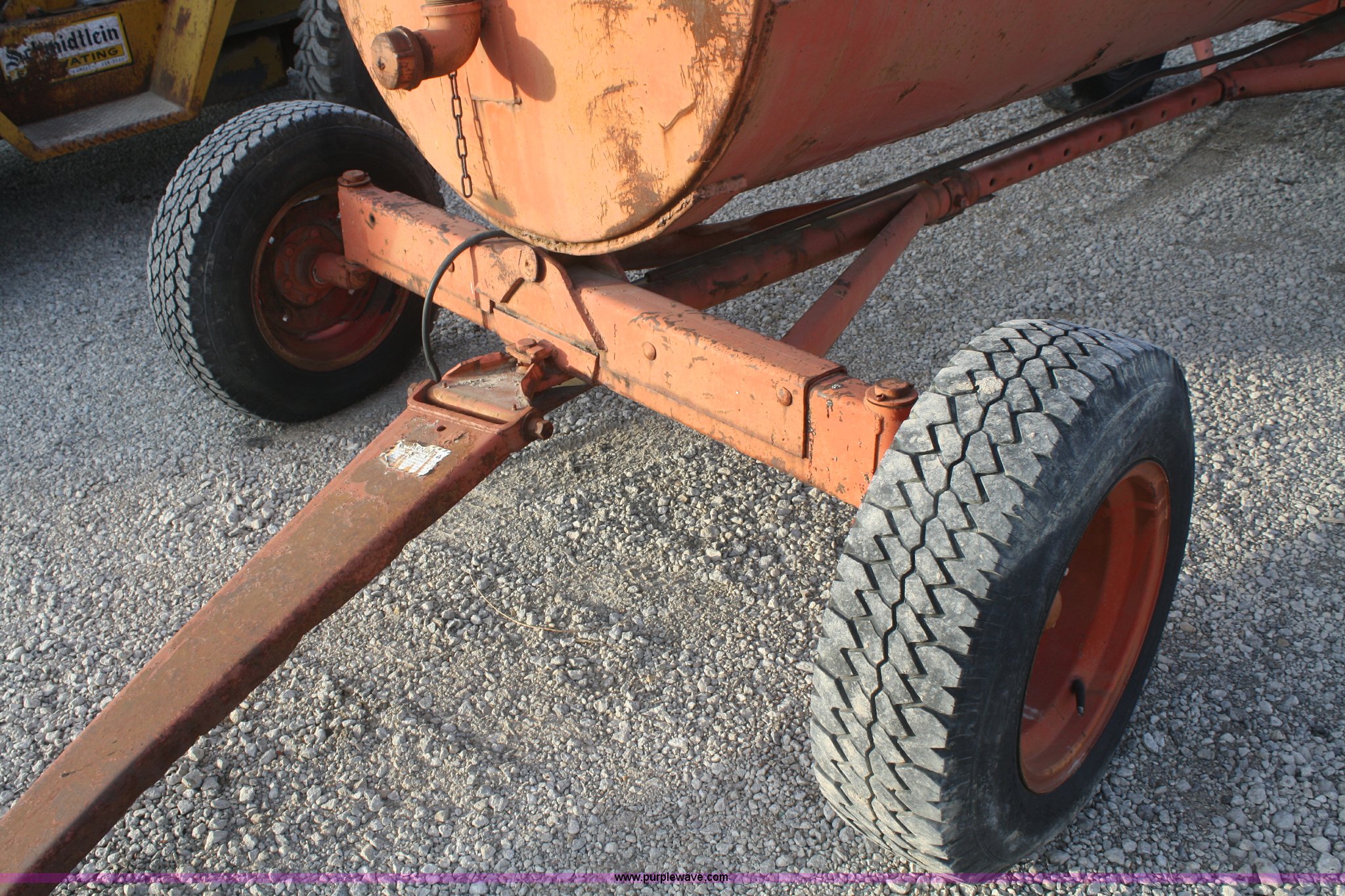 1,000 gallon water tank on running gear. Shipping quotes available. Schmidtlein Excavating. 204 NE Rice Rd. Topeka, KS 66616