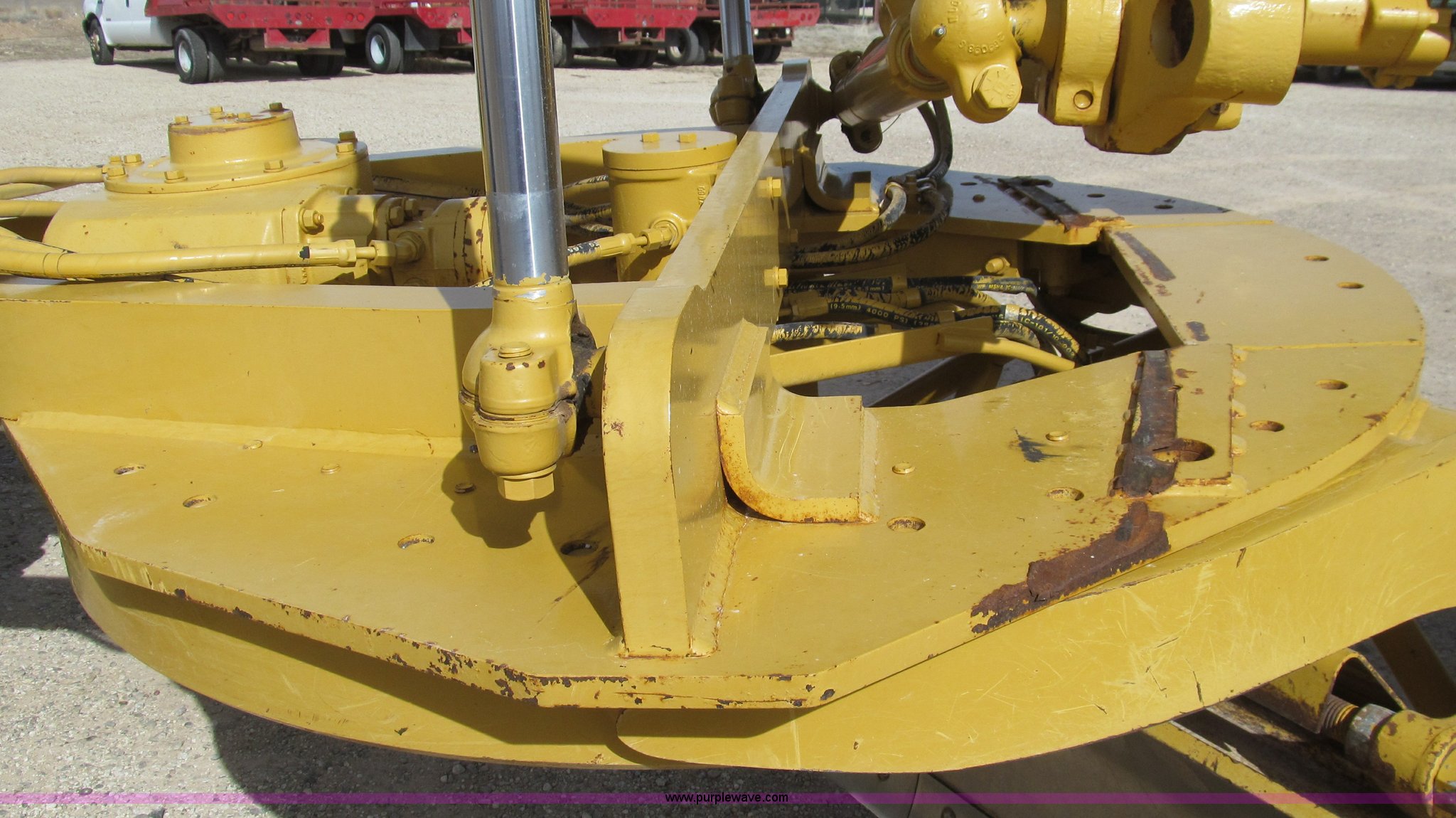 Purple Wave is selling a used Motor Grader in Texas. This item is a 2002 Caterpillar 140H motor grader with the following: 4,830 actual hours, Caterpillar 3176C DITA ATAAC variable horsepower six cylinder diesel engine, 165 HP gears 1-2, 185 HP gears 3-8, Direct drive powershift transmission, 8F-6R gears, 20 degree articulation, 24.6' turning radius, AC and heat with pressurizer, AM/FM/cassette, Air ride seat, Tach and speed gauges, Lower and upper front and rear windows, Windshield wipers, Defroster pan, Low profile cab, 24V to 12V converter with 12V outlet, Lighting system, Cab mounted directional headlights, Front and rear work lights, 14'W x 24"H moldboard, 7/8" thick, 26" right side shift, 20.6" left side shift, Rear ripper, (3) shanks, 105 gallon fuel capacity, Multi-piece rims, Serial CAT014HE9TN01244