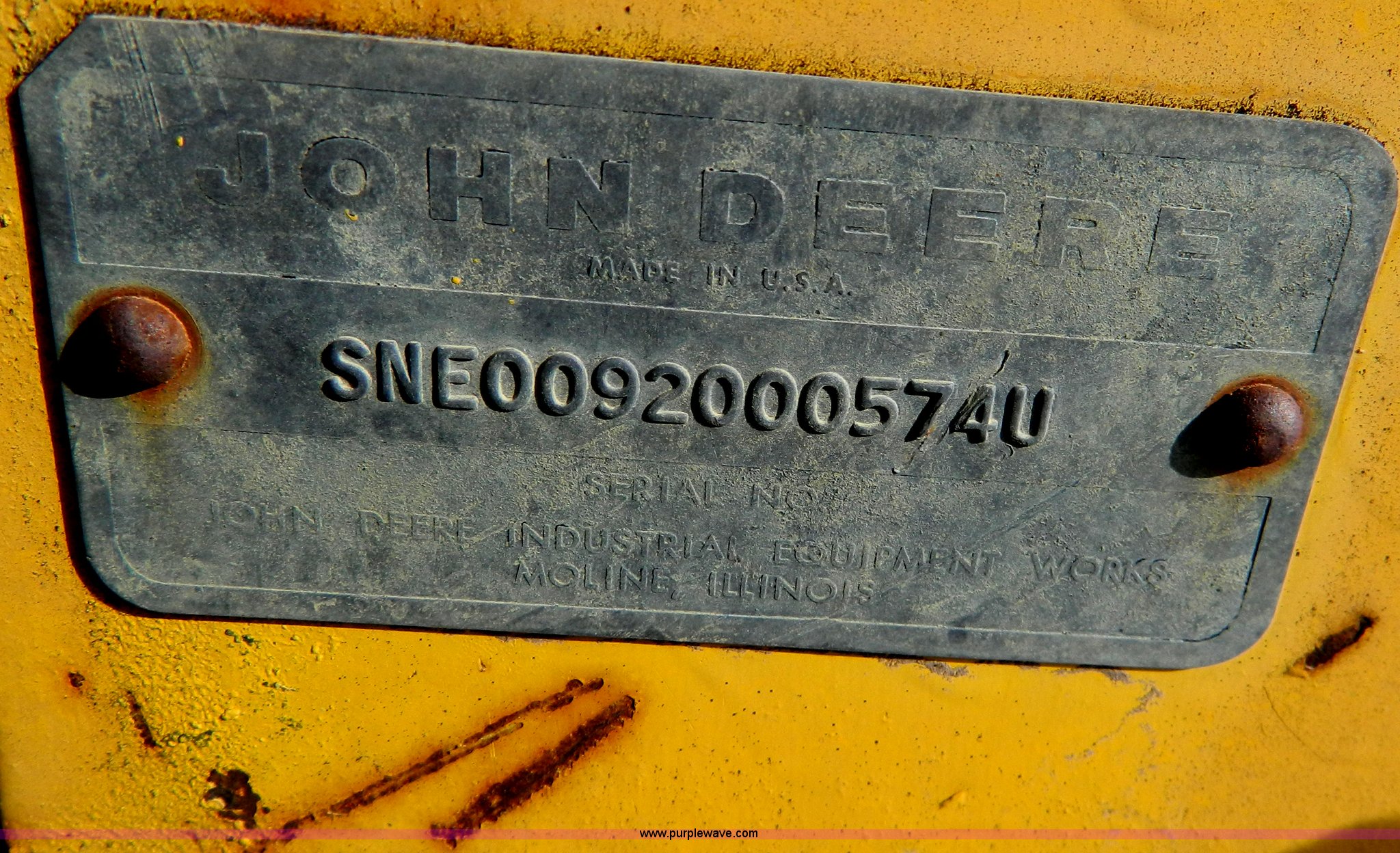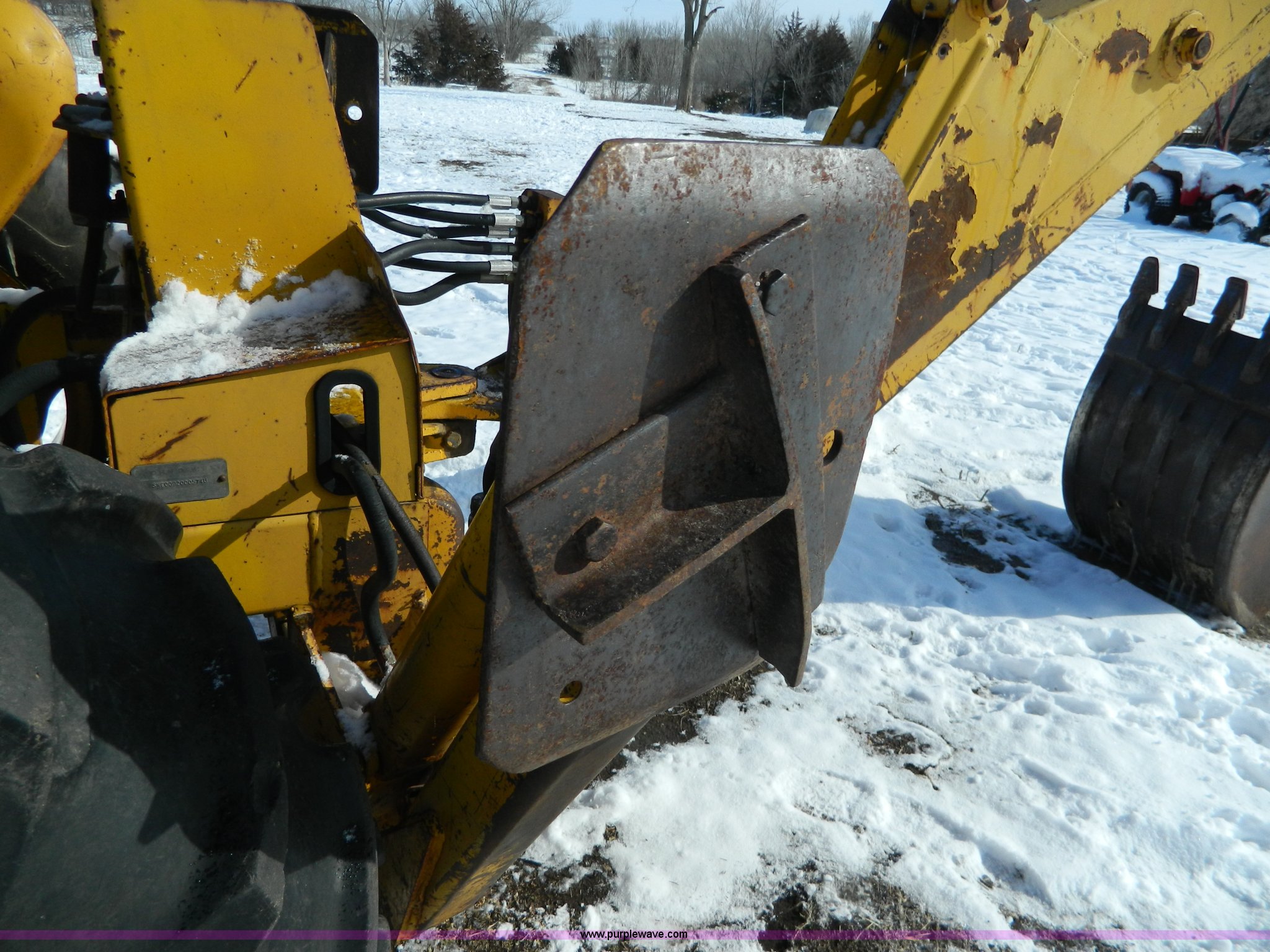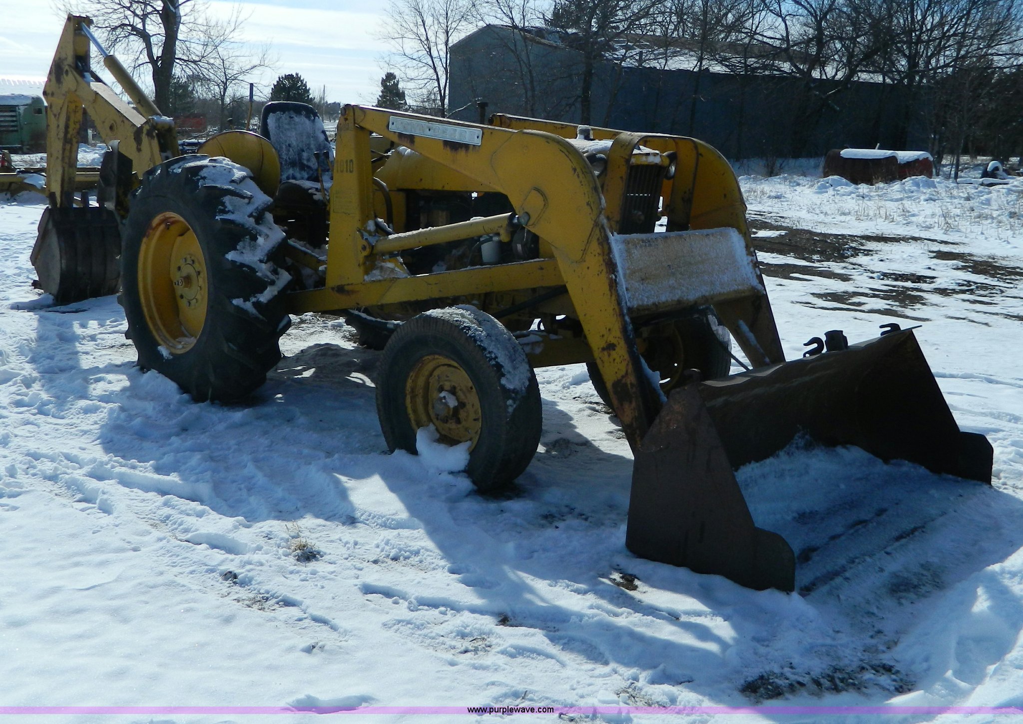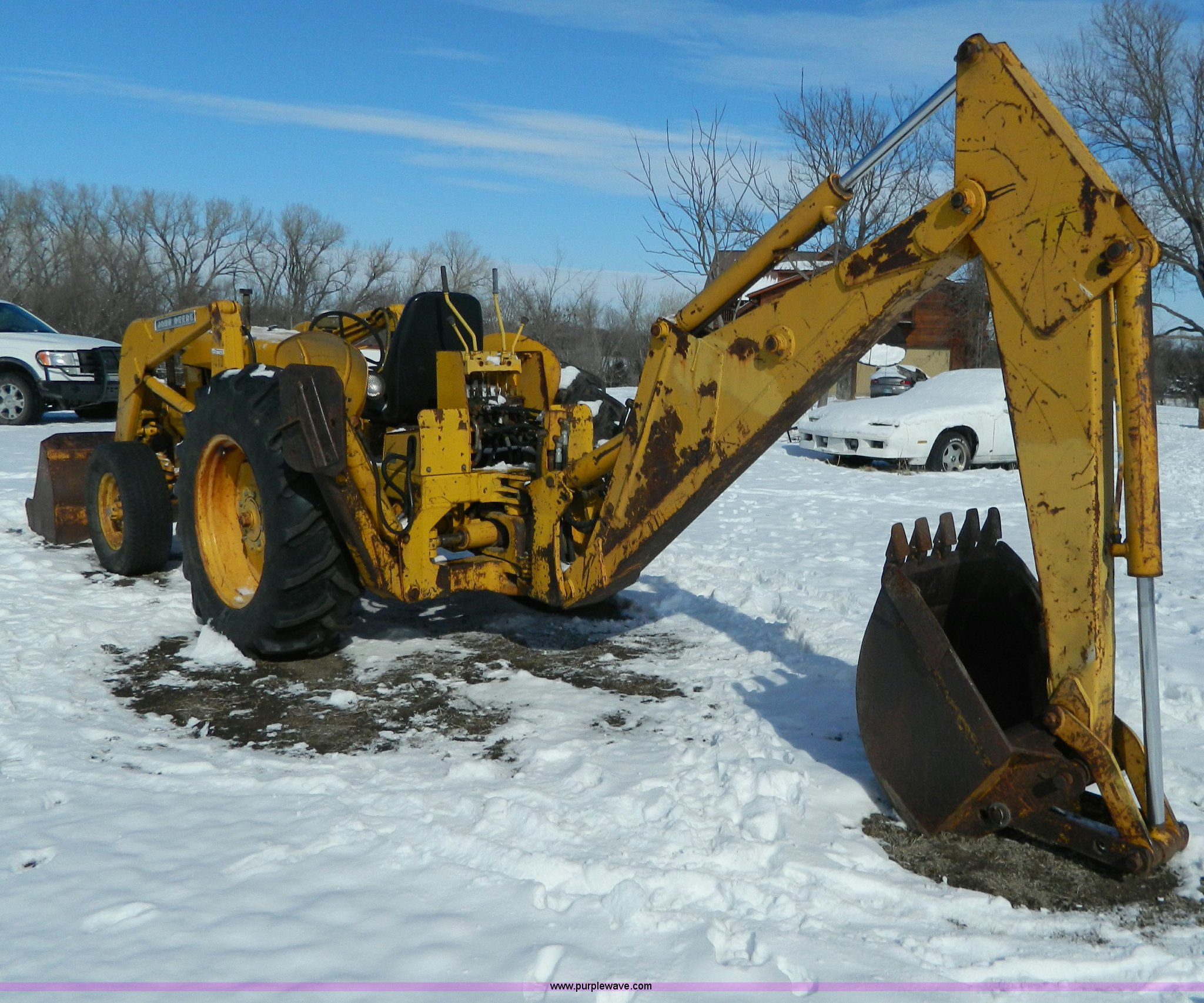 Purple Wave is selling a used Tractor Loader Backhoe in Kansas. This item is a John Deere 1010 backhoe with the following: 6,249 hours on meter, Four cylinder gas engine, Manual transmission, 5F-1R gears, Two lever loader control, Four lever backhoe control, 64" loader bucket, 24" backhoe bucket, Steel outrigger pads, LT265/75R15 front tires, 14.9-28 rear tires, Cosmetic damage, Needs muffler, Backhoe serial SNE0092000574U, Loader serial SNE0710003975U, Serial 56699