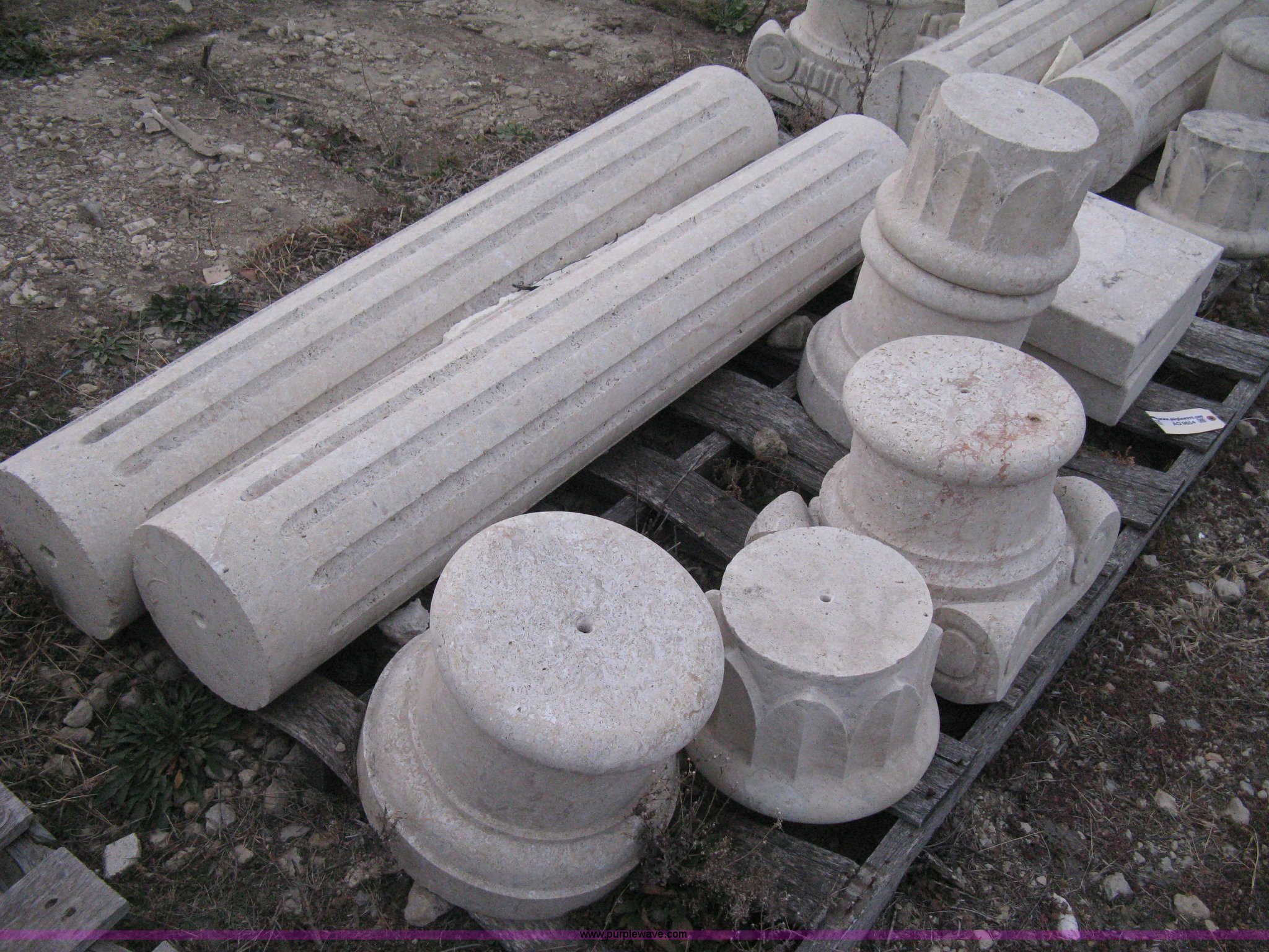 Purple Wave is selling a used Lawn and Garden in Kansas. This item is a Set of 2 Mediterranean natural stone carved columns with the following: Each column is 90" in length and has a 15 1/2" X 15 1/2 square base, 9 1/2" round body, 13" X 13" capital, You have the option to take out a section(s) to obtain the desired height.