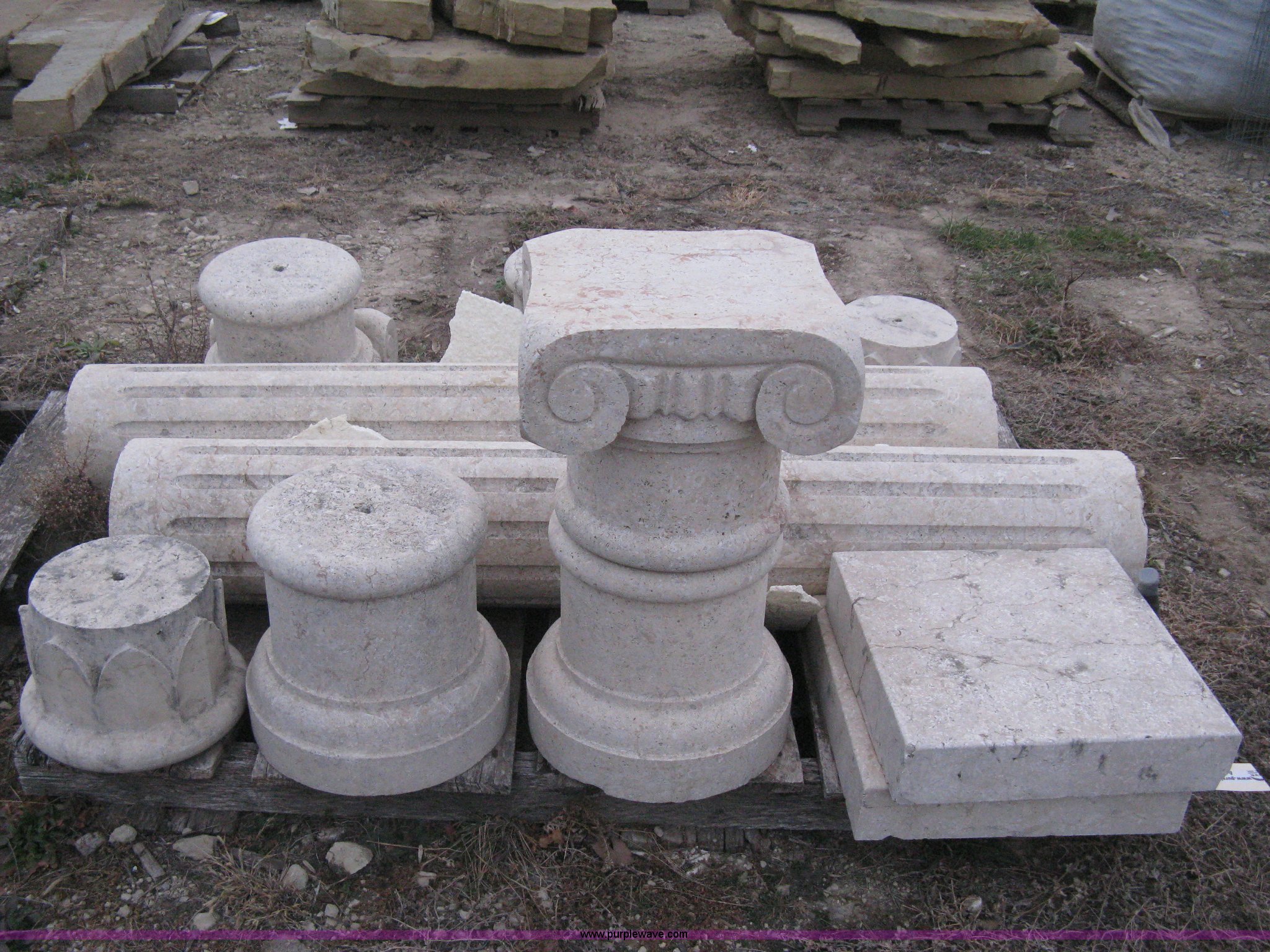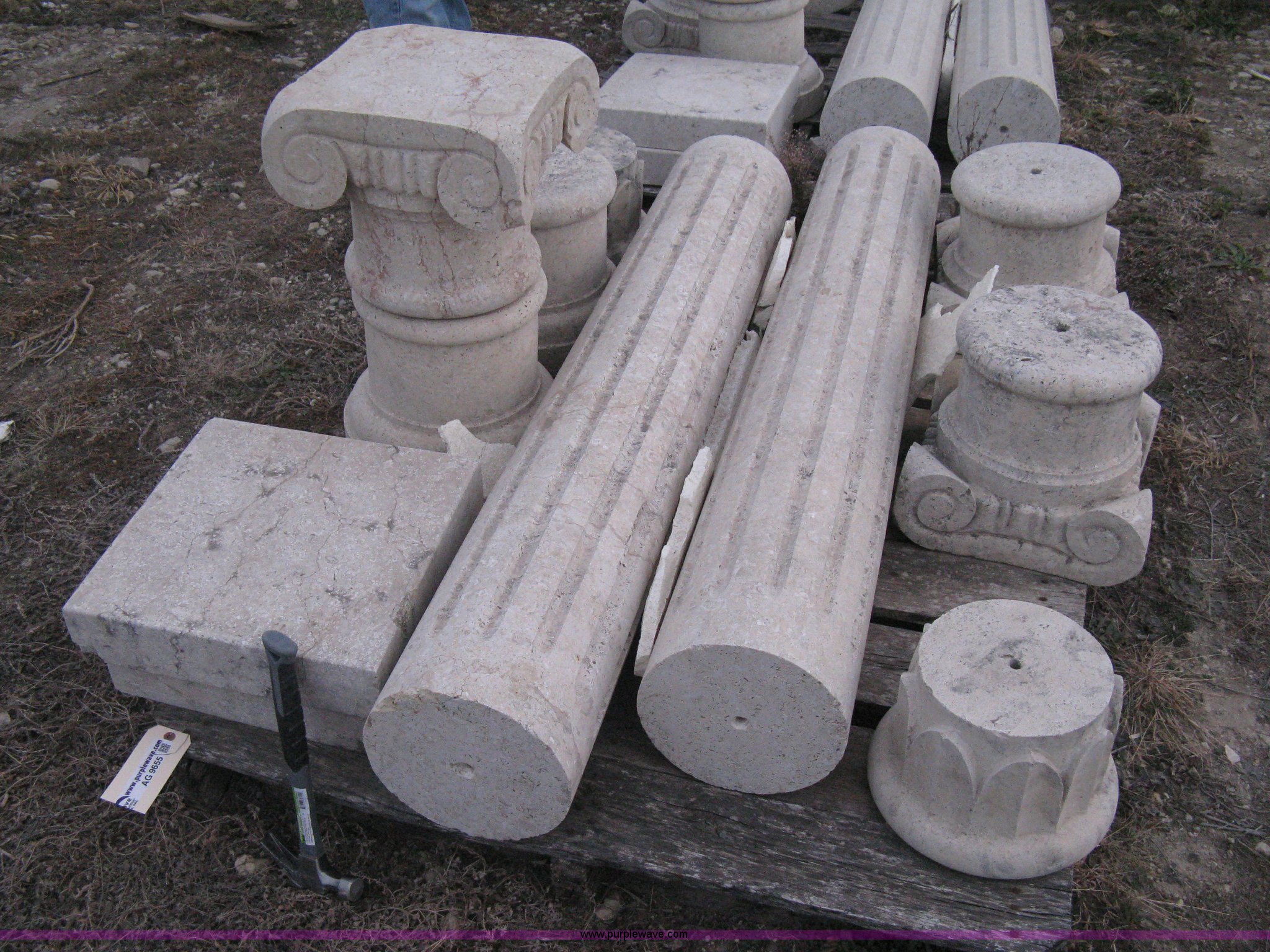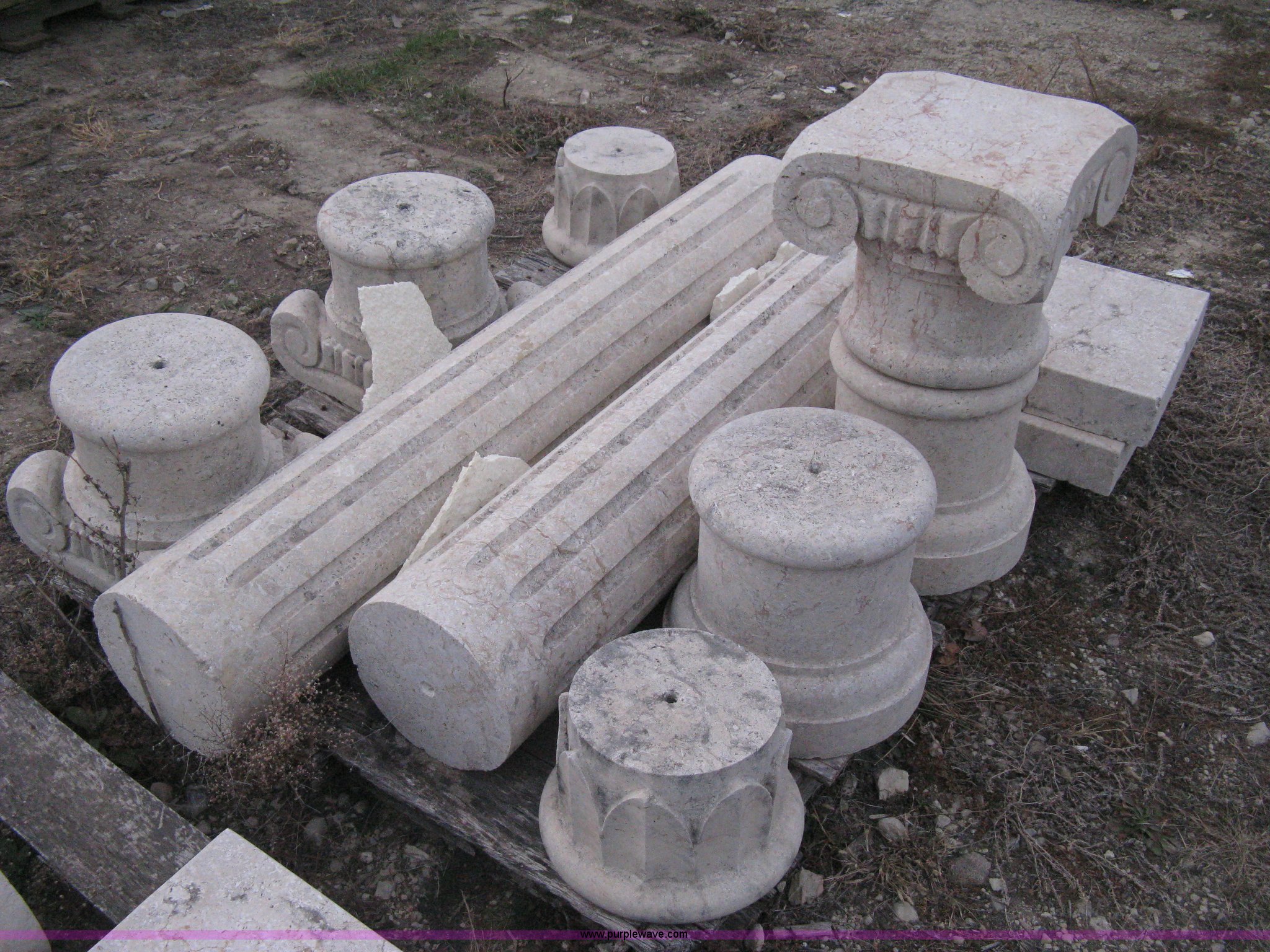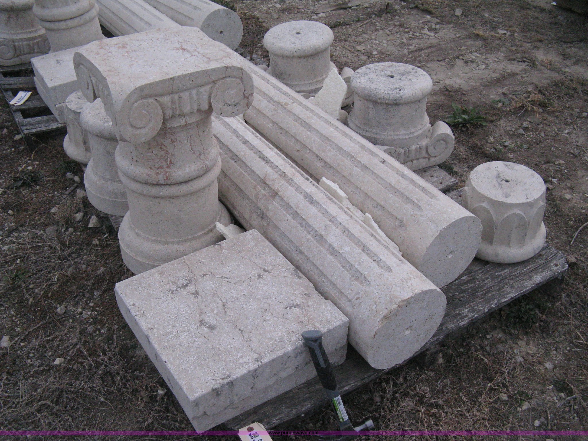 Purple Wave is selling a used Lawn and Garden in Kansas. This item is a Set of 2 Mediterranean natural stone carved columns with the following: Each column is 90" in length and has a 15 1/2" X 15 1/2 square base, 9 1/2" round body, 13" X 13" capital, You have the option to take out a section(s) to obtain the desired height.