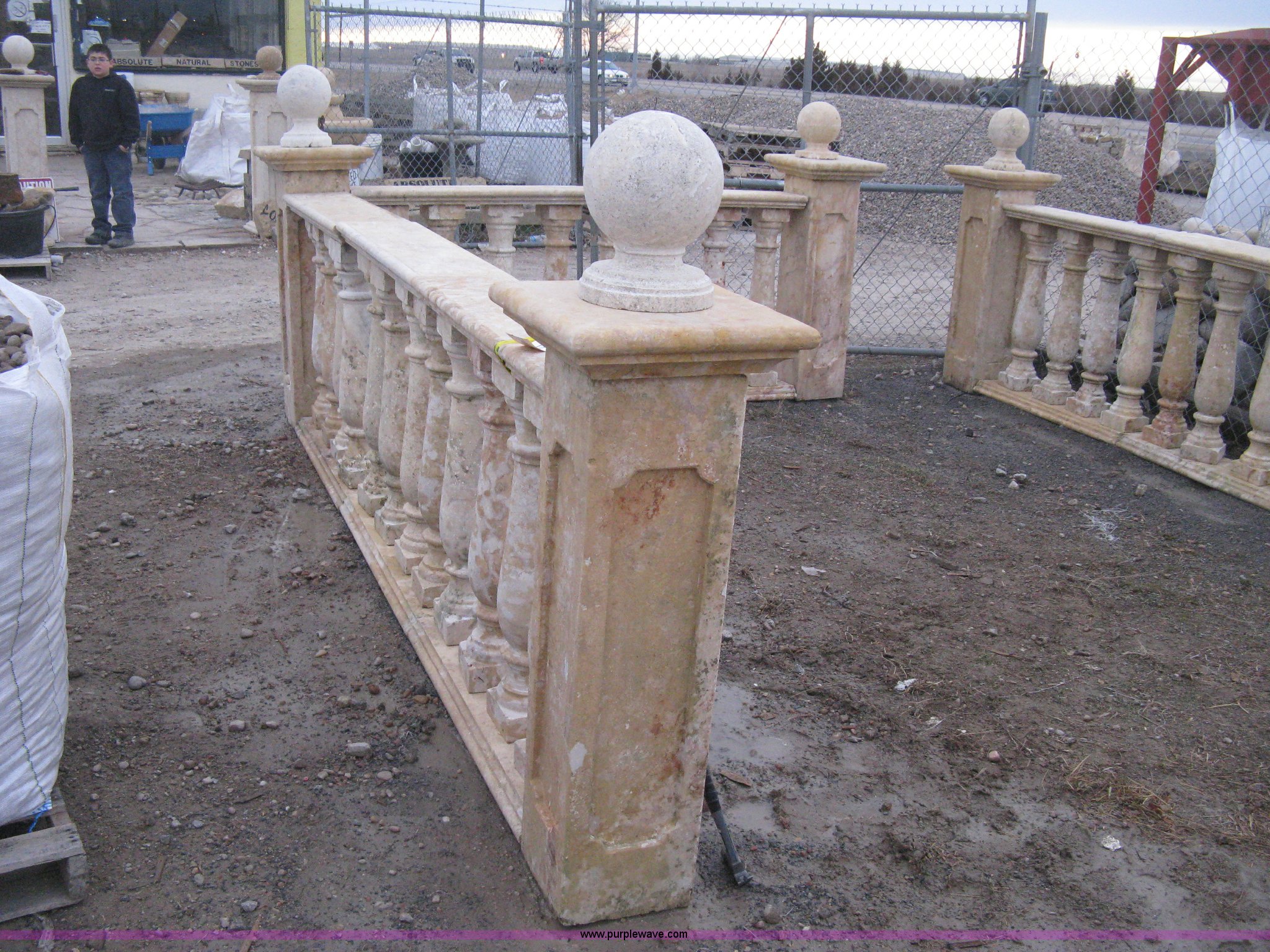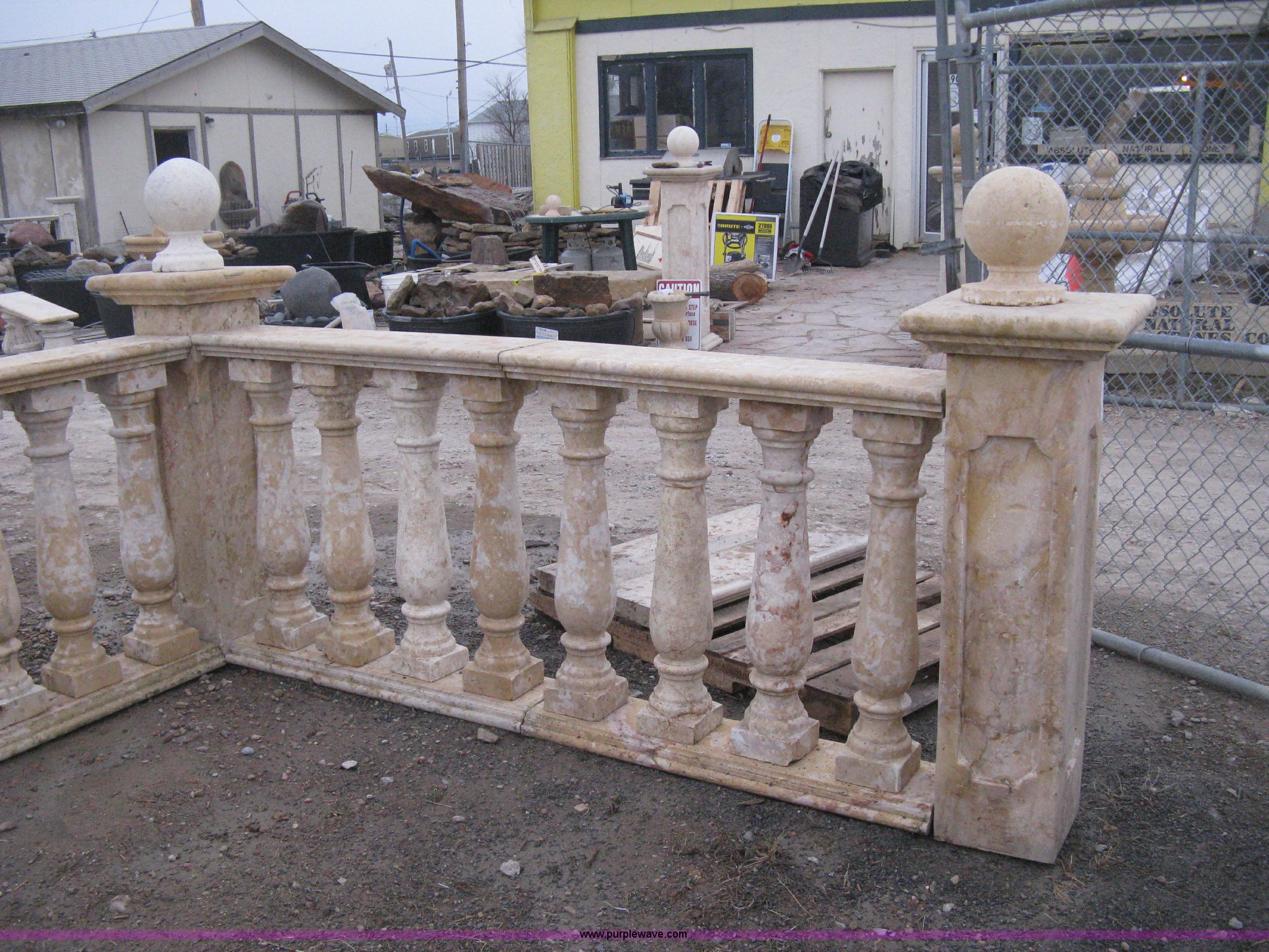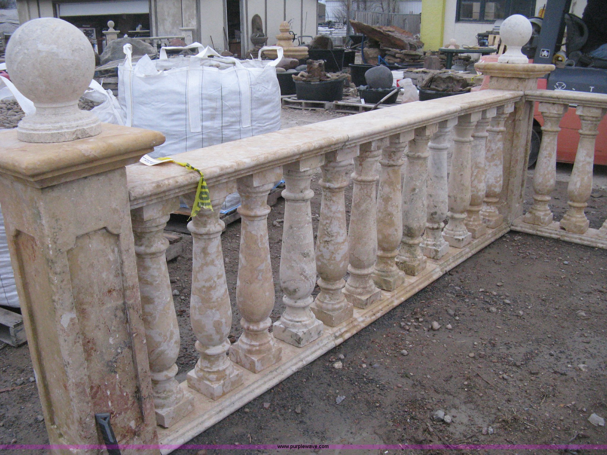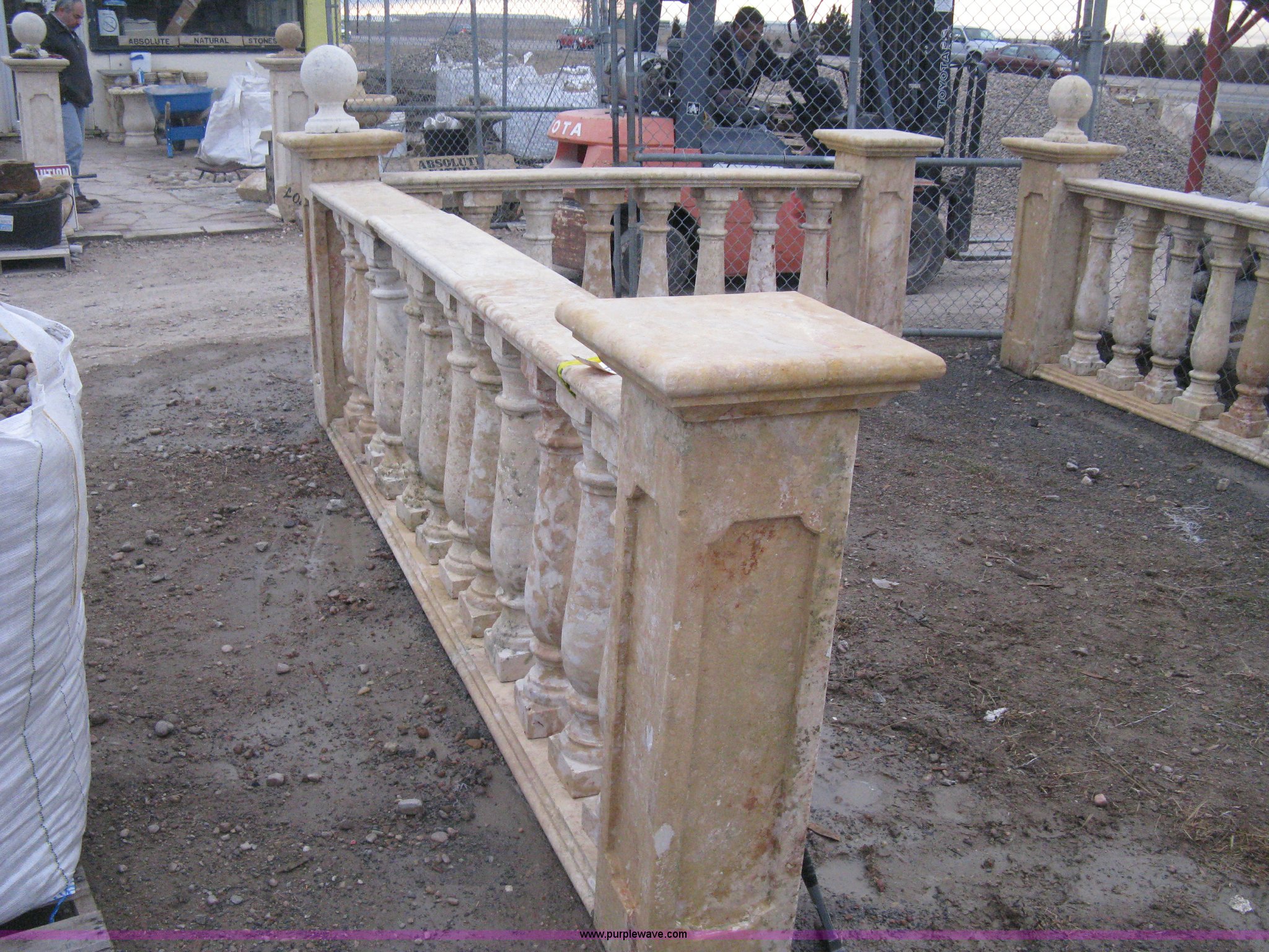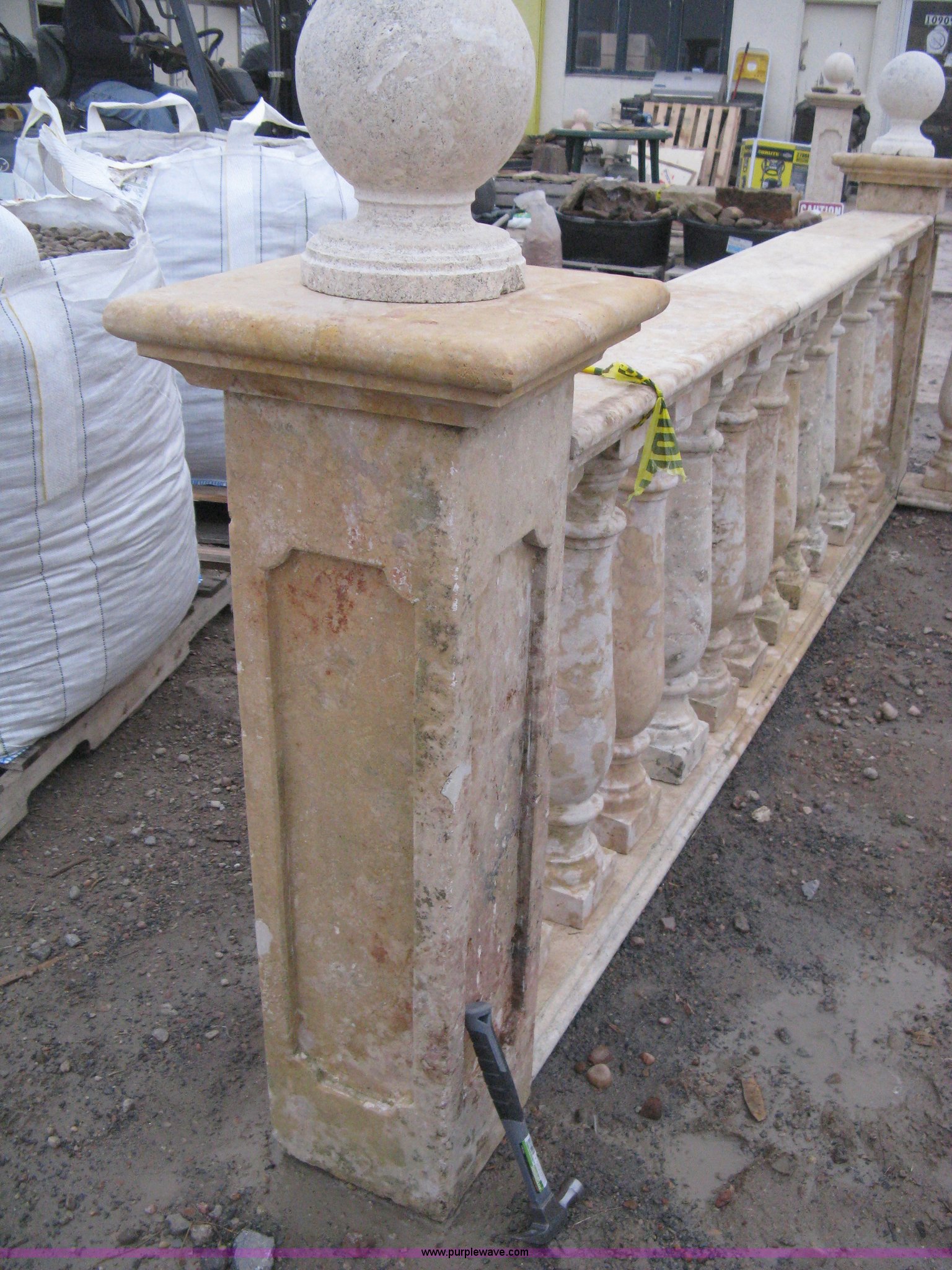 Purple Wave is selling a used Lawn and Garden in Kansas. This item is a Mediterranean natural stone baluster railings with the following: Approx. 20 linear feet, Decorative stone ball toppers