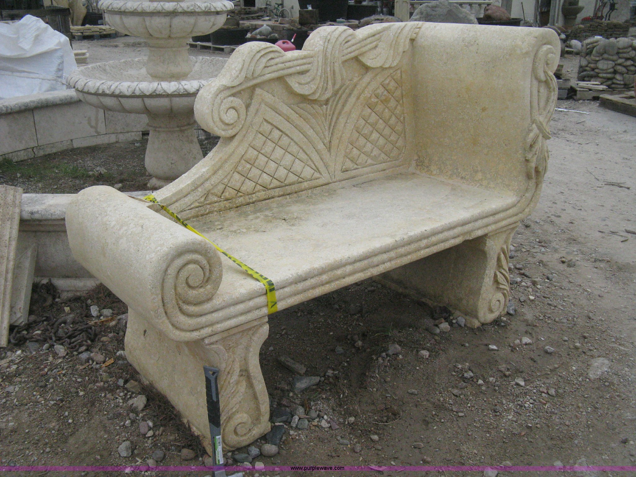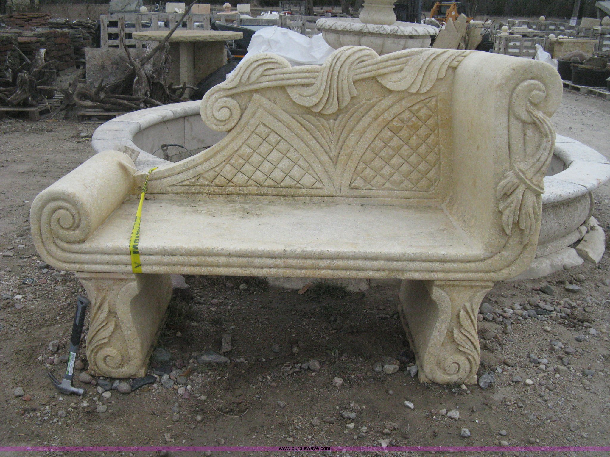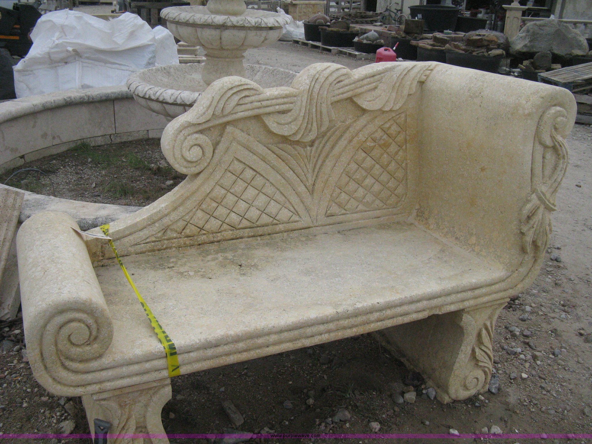 Purple Wave is selling a used Lawn and Garden in Kansas. This item is a Mediterranean carved natural limestone loveseat bench, 61" in length with the following: Mediterranean carved natural limestone loveseat bench, 61" in length. Shipping quotes available. Absolute Natural Stone. 10909 E Kellogg Drive. Wichita, KS 67207