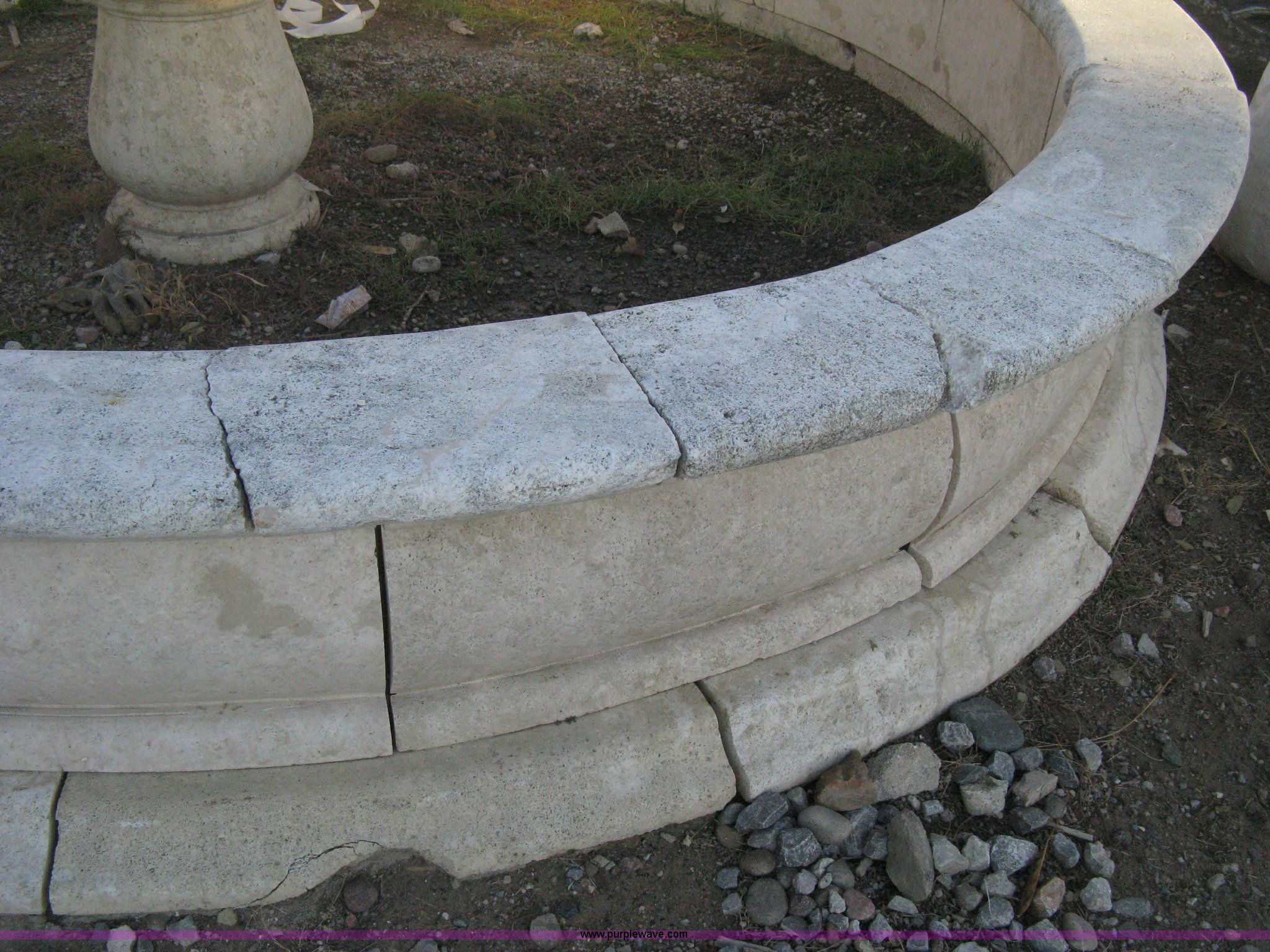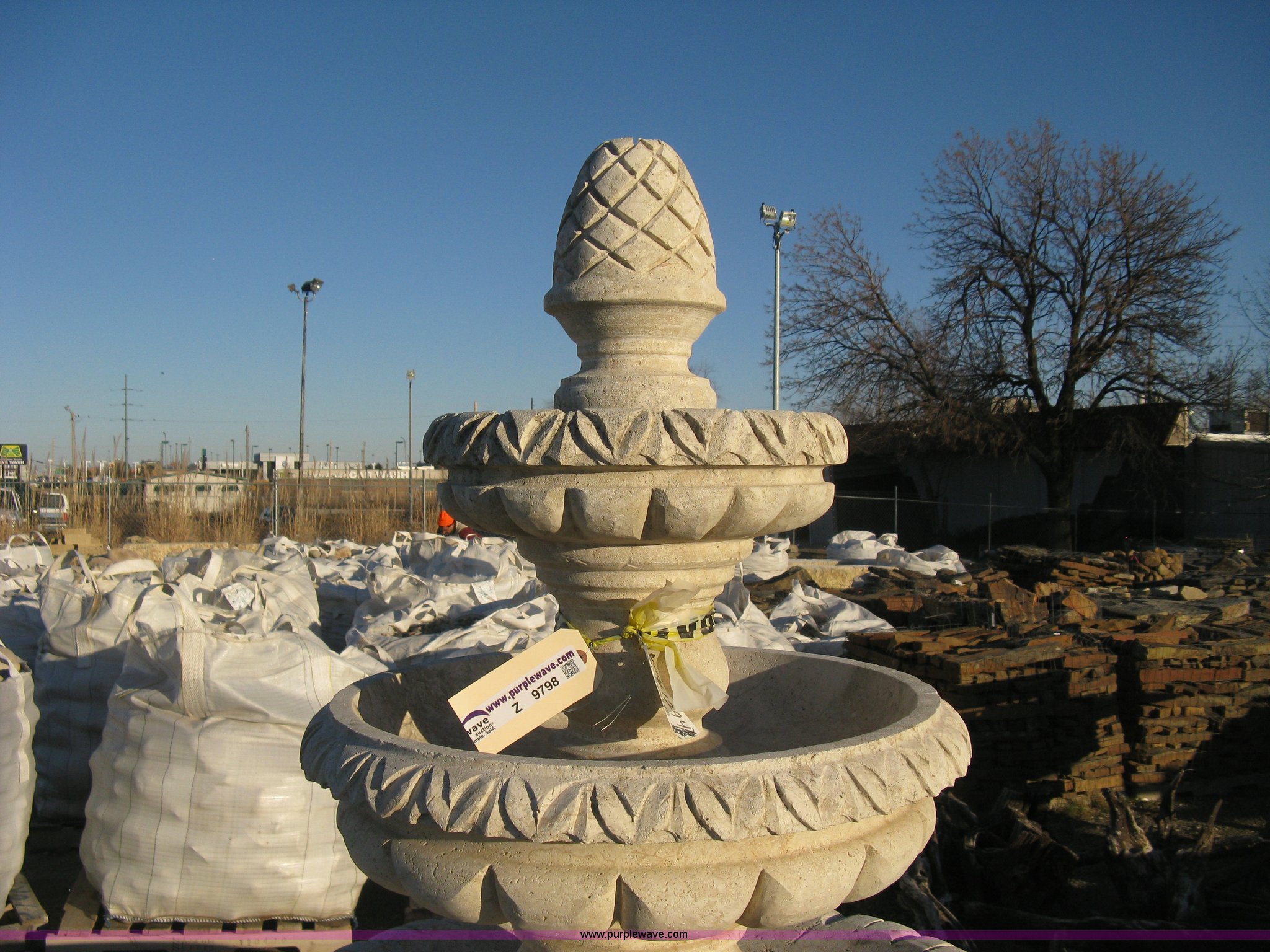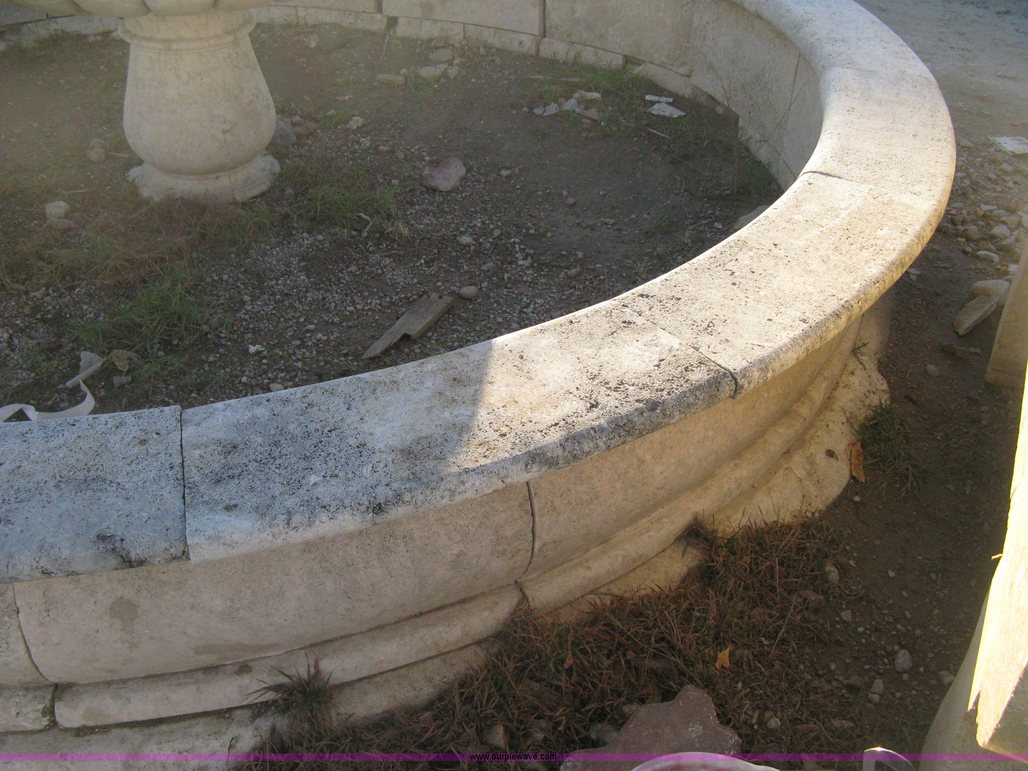 Purple Wave is selling a used Lawn and Garden in Kansas. This item is a 11' diameter four-tier Mediterranean carved fountain with the following: Dry set as a display, Forklift will assist to load but buyer needs to bring labor to dismantle., Seller will advise regarding installation.