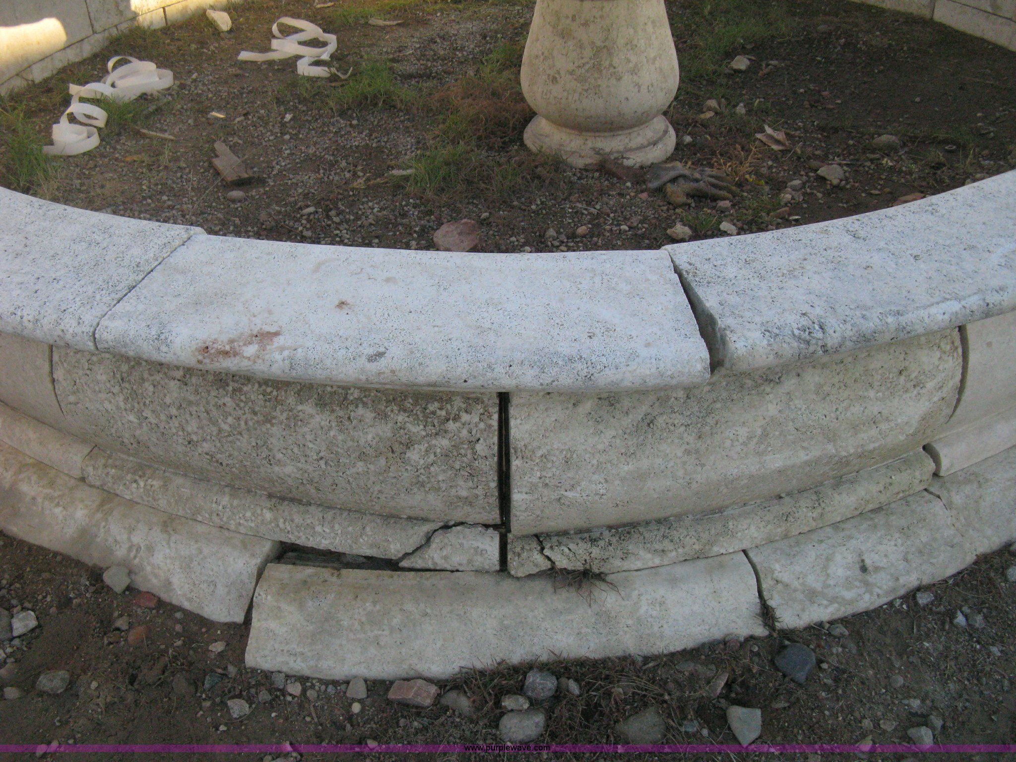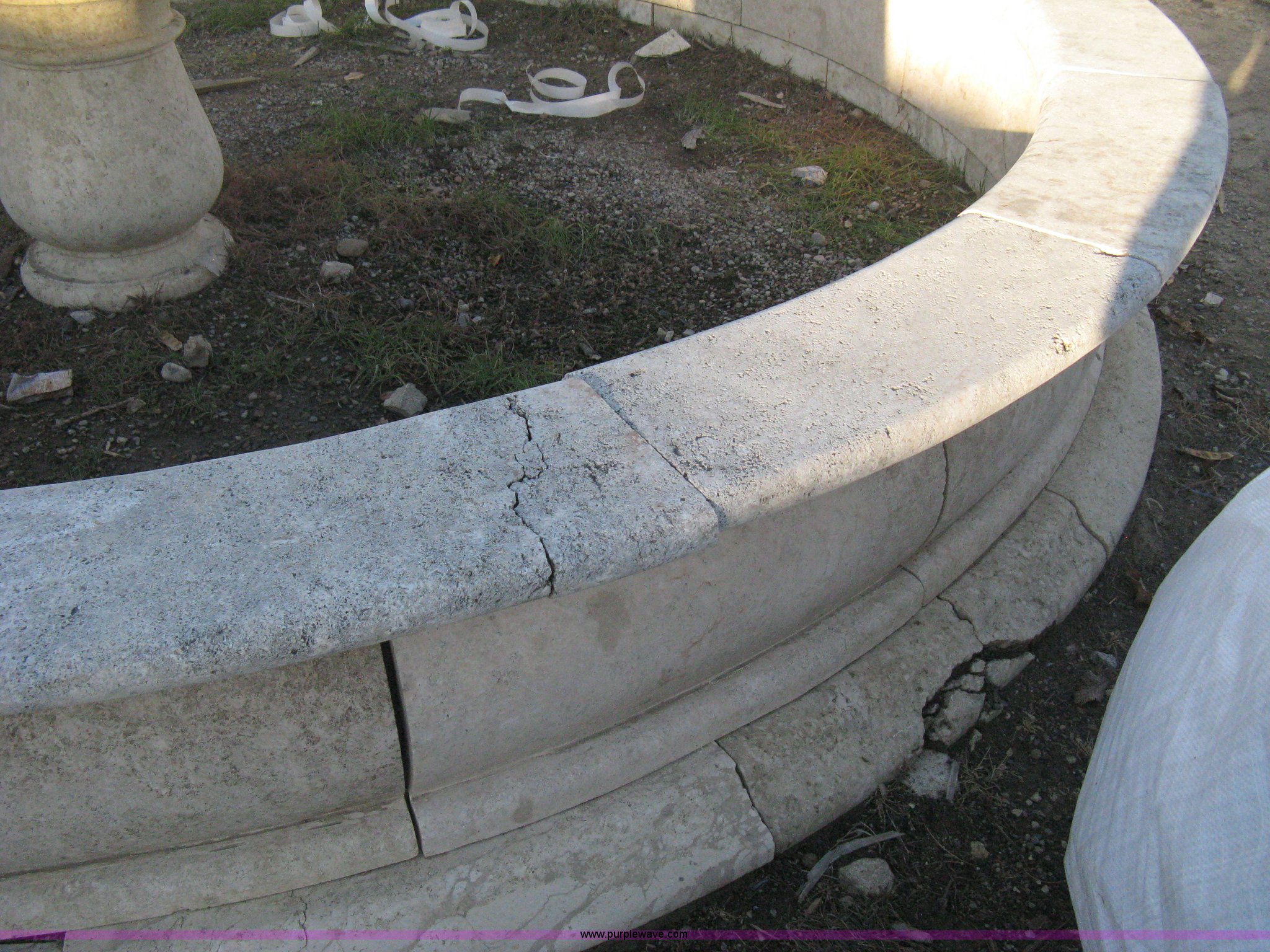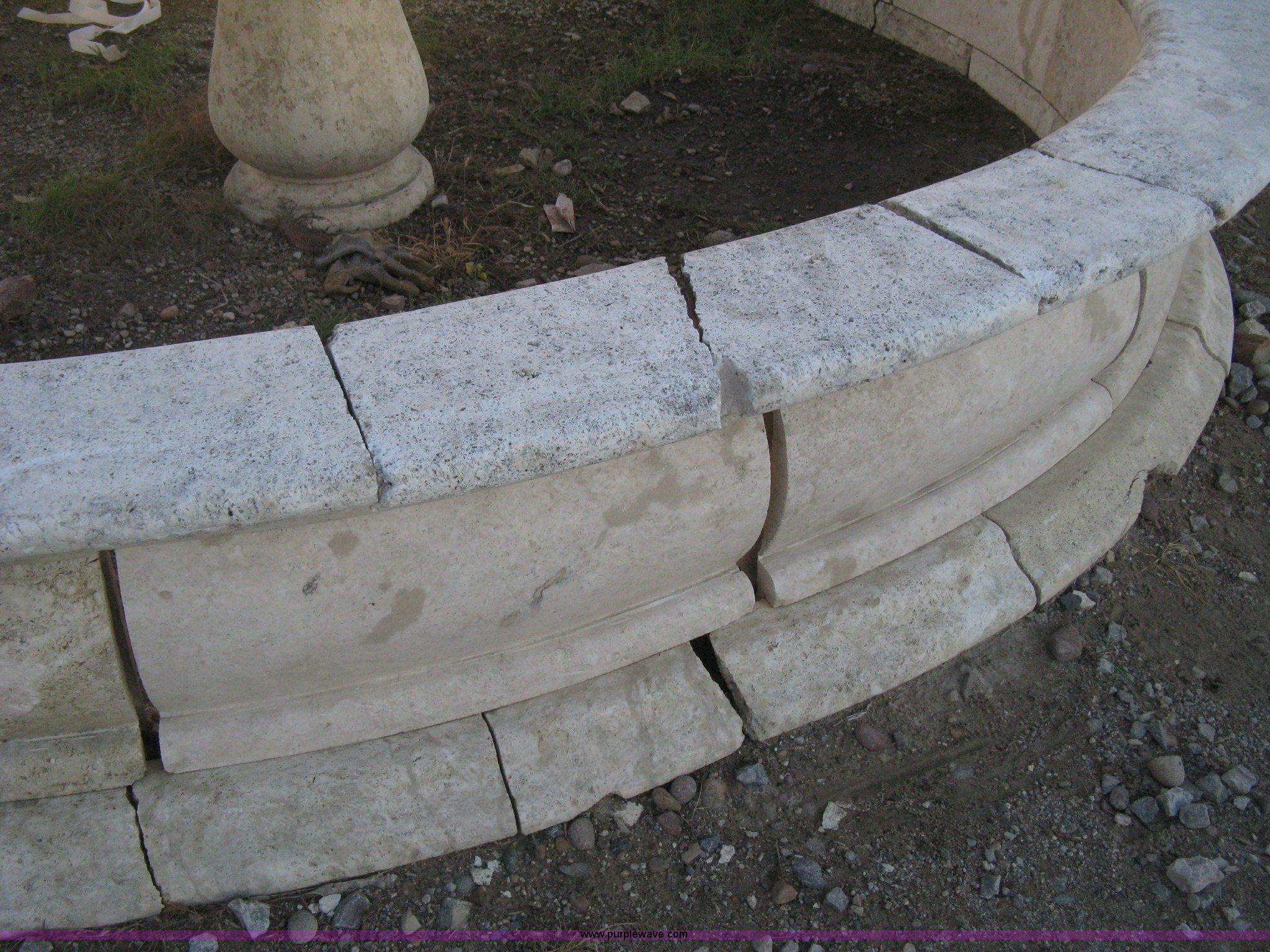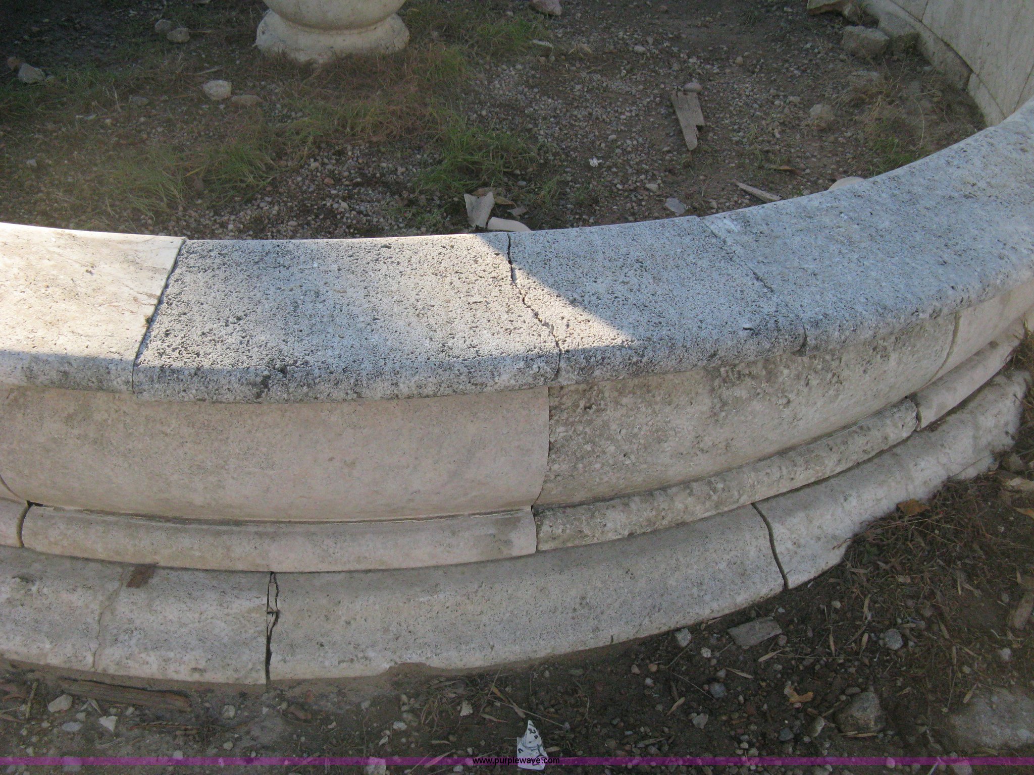 Purple Wave is selling a used Lawn and Garden in Kansas. This item is a 11' diameter four-tier Mediterranean carved fountain with the following: Dry set as a display, Forklift will assist to load but buyer needs to bring labor to dismantle., Seller will advise regarding installation.