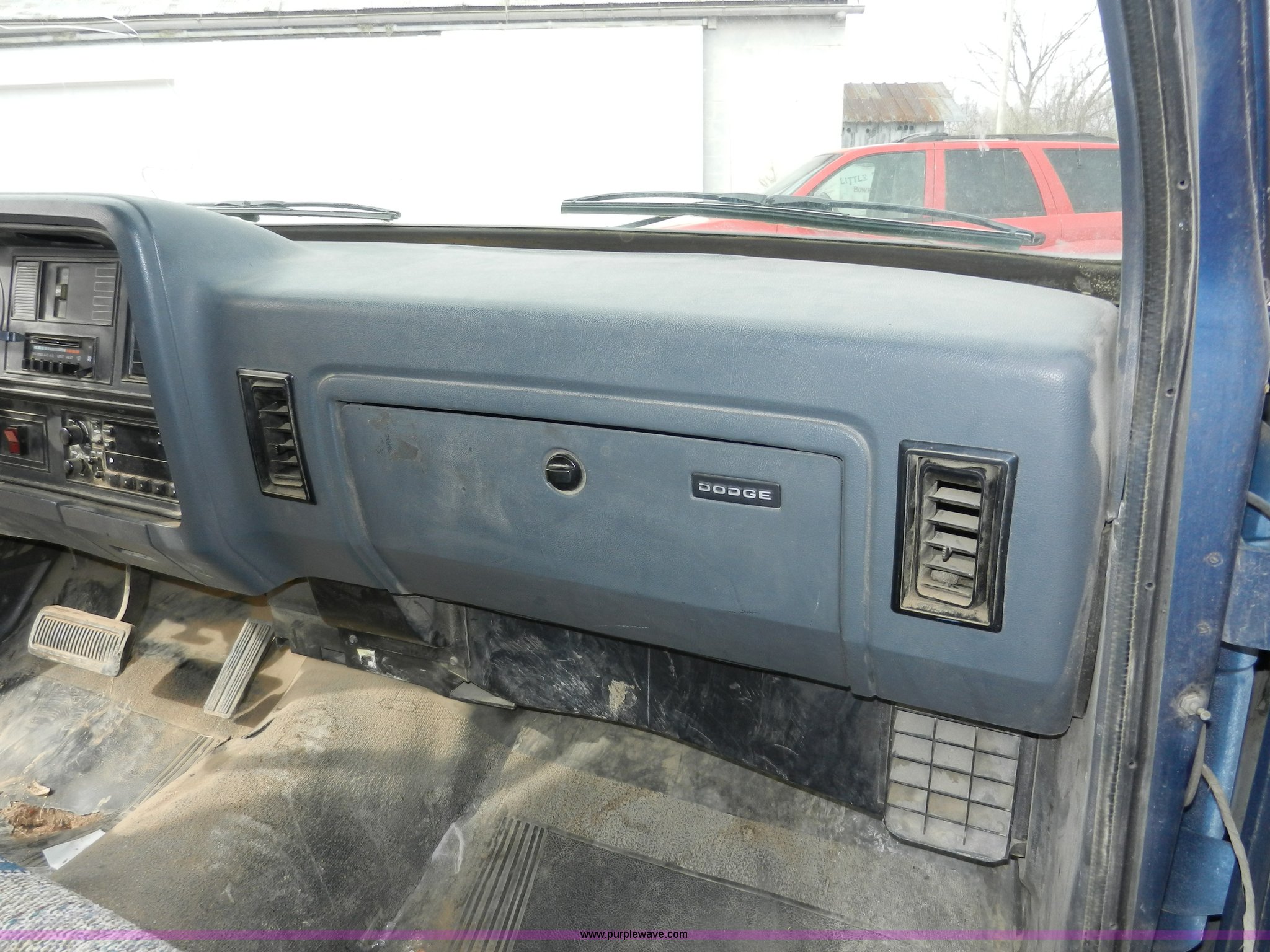 Purple Wave is selling a used Passenger Vehicle in Kansas. This item is a 1992 Dodge Ram D150 pickup truck with the following: 74,001 miles on odometer, Odometer inoperable, 5.2L V8 OHV 16V gas engine, Automatic transmission, AC and heat, AC needs charged, AM/FM, Manual windows and locks, Vinyl interior, Side toolbox, Ball hitch, Trailer wiring, 235/75R15 tires, Interior/exterior cosmetic damage, Paint peeling, Cracked windshield, Body rust, Passenger headlight cover damaged, Hole in floorboard, Headliner needs repaired