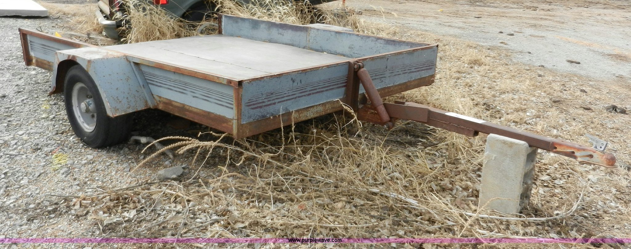 Purple Wave is selling a used Car or Utility Trailer in Kansas. This item is a Shop built tilt trailer with the following: 98" x 75", 2" ball hitch, Sheet metal flooring, 20.5x8.0-10 tires