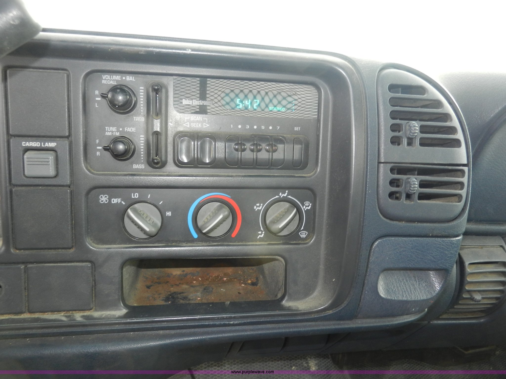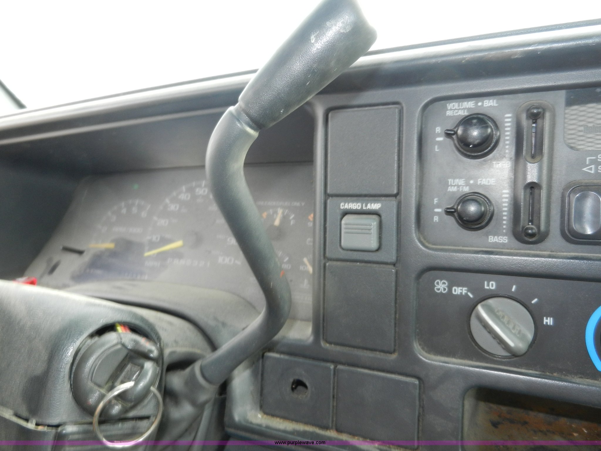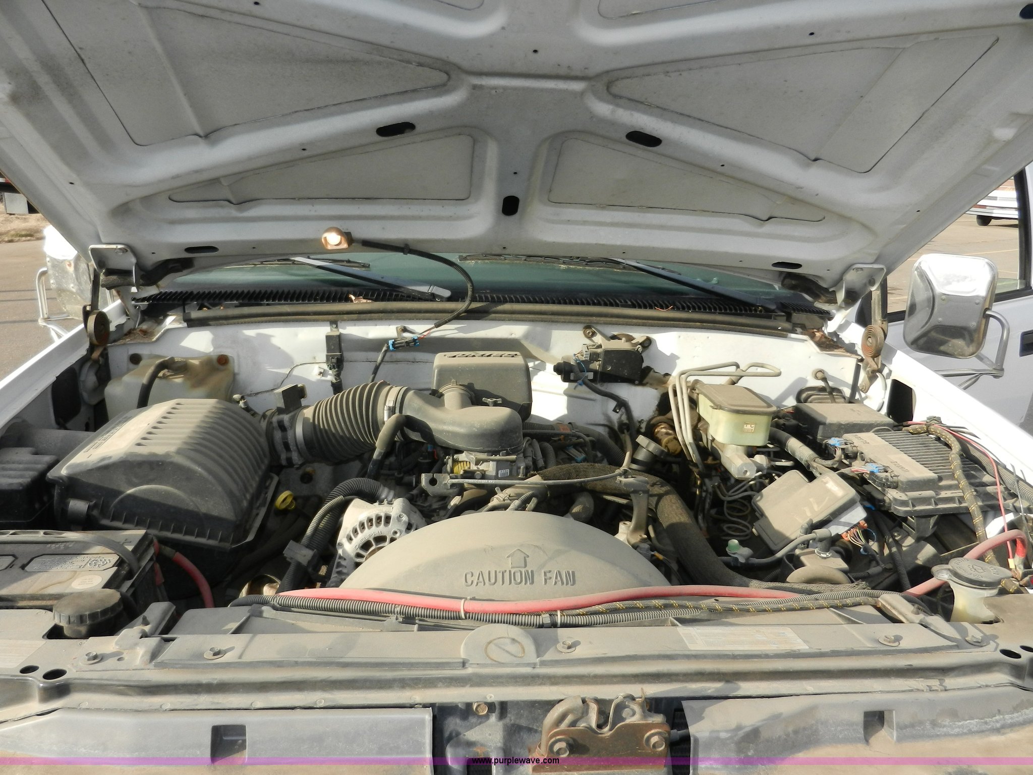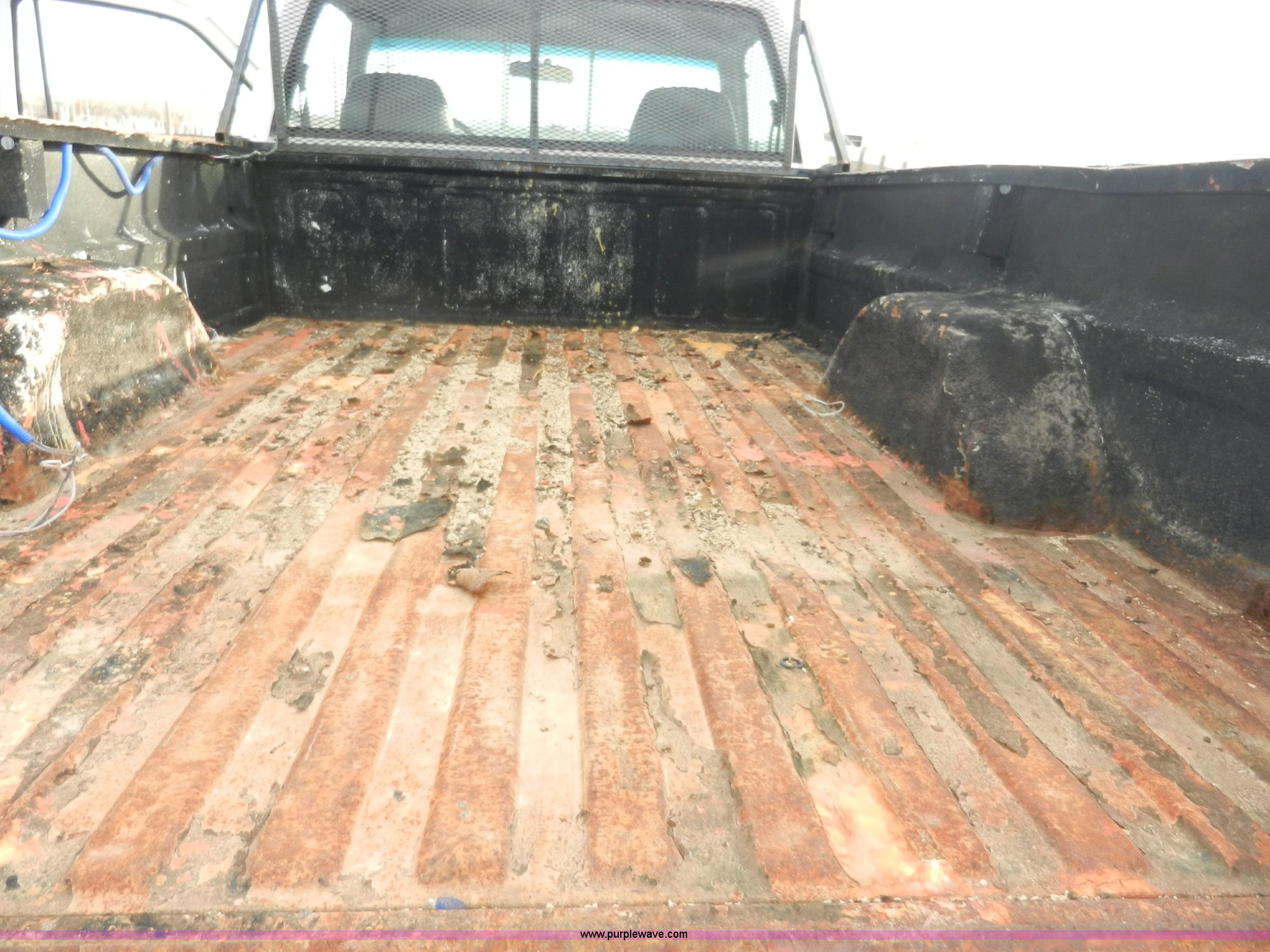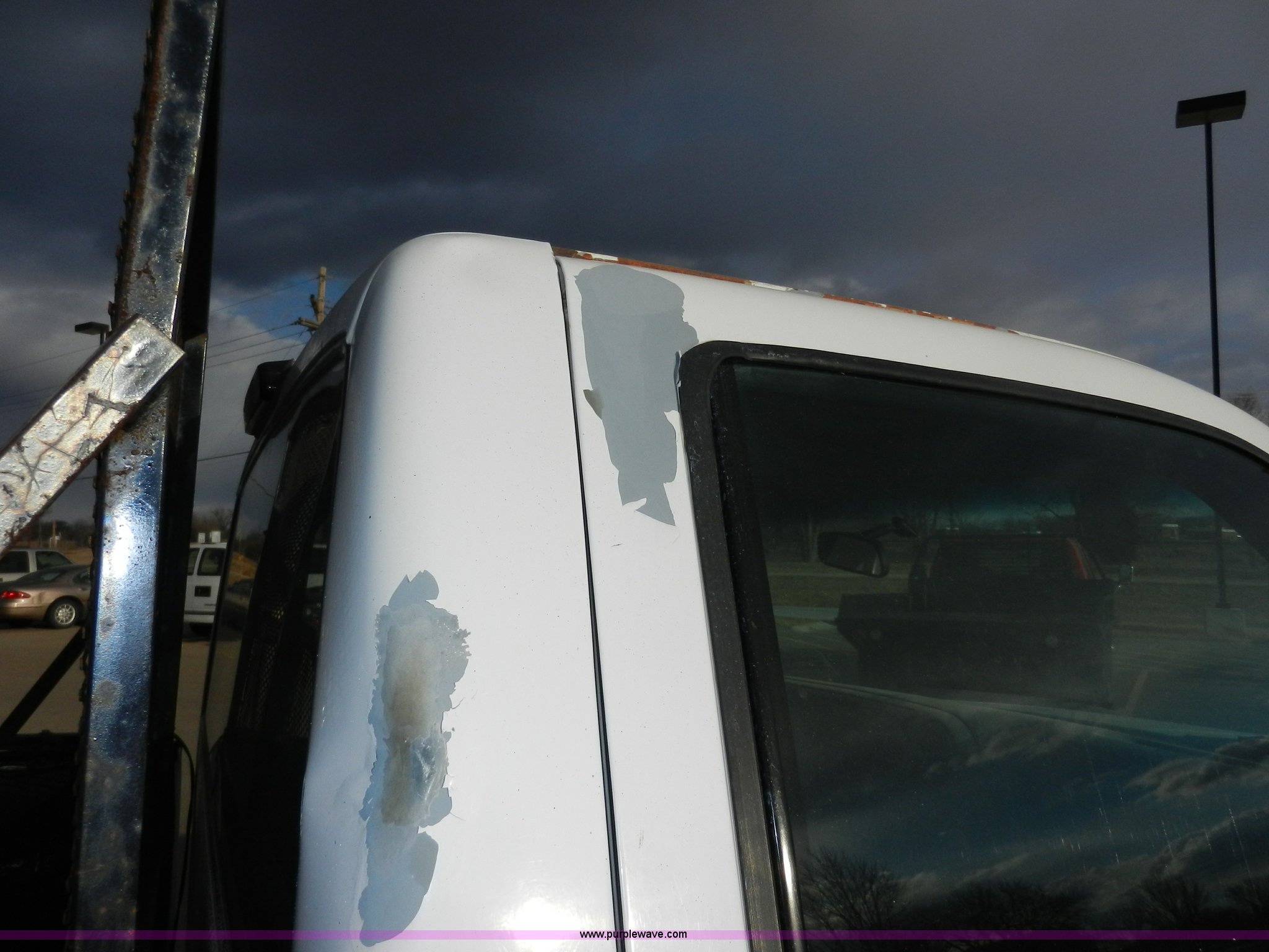 Purple Wave is selling a used Passenger Vehicle in Kansas. This item is a 1998 GMC Sierra 3500 SL pickup truck with the following: 80,893 miles on odometer, 5.7L V8 OHV 16V gas engine, Automatic transmission, Four wheel drive, Heat, AM/FM, Manual windows and locks, Cloth interior, Partial Tommy Gate lift unit, No tailgate, Side rails, Front tow hooks, 265/75R16 tires, Interior/exterior cosmetic damage, No interior door panel or handle on driver side, Body rust, Paint peeling, Driver side door will not lock