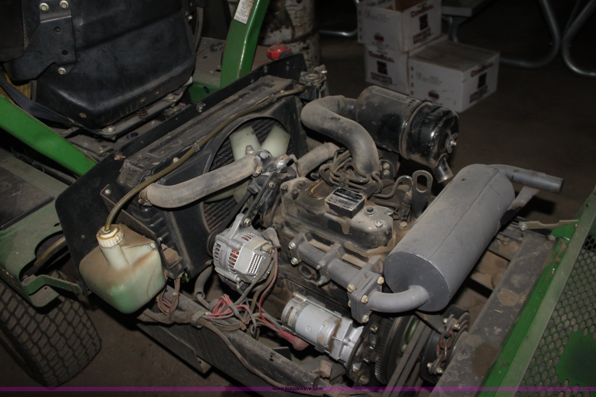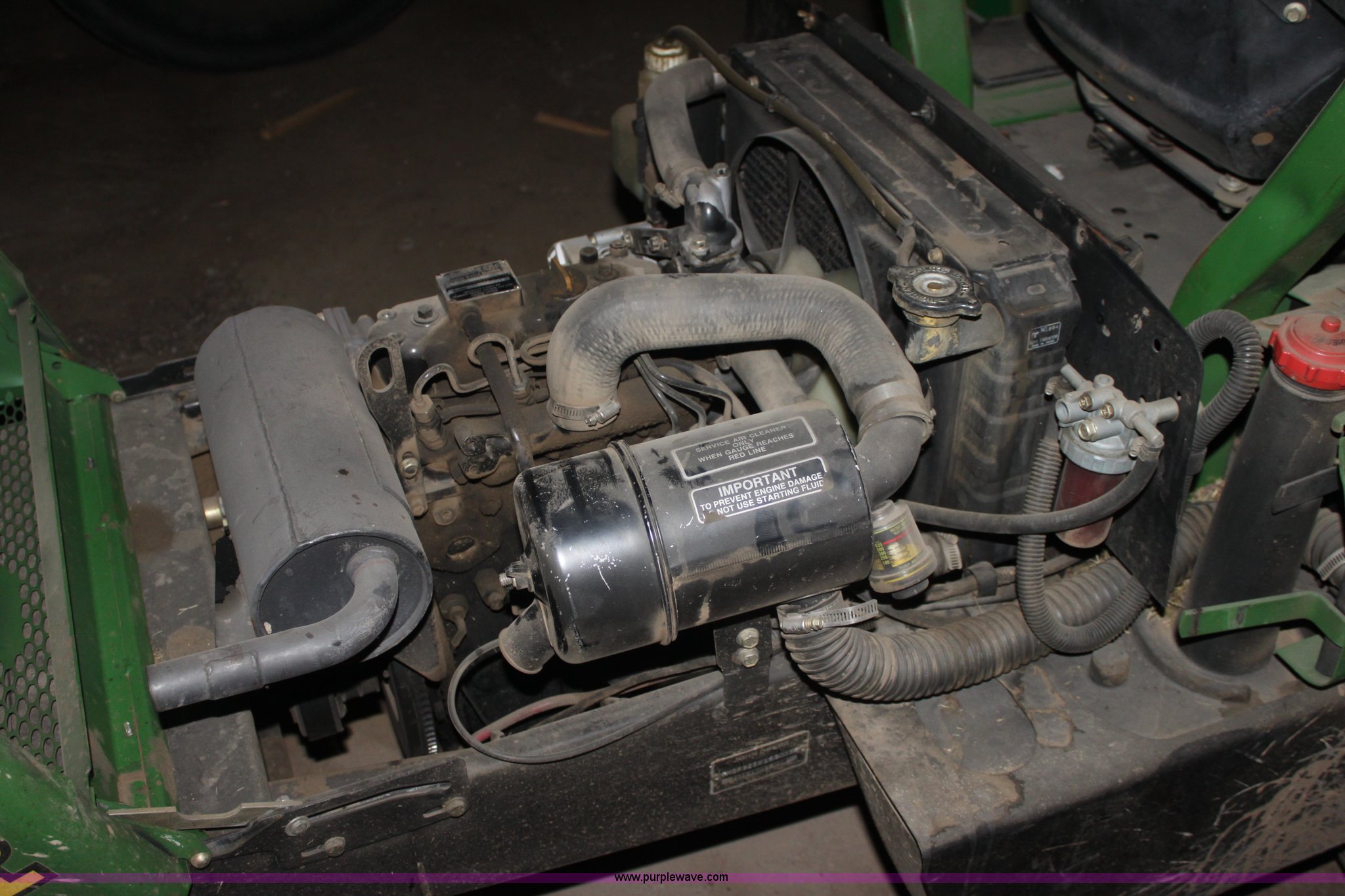 Purple Wave is selling a used Commercial Turf Mower in Kansas. This item is a John Deere F925 riding lawn mower with the following: 3,209 hours on meter, John Deere three cylinder diesel engine, Model 3TNA72SJ, Serial CH30290072108, Engine smokes, Locking differential, John Deere 54" front blade, 23 x 10.5-12 NHS front tires, 16 x 6.50-8 NHS rear tires, Serial M01490X031841, Recently replaced starter, Engine smokes