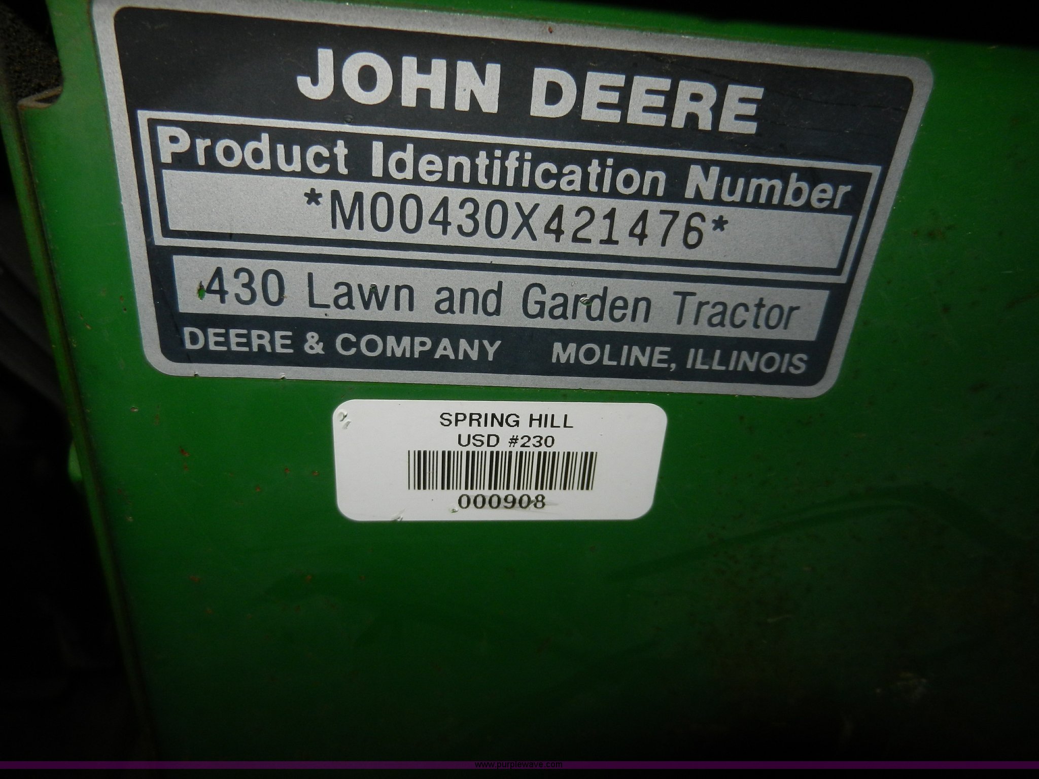 John Deere 430 lawn tractor has sold in Spring Hill, Kansas for $2310. Item AB9559 sold on March 5th, 2013.