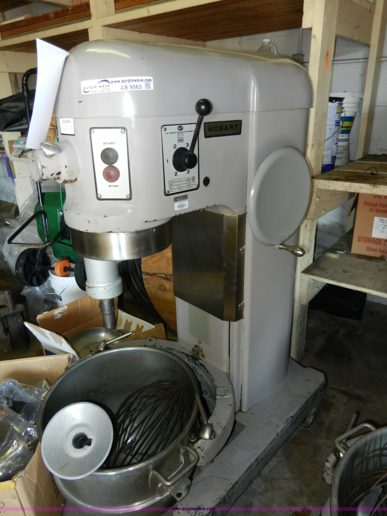 Purple Wave is selling a used Restaurant Equip. in Kansas. This item is a Hobart H600 mixer with the following: 208V, 1 HP motor, Three phase, Beater, bread whip, bowl, and grinder attachment included, Serial 1835293