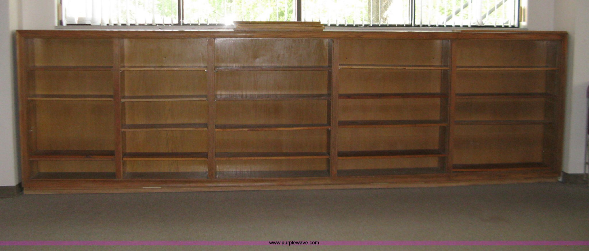 Purple Wave is selling a used Furniture in Kansas. This item is a Oak shelving unit with the following: 18' x 4'