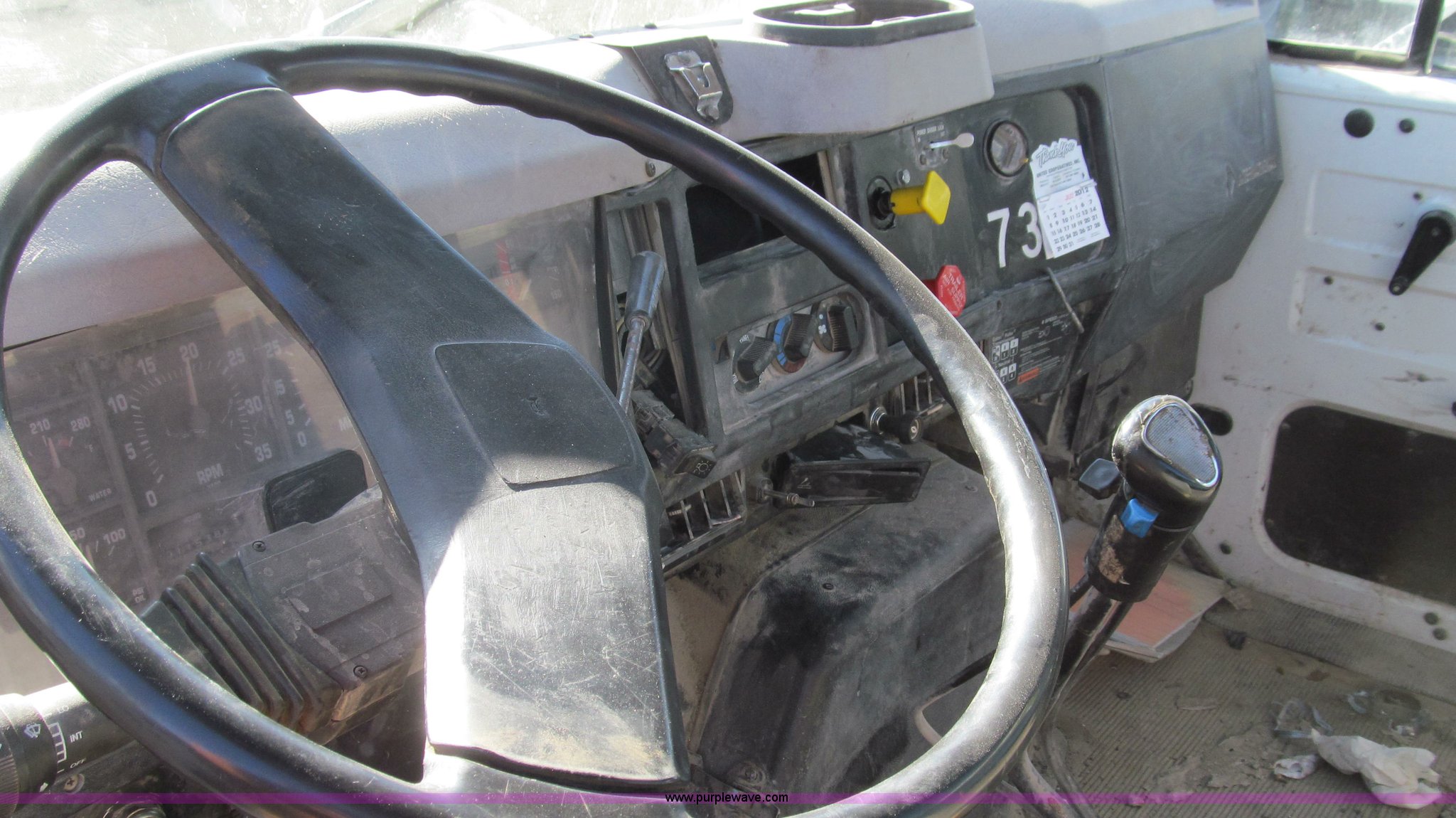 Purple Wave is selling a used Construction Dump Truck in Missouri. This item is a 1999 International 4900 dump truck with the following: 259,737 miles on odometer, 11,538 hours on meter, International DT530 8.7L L6 diesel engine, Engine inoperable, Eaton Fuller 10 speed manual transmission, Twin screw, Heat, Air suspension seat, 70 gallon fuel tank, Trailer wiring, Pintle hitch, Spring suspension, PTO, Air brakes, No bed, 206" wheel base, 11R22.5 tires, GVWR 53,220 lbs, Broken hood hinges, Missing front grill, Engine is inoperable, Unit# 73