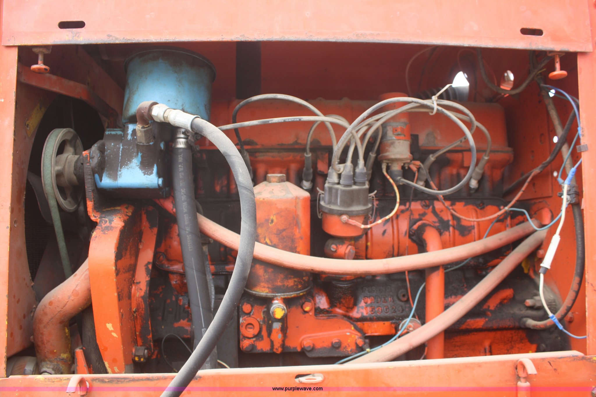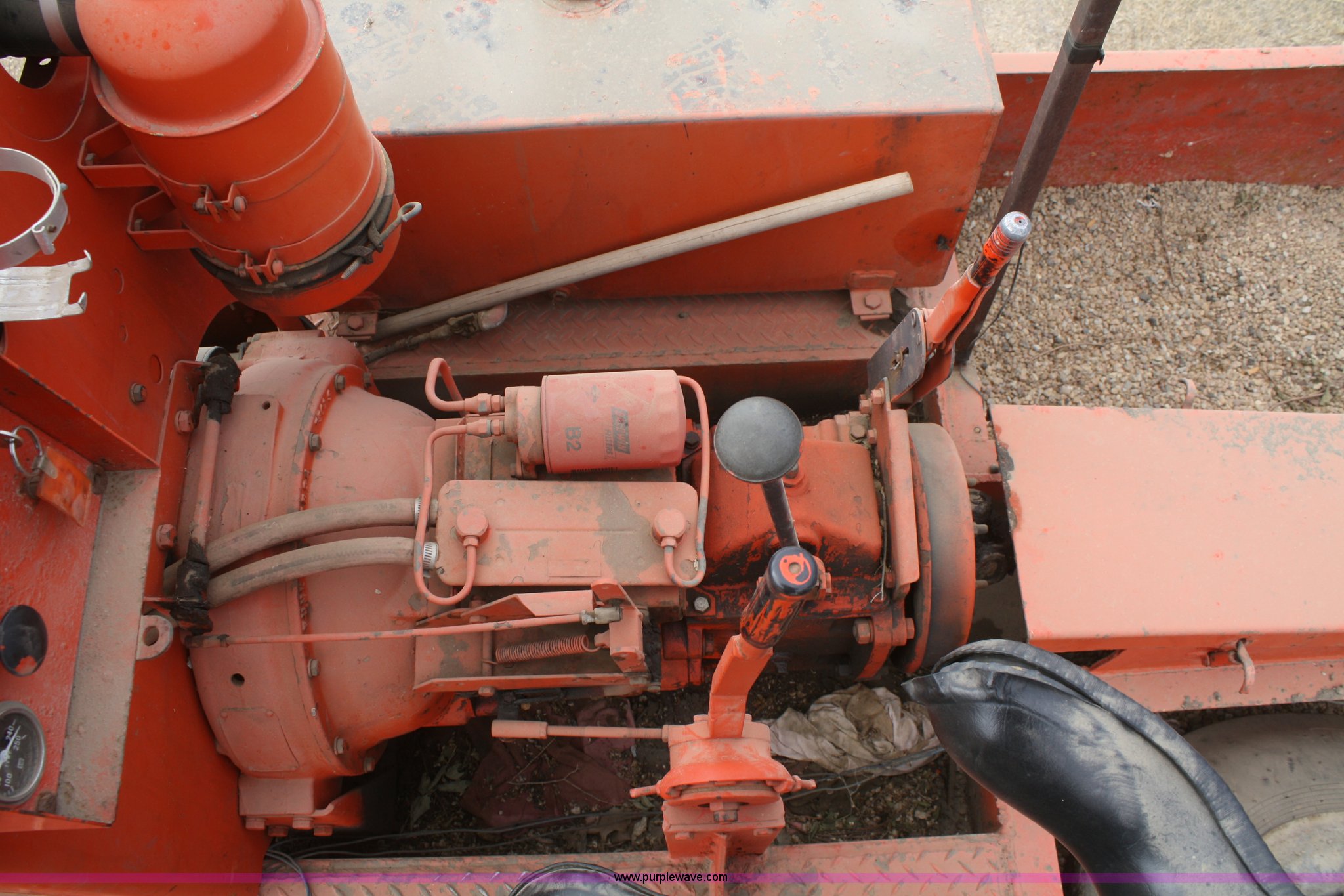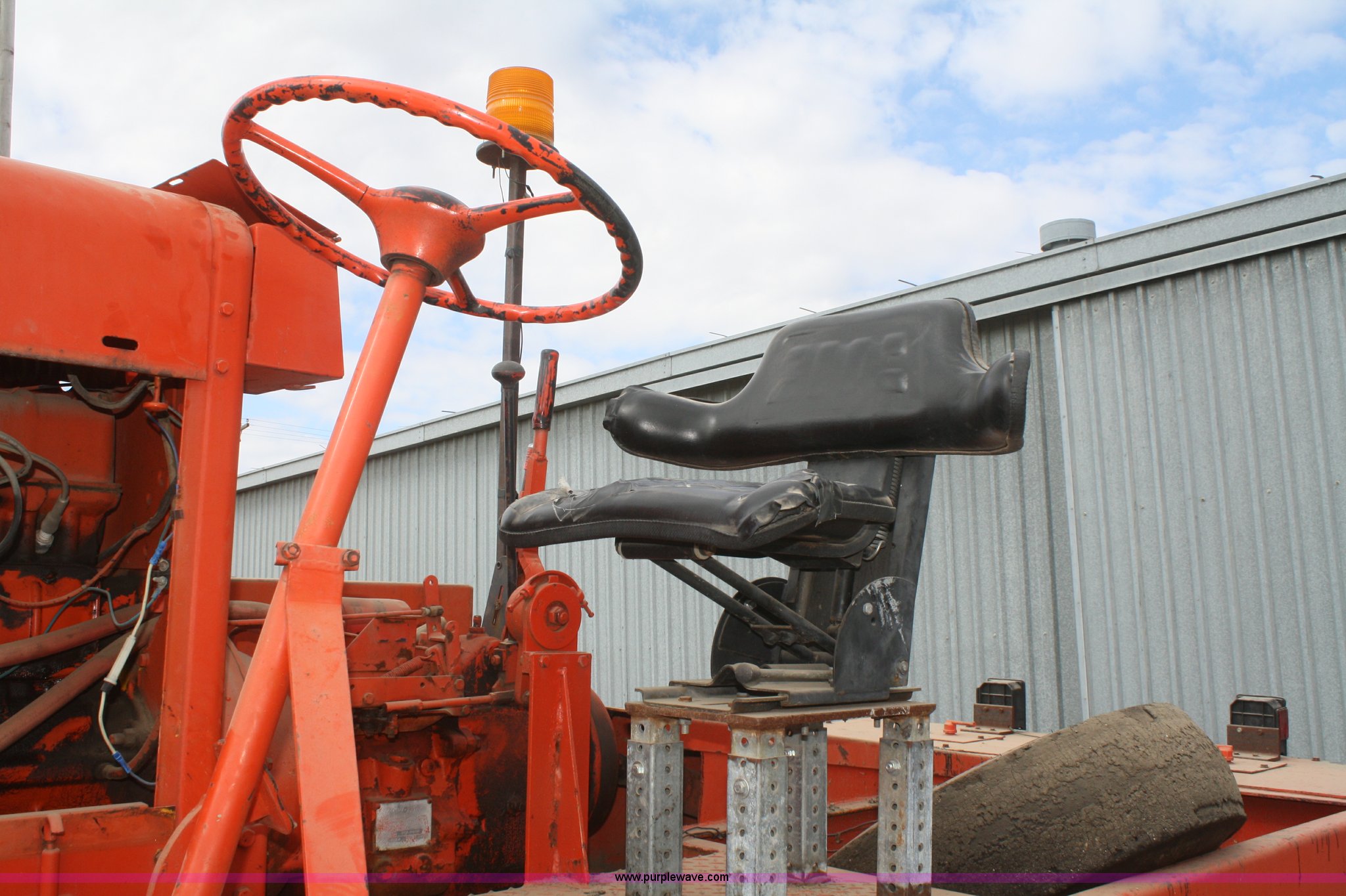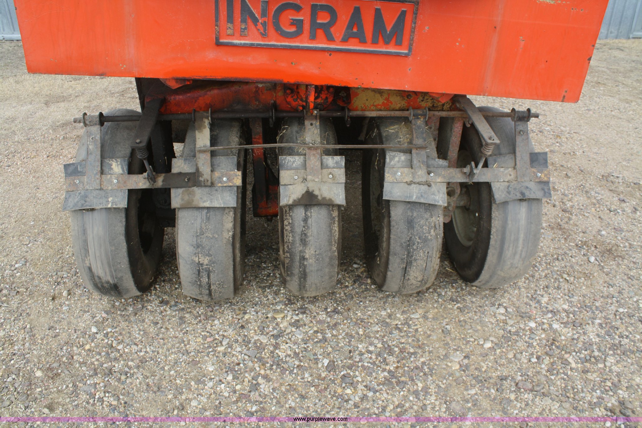 Purple Wave is selling a used Pneumatic Roller in Kansas. This item is a 1971 Ingram 9-2800 nine wheel pneumatic roller with the following: 1,147 hours on meter, Six cylinder gas engine, Four speed shuttle shift transmission, Brake master cylinder, engine tune up, new starter, parking brake shoes, transmission overhaul, left hand rear axle, bearings replaced or repaired 2008, Steering column bearings replaced 2010, Right hand rear axle and bearings, rear brake shoes, rear wheel cylinders, tires, and wheels replaced 2011, Small leak on steering cylinder, Unit was not used in 2012, Serial 411235P48