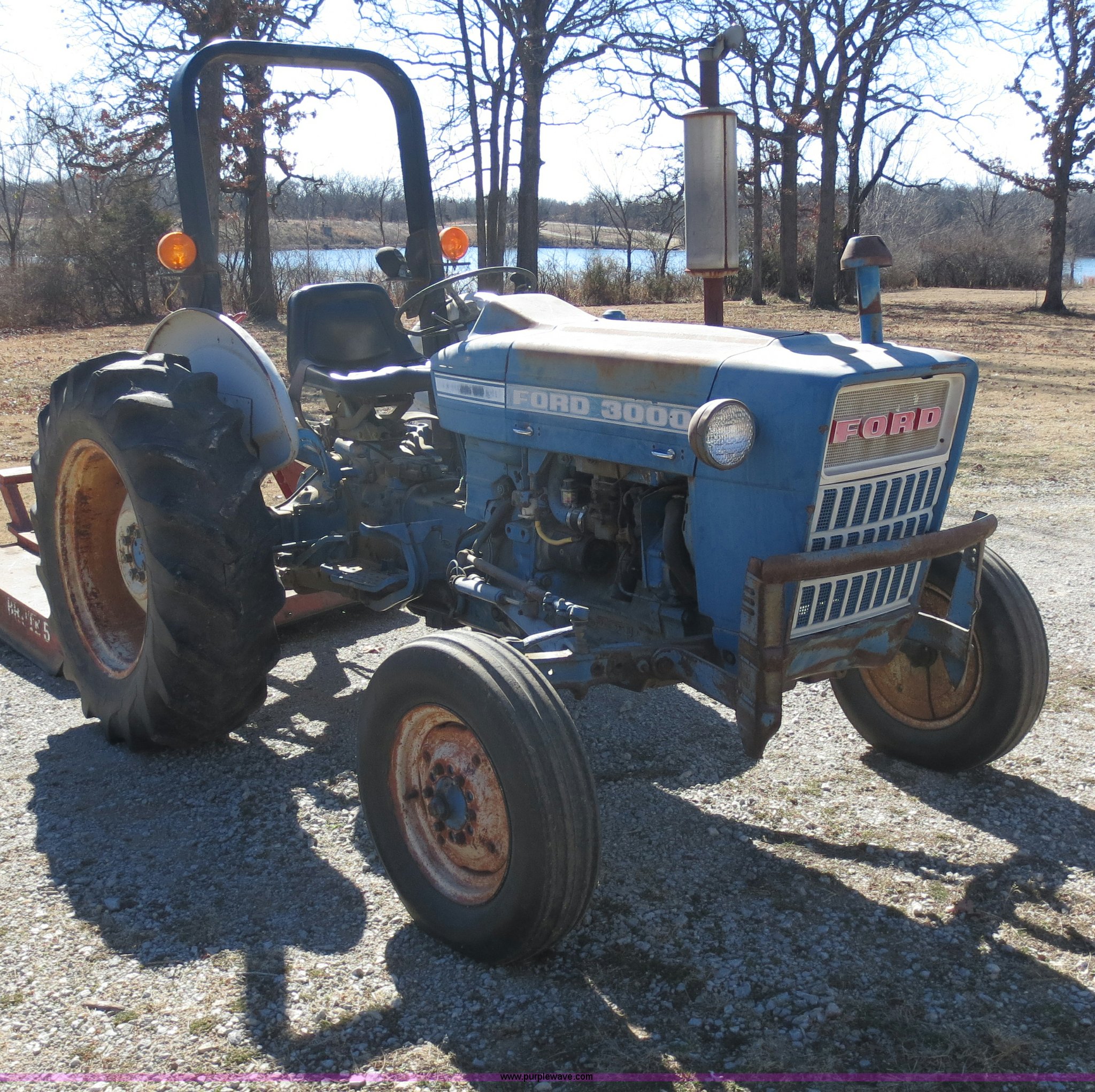 Purple Wave is selling a used Tractor in Kansas. This item is a Ford 3000 tractor with the following: Hour meter inoperable, Ford three cylinder gas engine, Manual transmission, 8F-2R gears, Three point, Draw bar, 540 PTO, One rear hydraulic remote, 14.9-28 rear tires