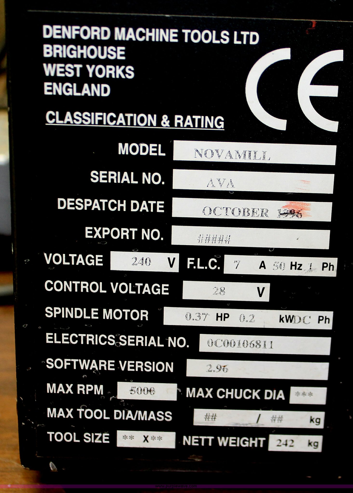 Purple Wave is selling a used Tools in Kansas. This item is a 1996 Denford Novamill CNC bench mill with the following: 240V, Single phase, 2.96 software version, Windows 98, (3) axis, Serial AVA