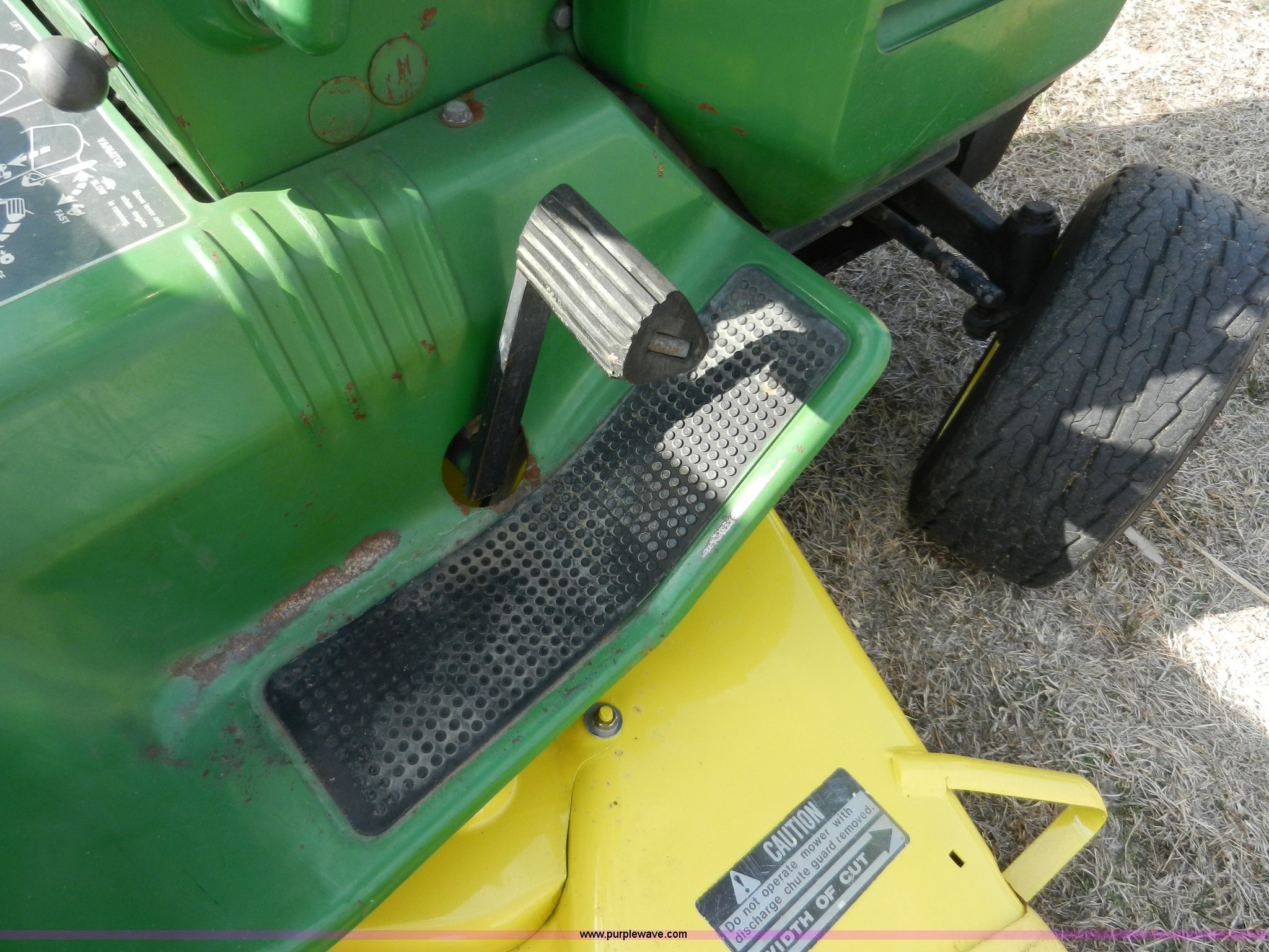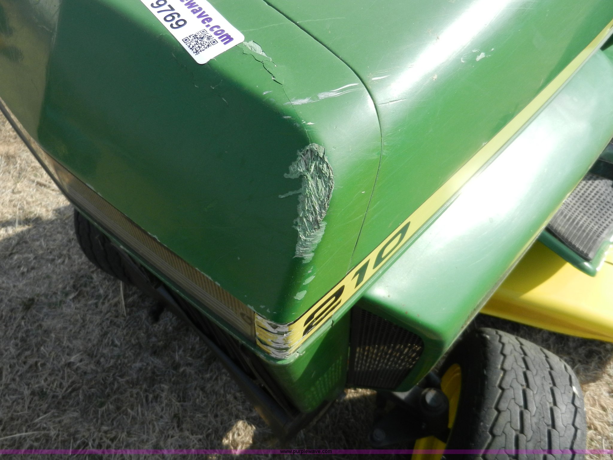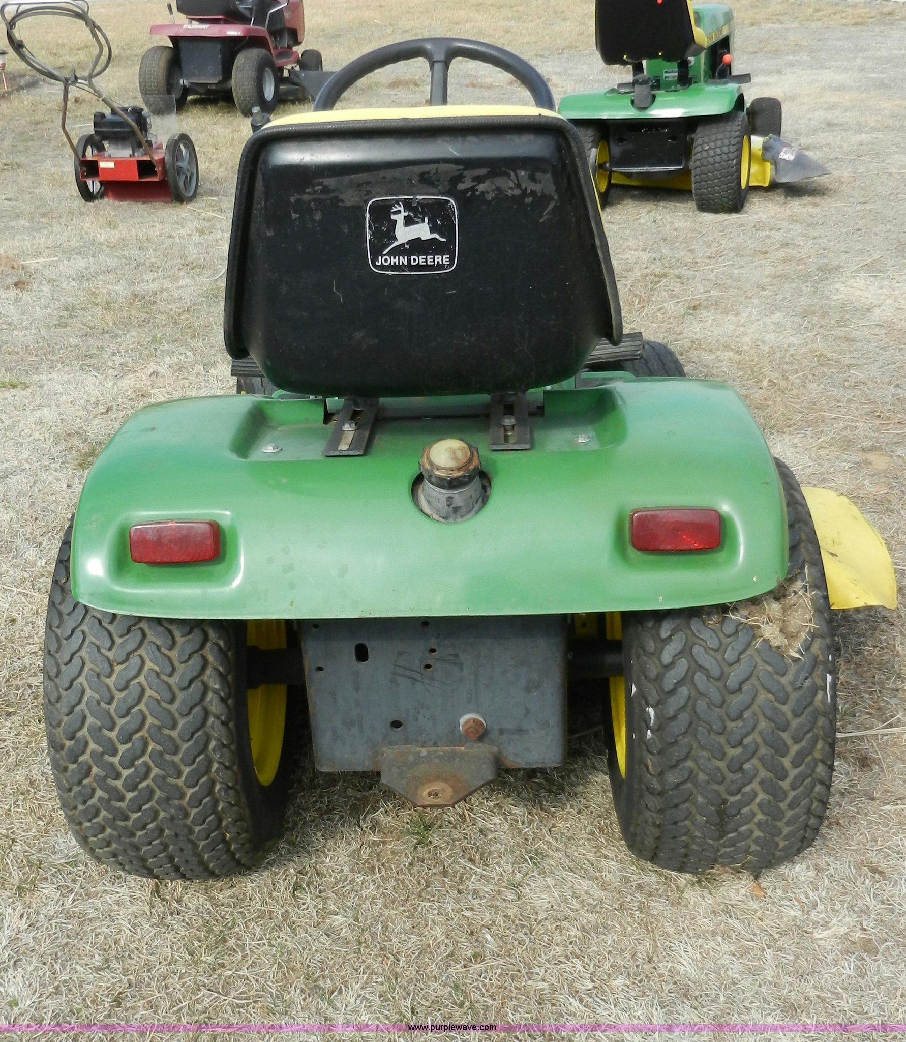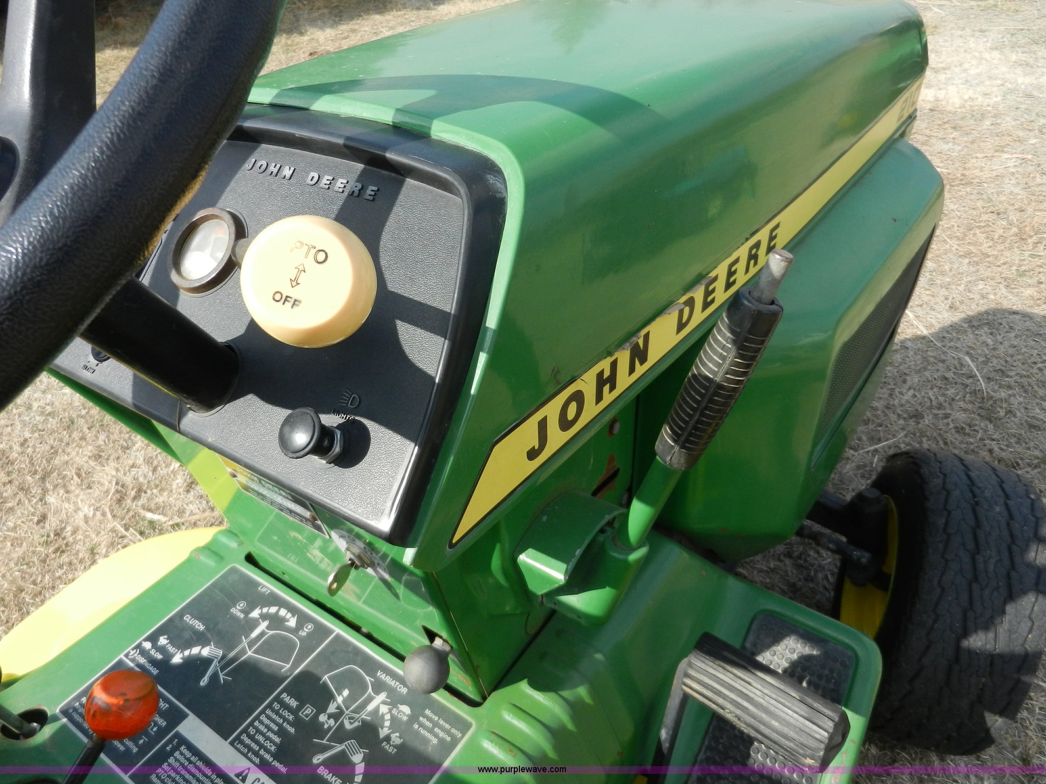 Purple Wave is selling a used Lawn and Garden in Kansas. This item is a John Deere 210 garden tractor with the following: 48" cut, Kohler 10 HP cast iron gas engine, Vari drive four speed transmission, 16.6.50 x 8 front tires, 23-12 x 12 rear tires, Recently replaced battery