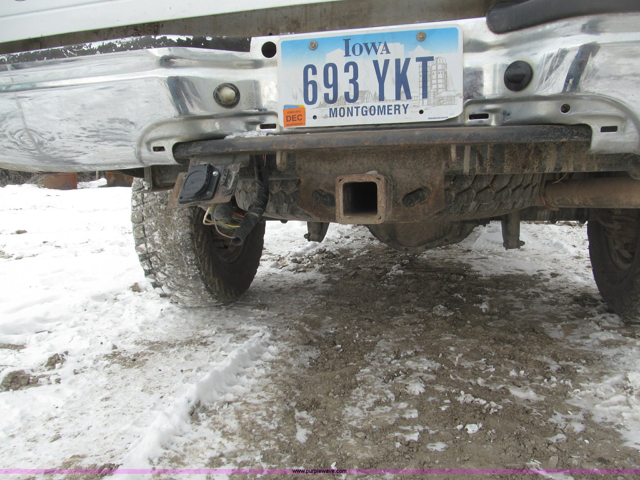 Purple Wave is selling a used Passenger Vehicle in Iowa. This item is a 2003 Ford F350 XL Super Duty pickup truck with the following: 120,543 miles on odometer, Triton 5.4L V8 SOHC 16V gas engine, Automatic transmission, Four wheel drive, AC and heat, Tilt, Cruise, AM/FM, Manual windows and locks, Front tow hooks, Slide-in bed liner, Receiver hitch, 15,000 lbs maximum capacity, Trailer wiring, Round and flat connectors, LT265/75R16 tires, Interior/exterior cosmetic damage, Tail gate end cap is missing, Right mirror cracked, Parking brake pedal is wired up, Gear selector indicator does not move, Driver's door knob is off, Hail damage, Vehicle needs alignment, EIN 2