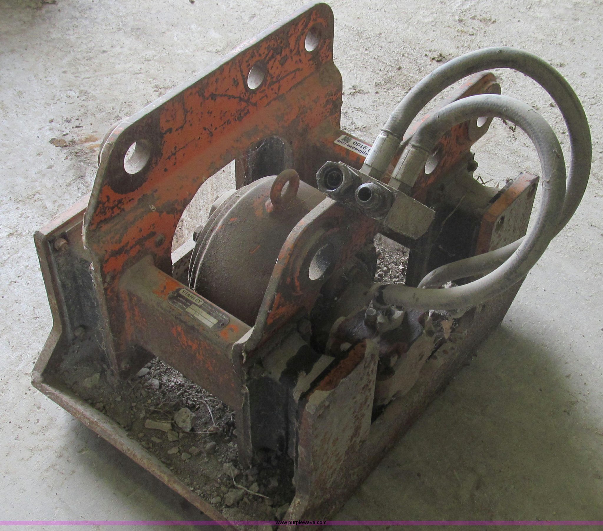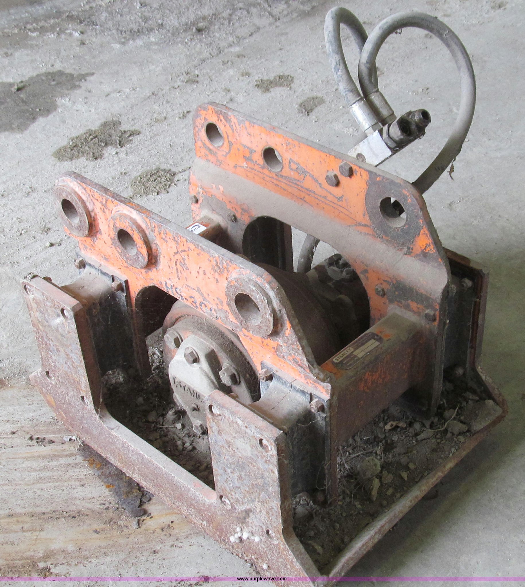 Purple Wave is selling a used Backhoe Attach. in Missouri. This item is a Stanley hydraulic dirt tamper backhoe attachment with the following: Model H53000, 18" x 24" pad, Serial 177